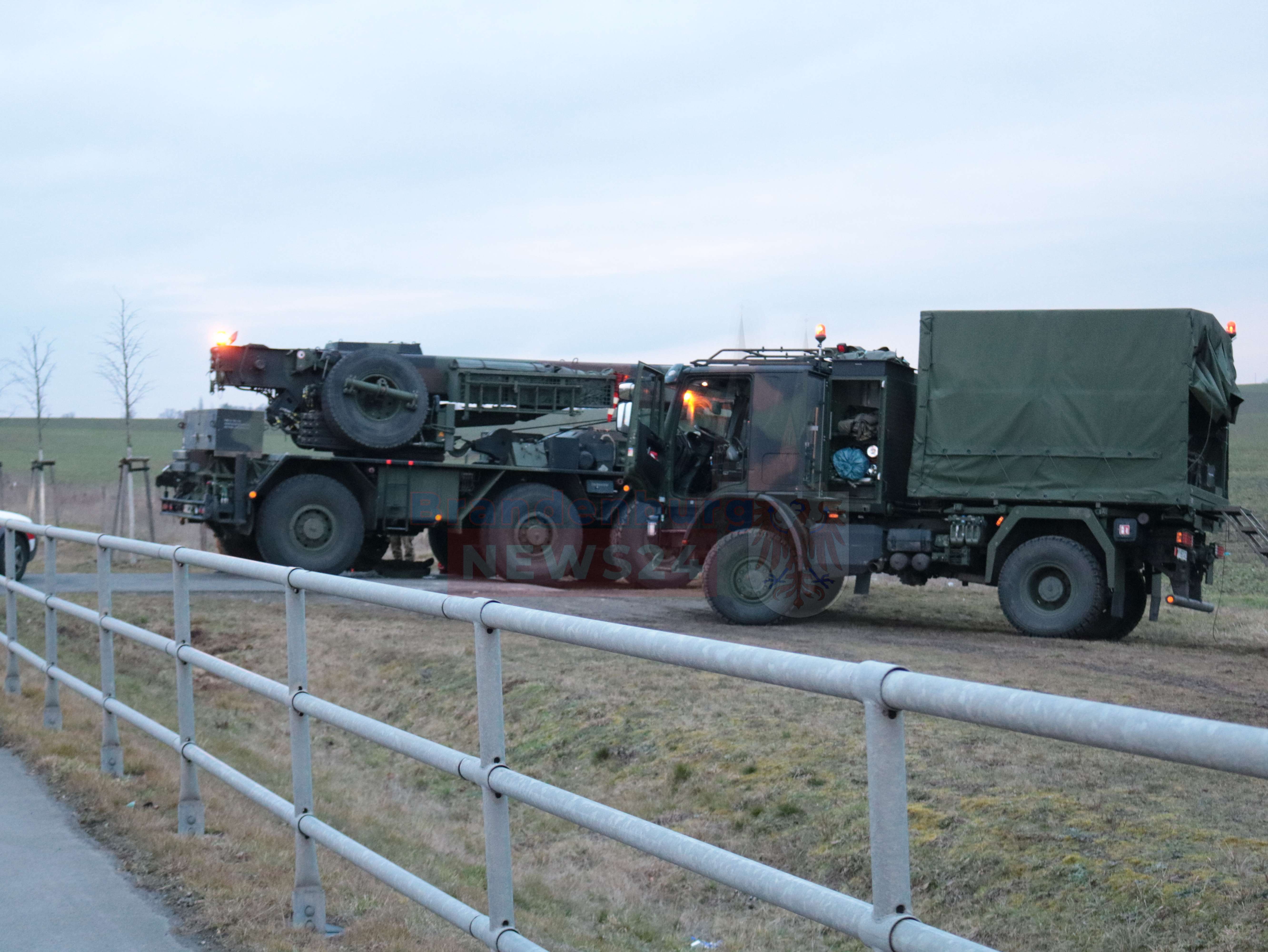 Ölspur auf der A24: Bundeswehrkran verursacht Verkehrsbehinderung bei Neuruppin