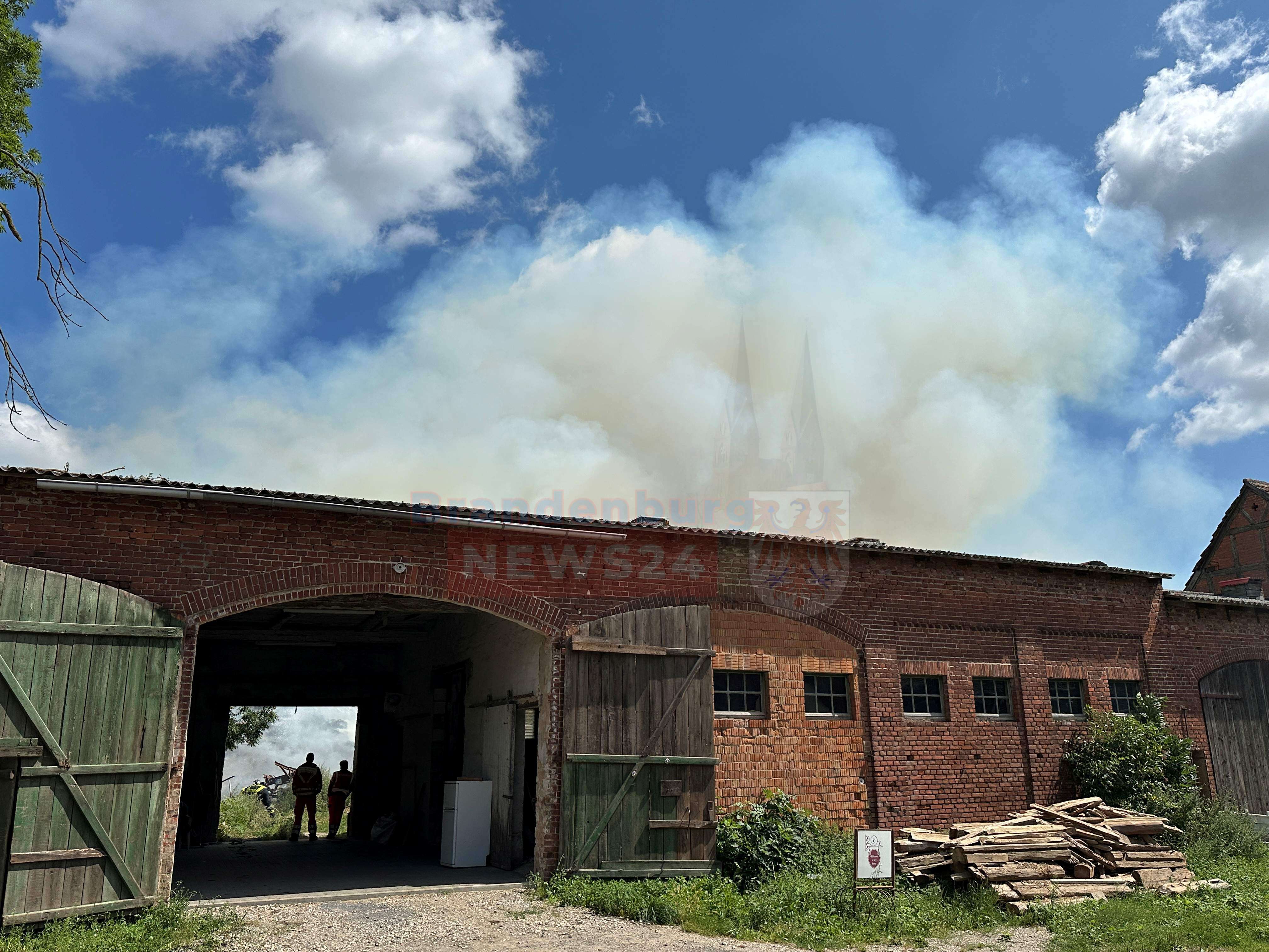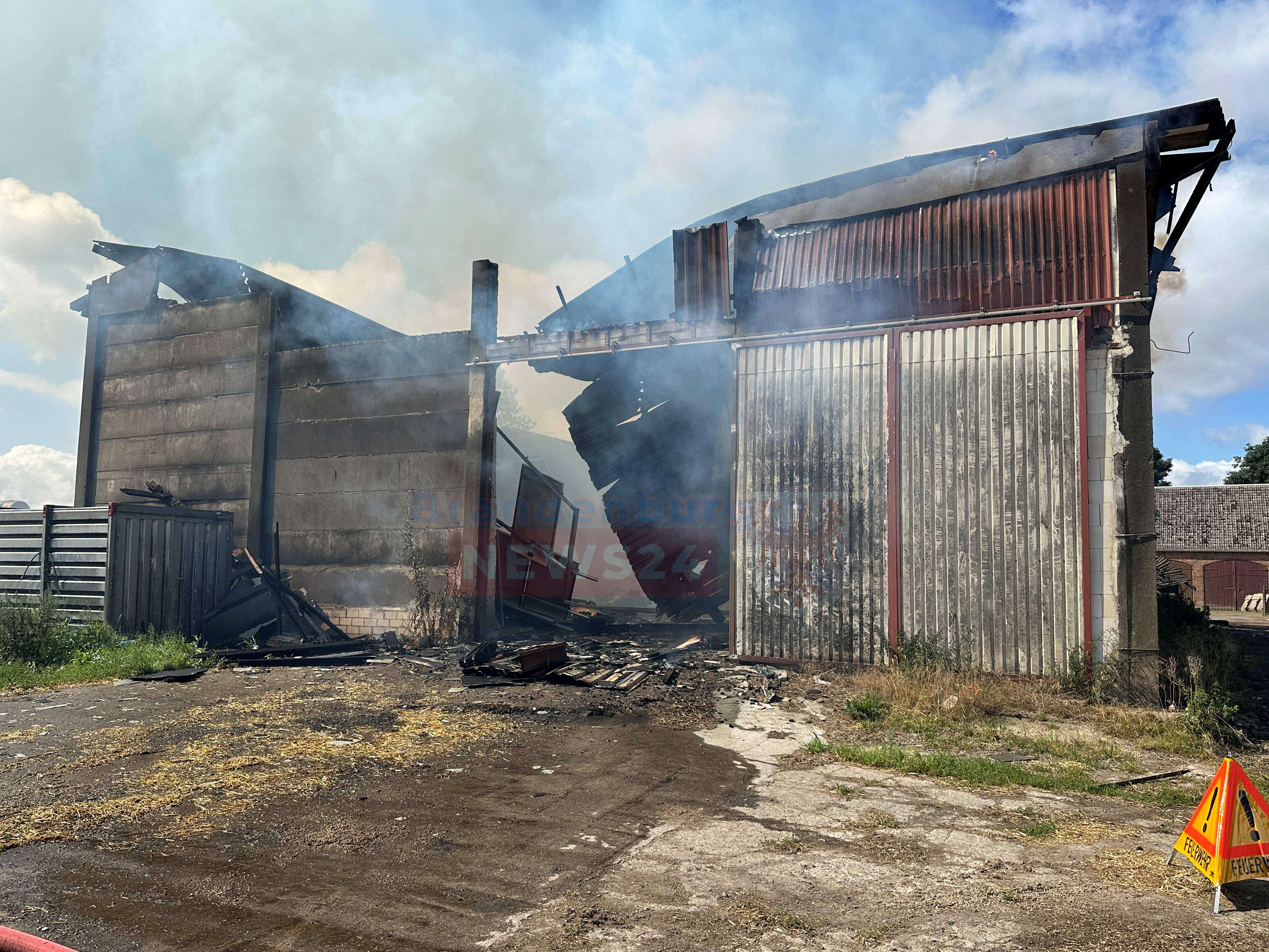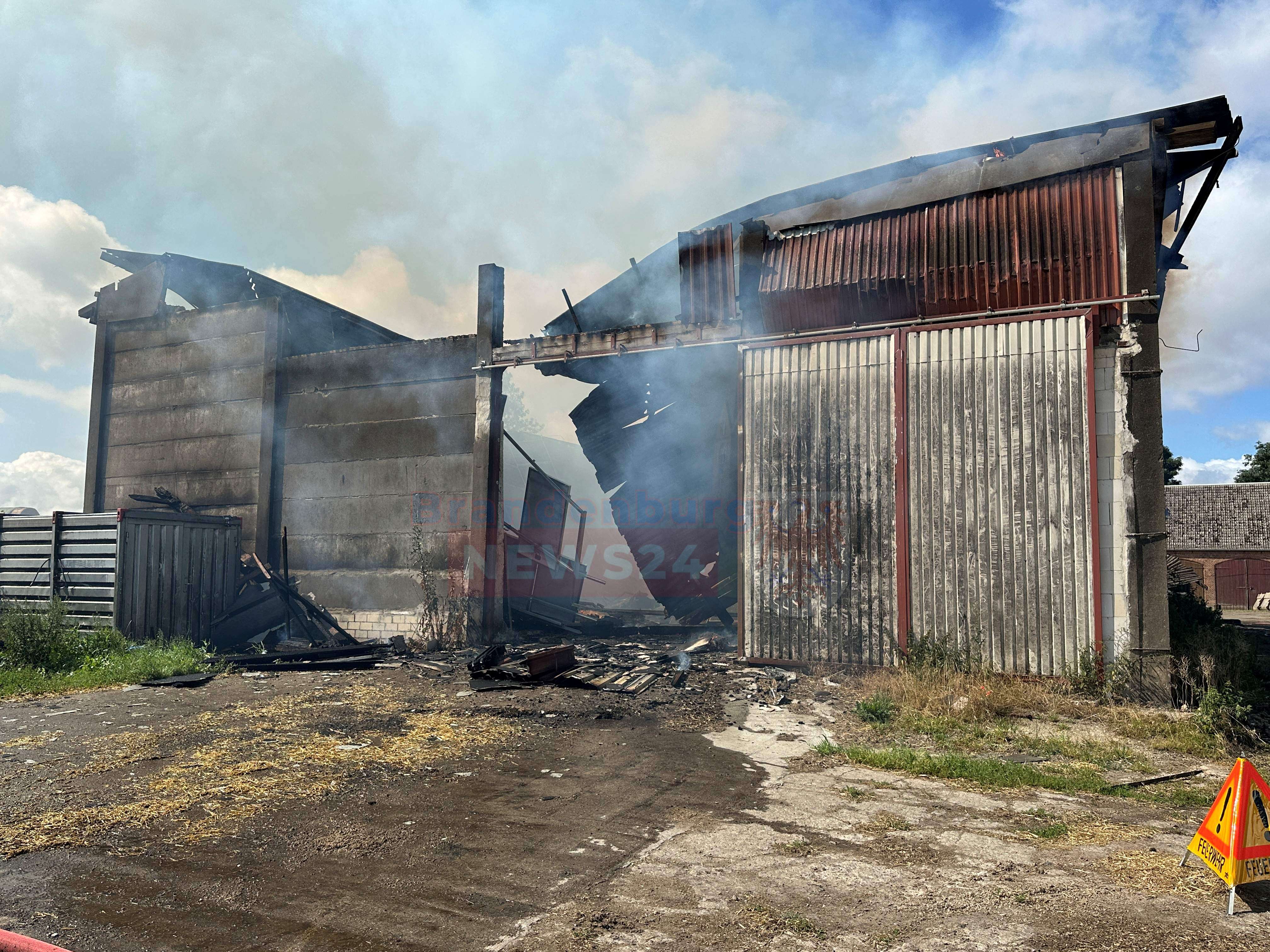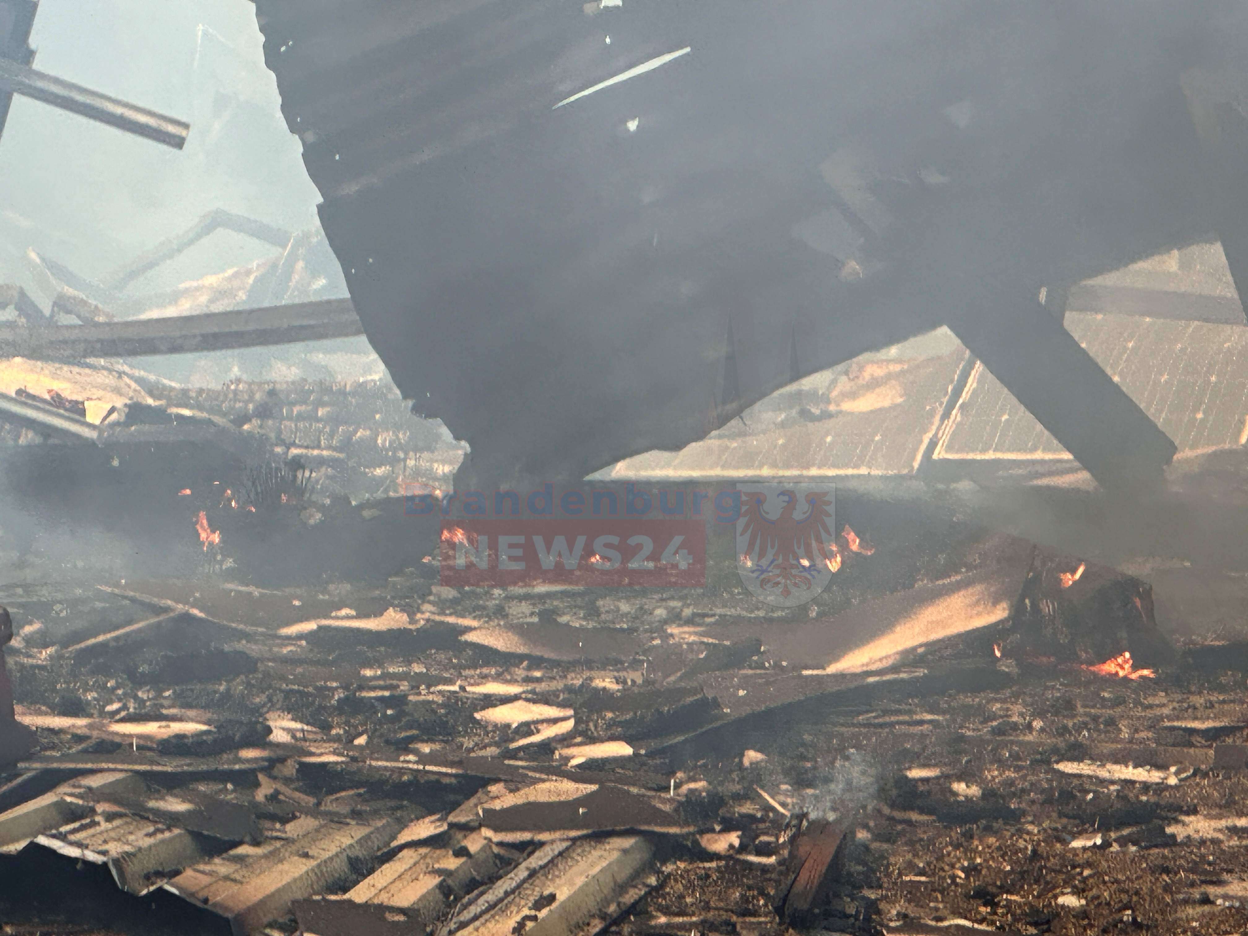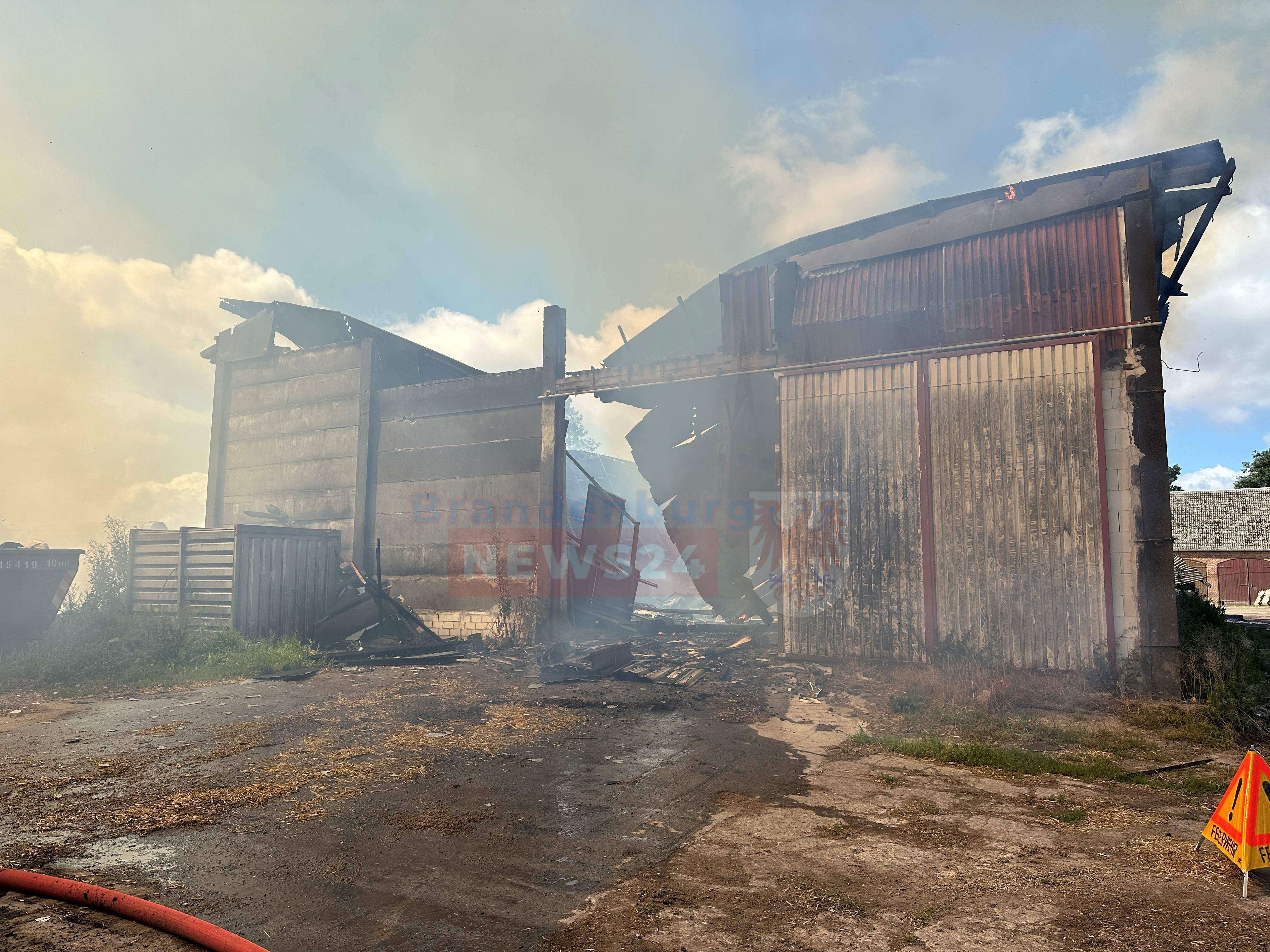 Freyenstein: Ein verheerender Großbrand hat am Mittwochmorgen einen Landwirtschaftsbetrieb in Freyenstein (Ostprignitz-Ruppin) schwer getroffen. Gegen 8:50 Uhr brach in einer rund 1200 Quadratmeter großen Lagerhalle des Betriebs ein Feuer aus, das sich rasend schnell ausbreitete. Das Dach der Halle, auf dem sich eine große Photovoltaikanlage befand, stürzte ein, und die Flammen hüllten das gesamte Gebäude ein.