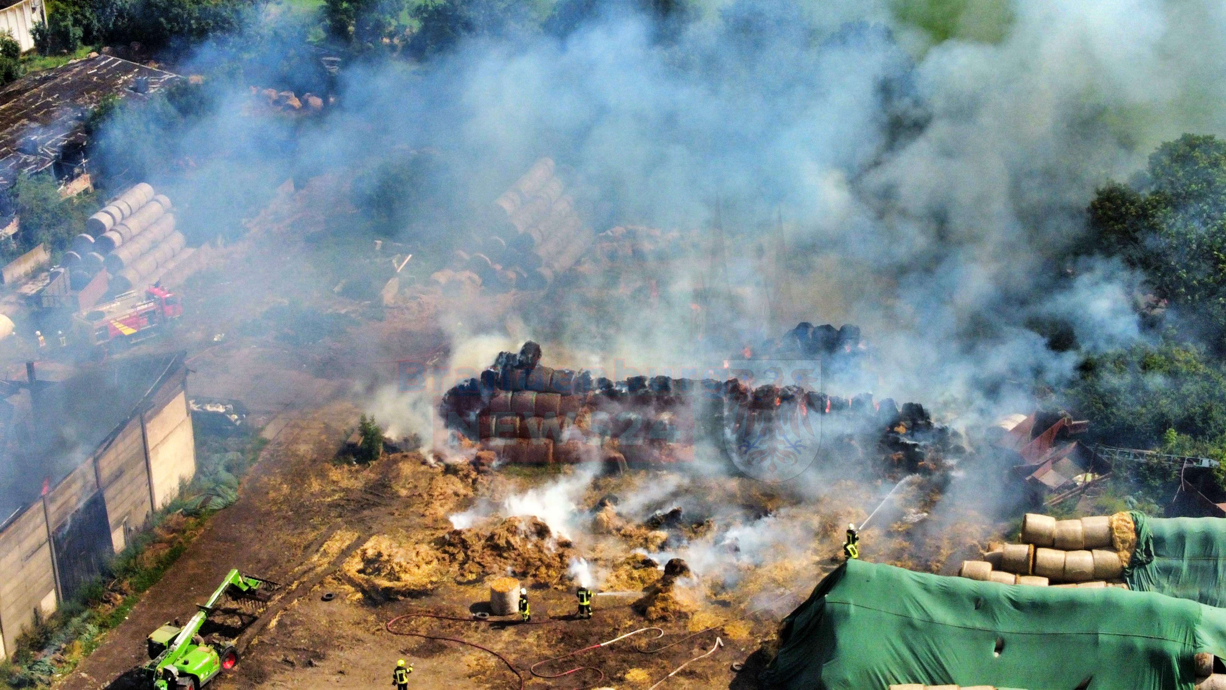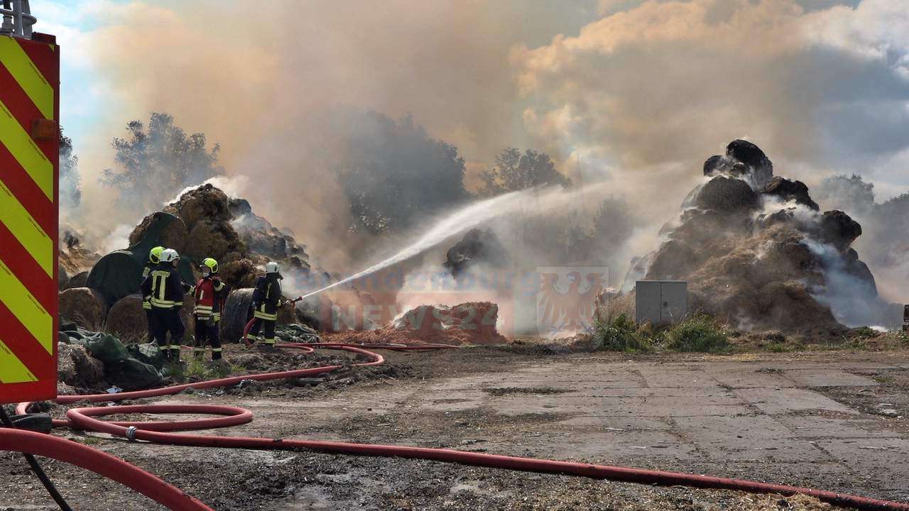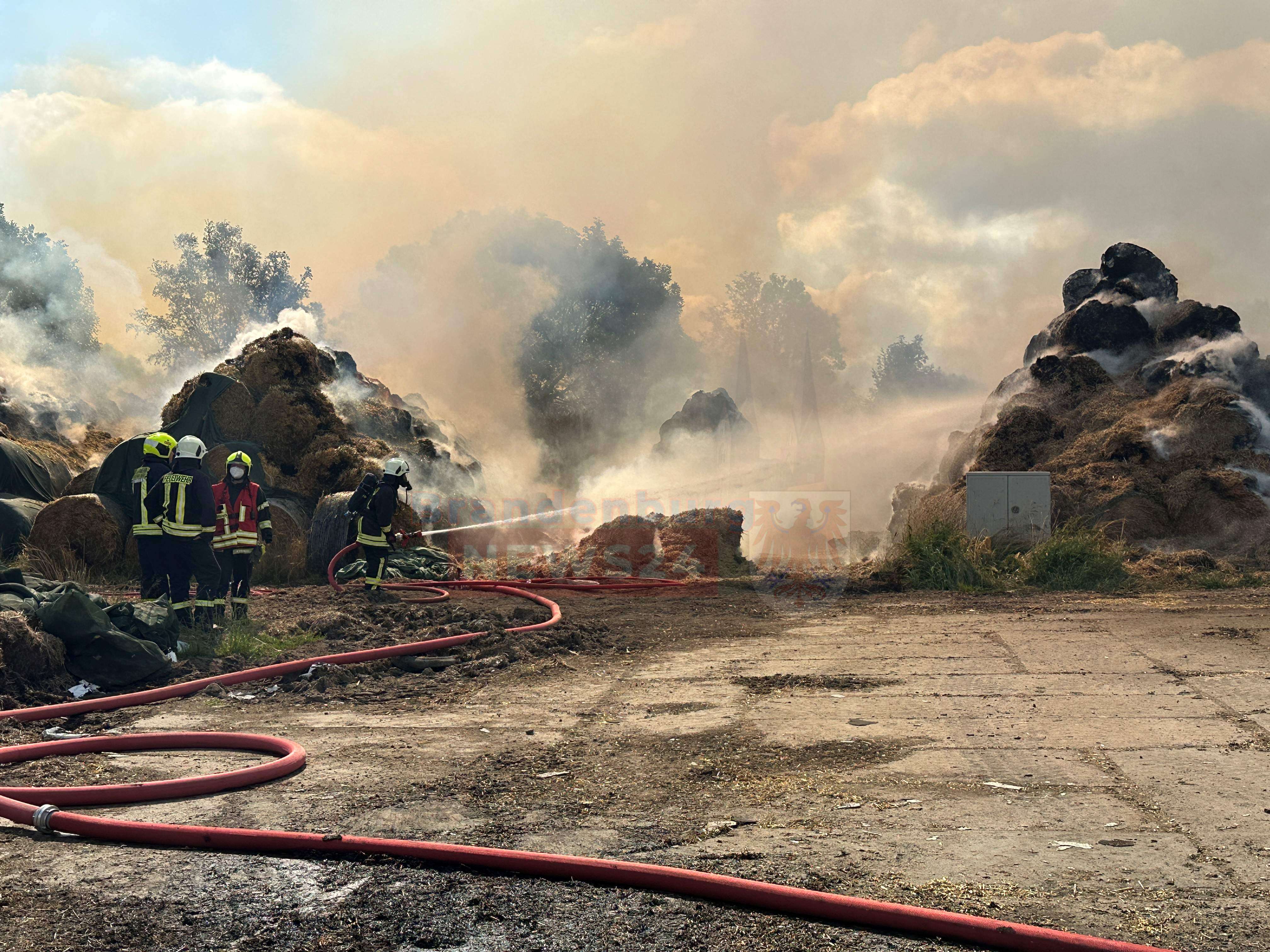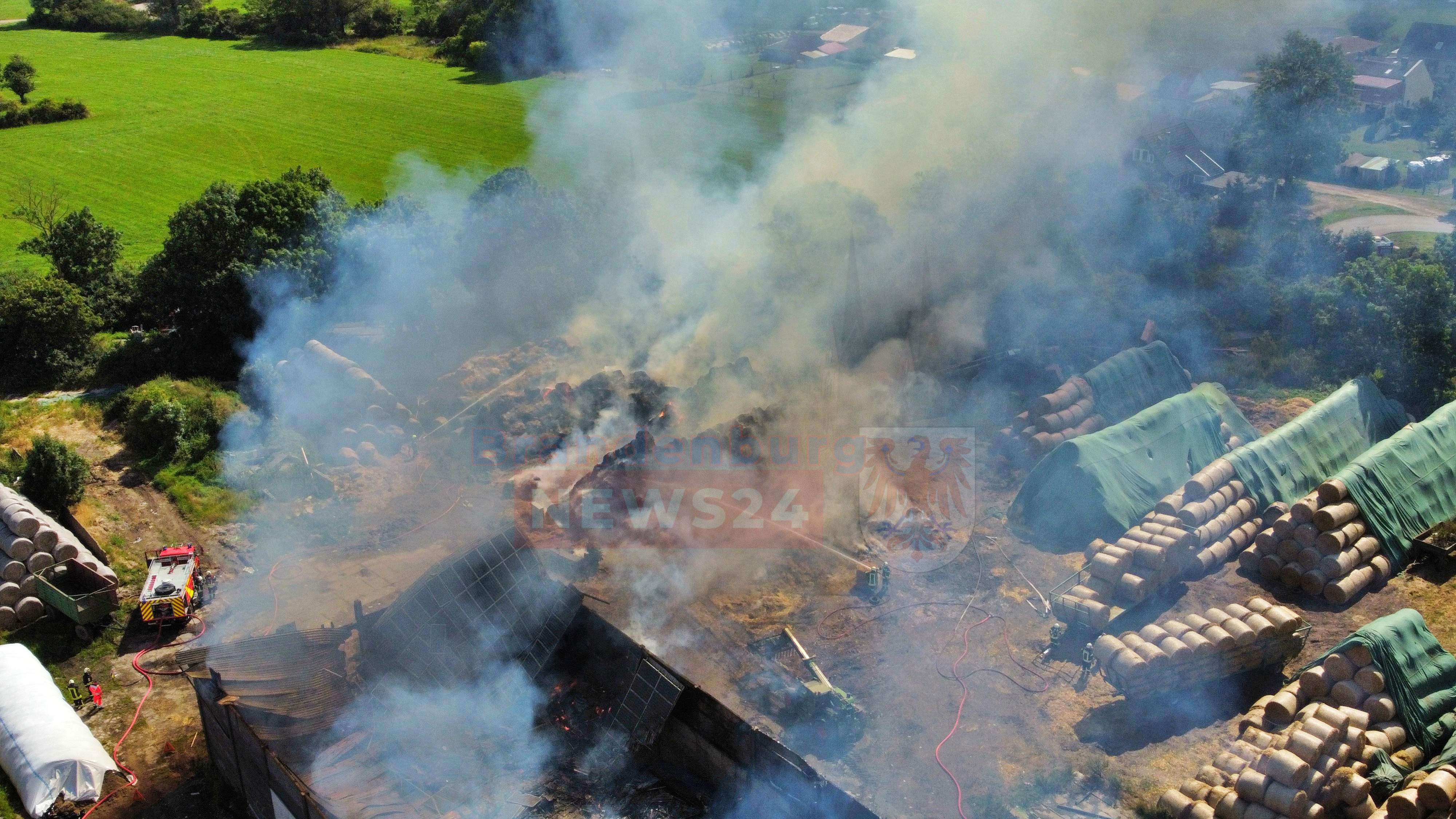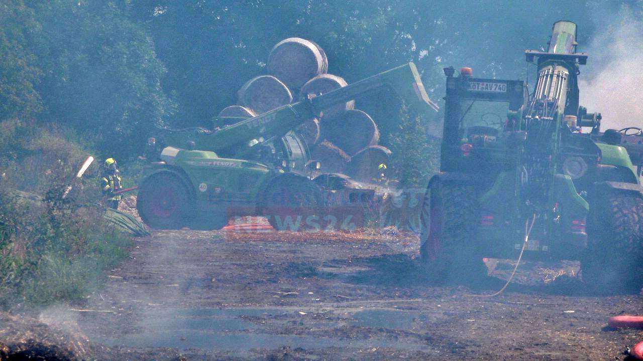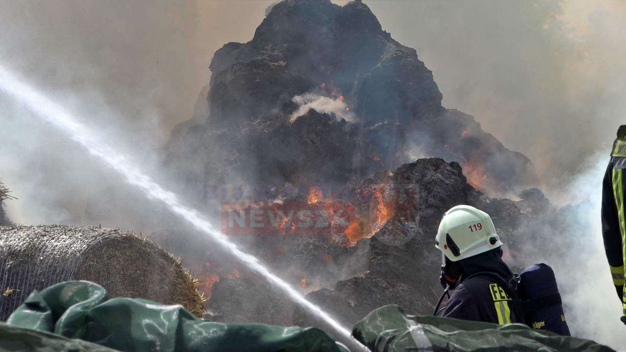 Die Feuerwehr rückte mit einem Großaufgebot an, doch die Löscharbeiten gestalteten sich äußerst schwierig. Das eingestürzte Dach erschwerte den Zugang zu den Brandherden erheblich, und die Flammen griffen im Laufe des Nachmittags auf in der Umgebung gestapelte Strohmieten über. Mehr als 60 Einsatzkräfte kämpften unermüdlich gegen das Feuer, unterstützt von Landwirten mit Teleskopladern, die die brennenden Strohballen auseinanderzogen, um Glutnester zu bekämpfen.