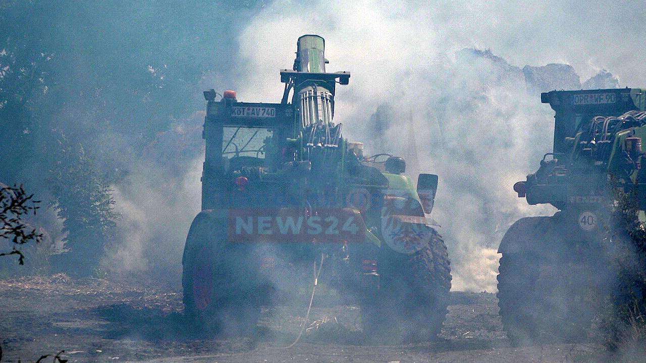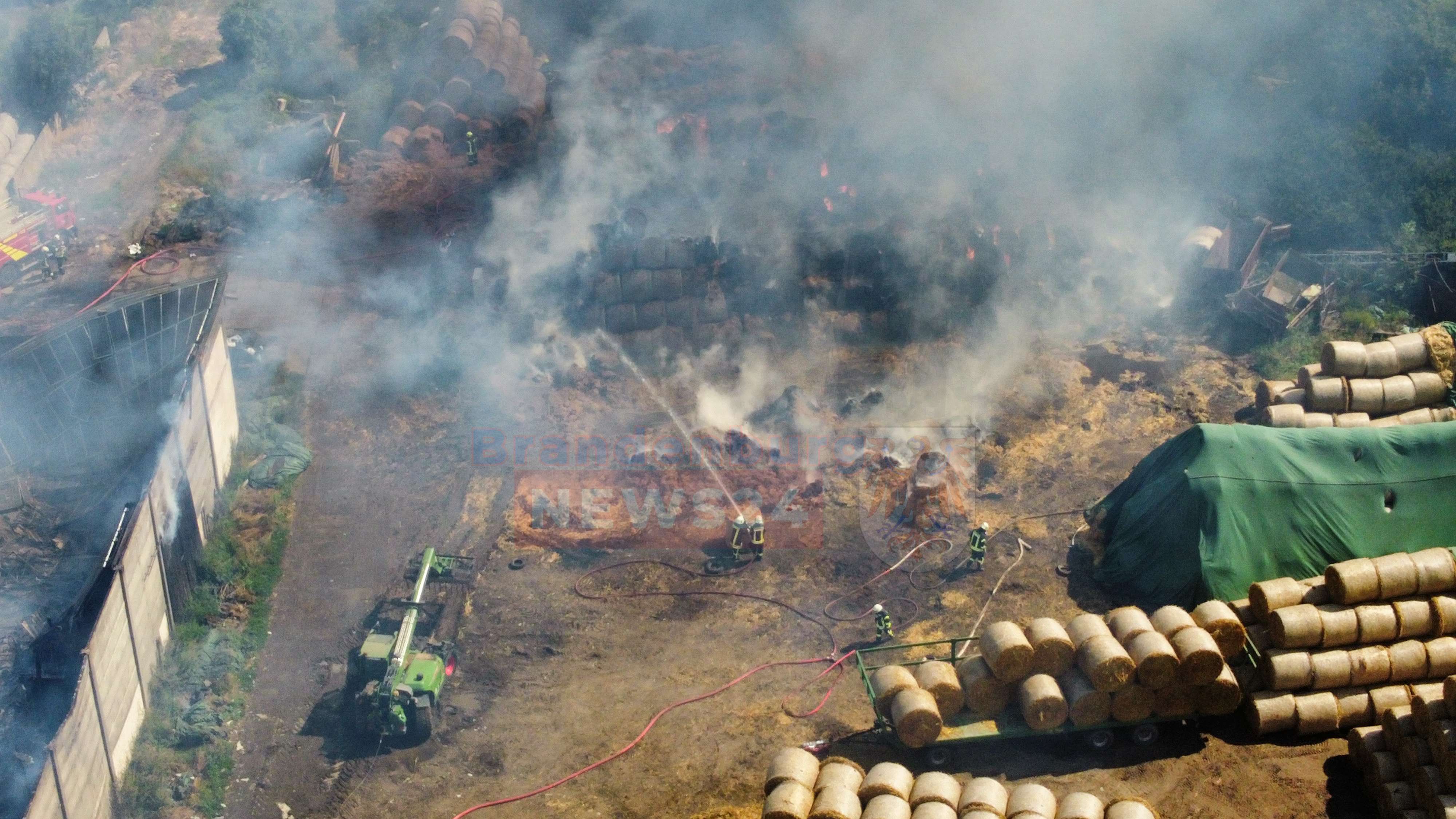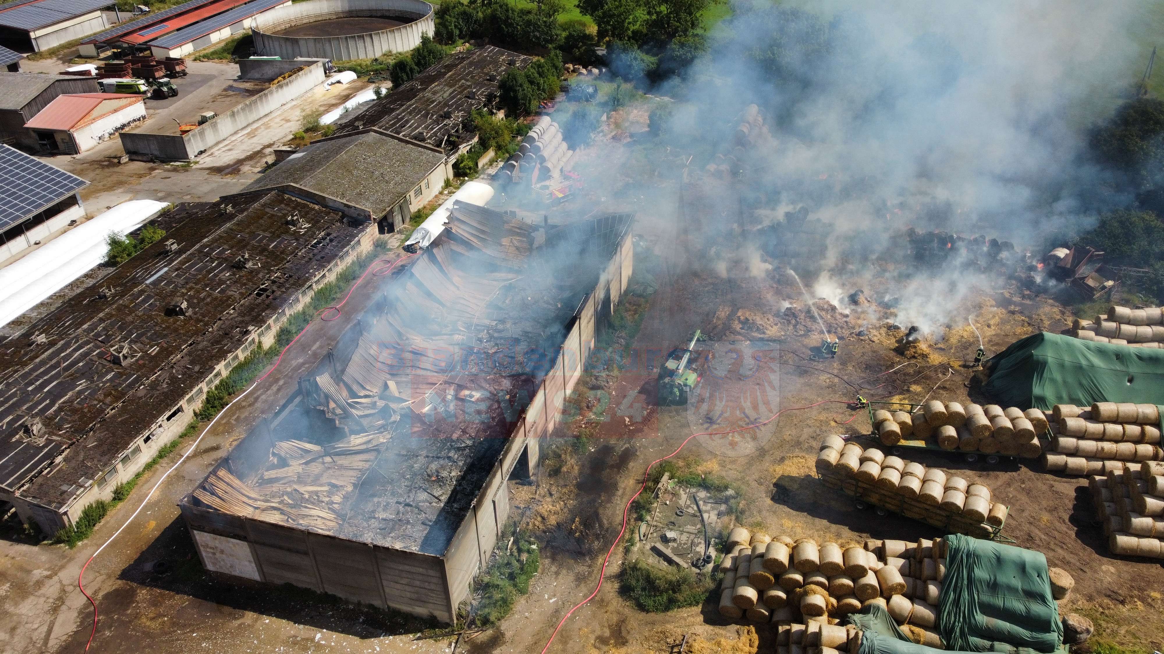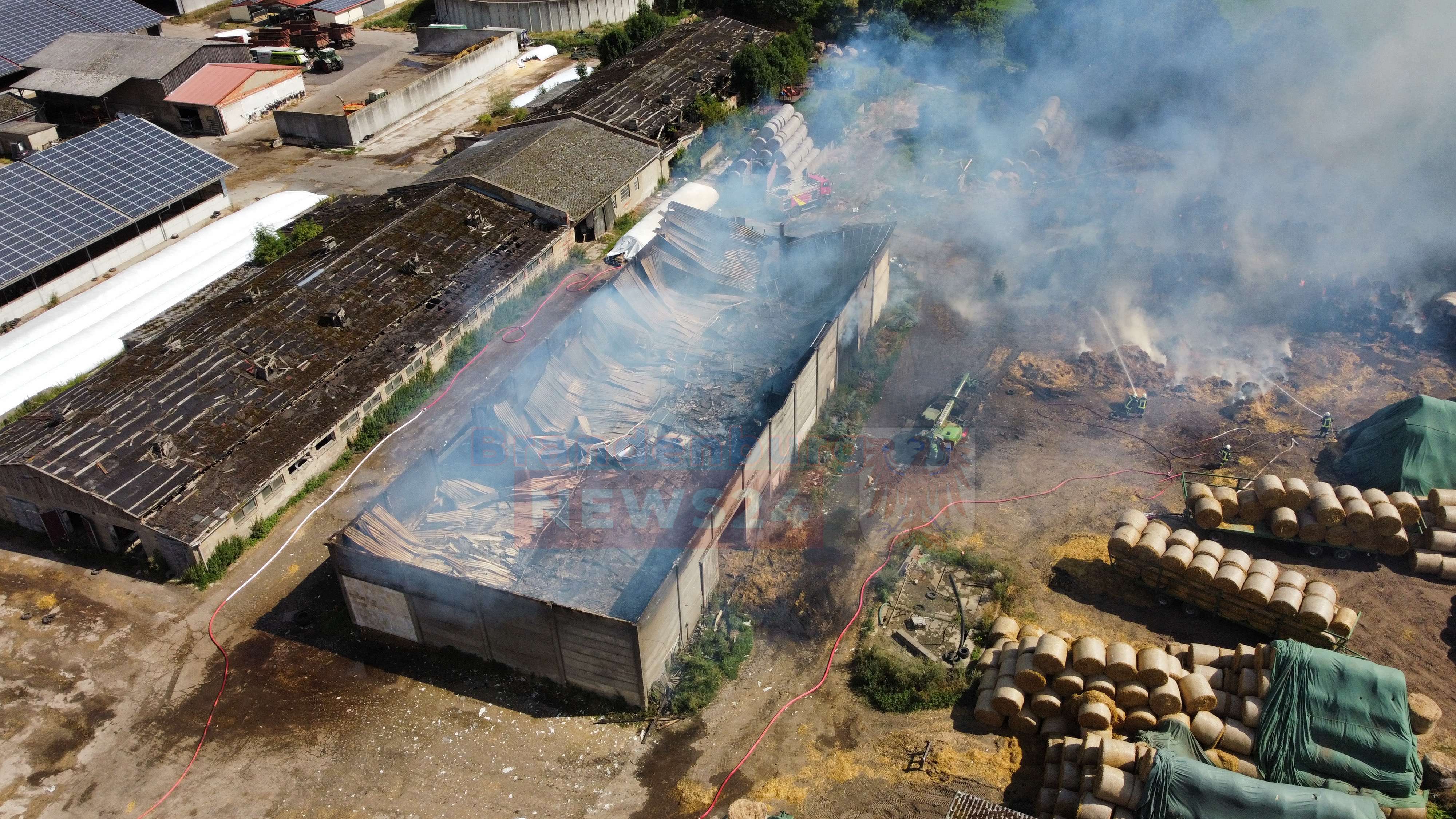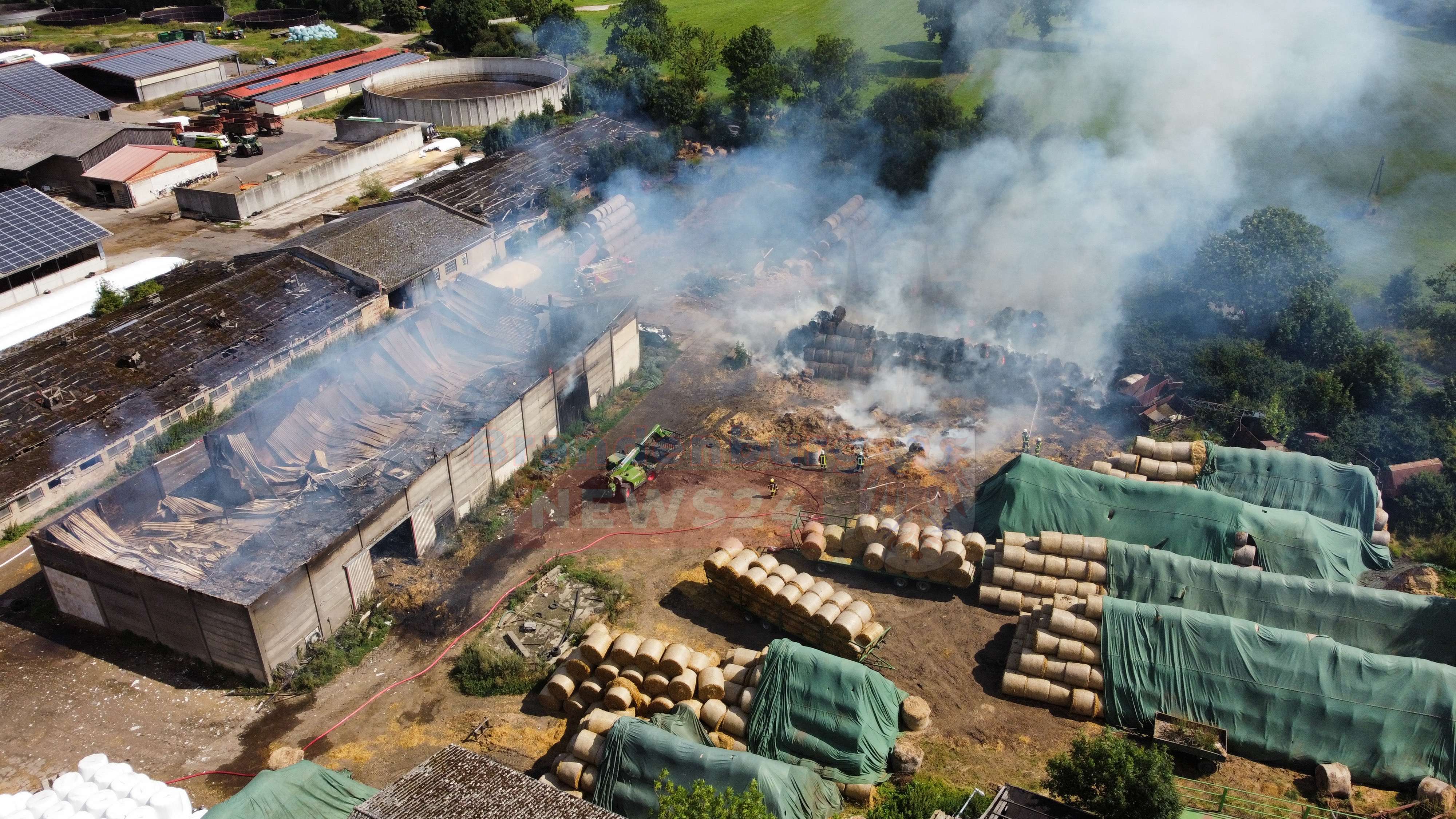 Die Feuerwehr rückte mit einem Großaufgebot an, doch die Löscharbeiten gestalteten sich äußerst schwierig. Das eingestürzte Dach erschwerte den Zugang zu den Brandherden erheblich, und die Flammen griffen im Laufe des Nachmittags auf in der Umgebung gestapelte Strohmieten über. Mehr als 60 Einsatzkräfte kämpften unermüdlich gegen das Feuer, unterstützt von Landwirten mit Teleskopladern, die die brennenden Strohballen auseinanderzogen, um Glutnester zu bekämpfen.