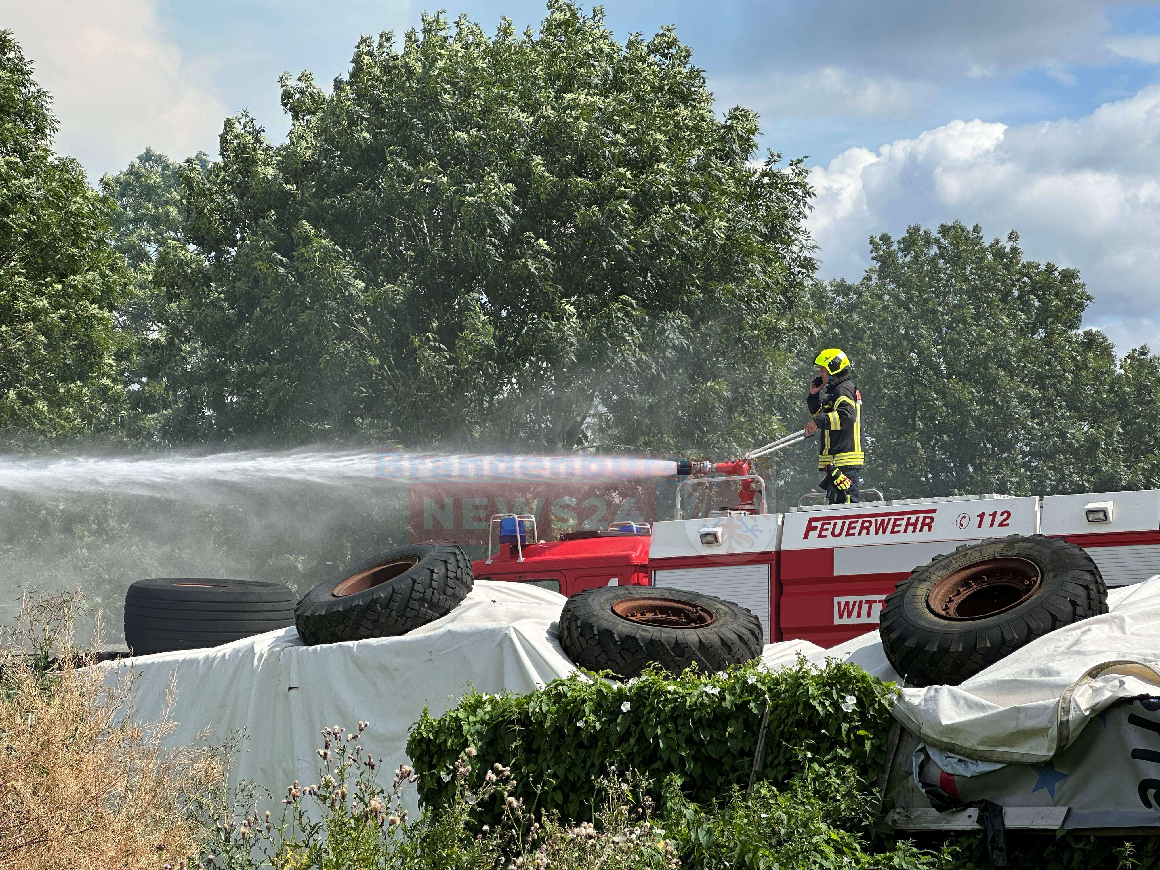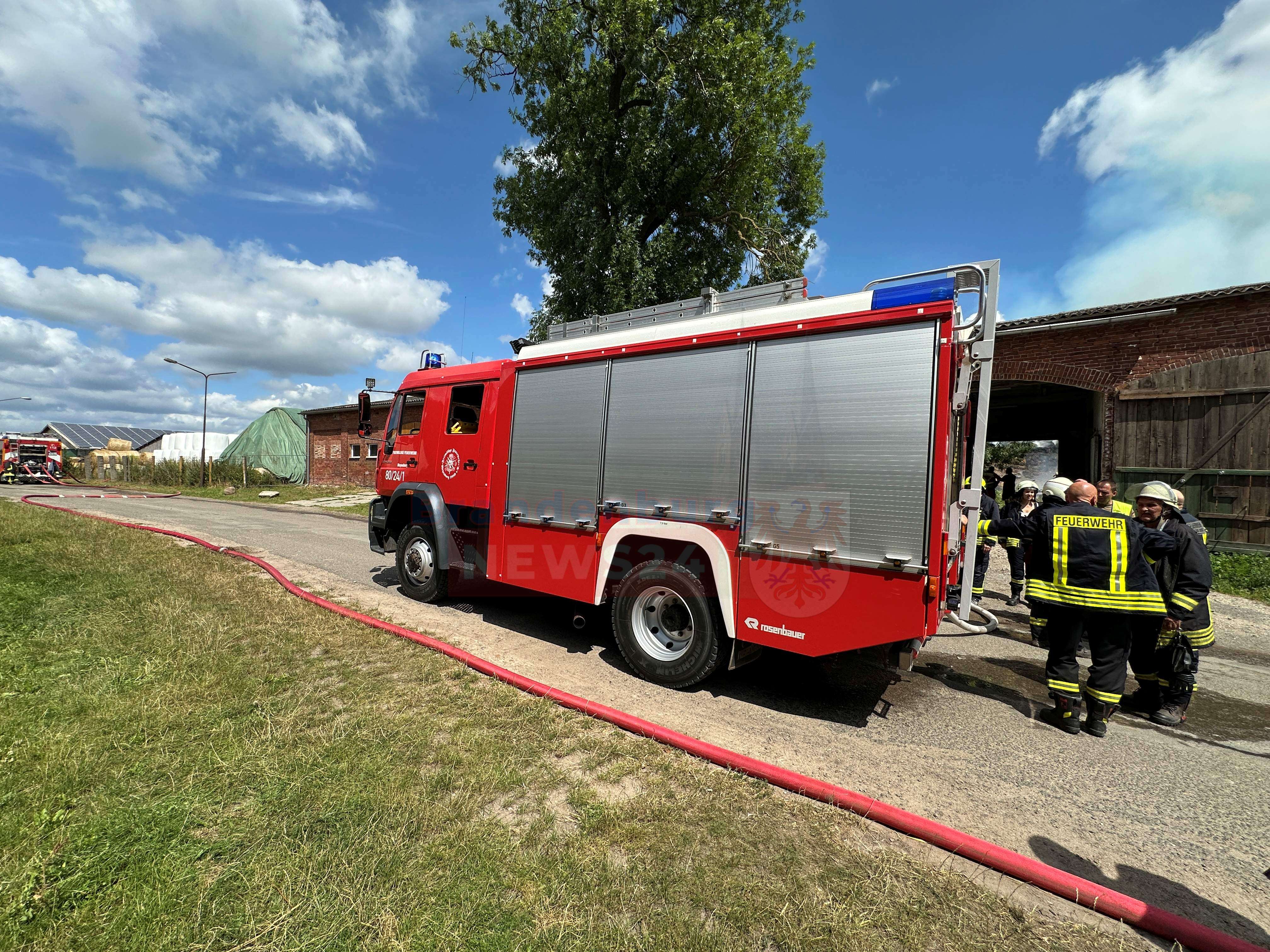 Die starke Rauchentwicklung führte zur Sperrung der Landesstraße L171 zwischen Freyenstein und Jaebetz in Mecklenburg-Vorpommern. Anwohner wurden über die Notfall-Informations- und Nachrichten-App "Nina" gewarnt und aufgefordert, Fenster und Türen geschlossen zu halten.
