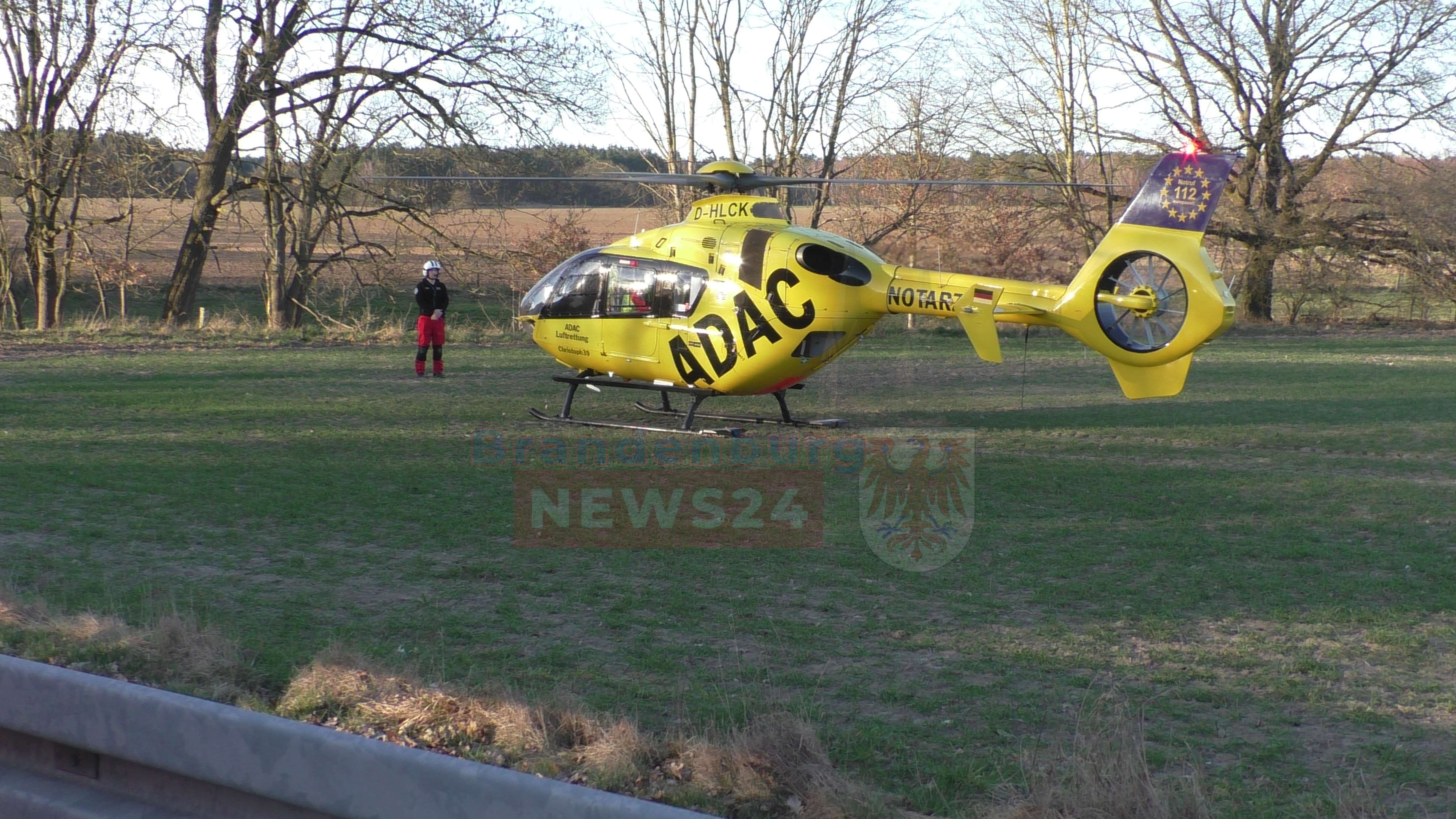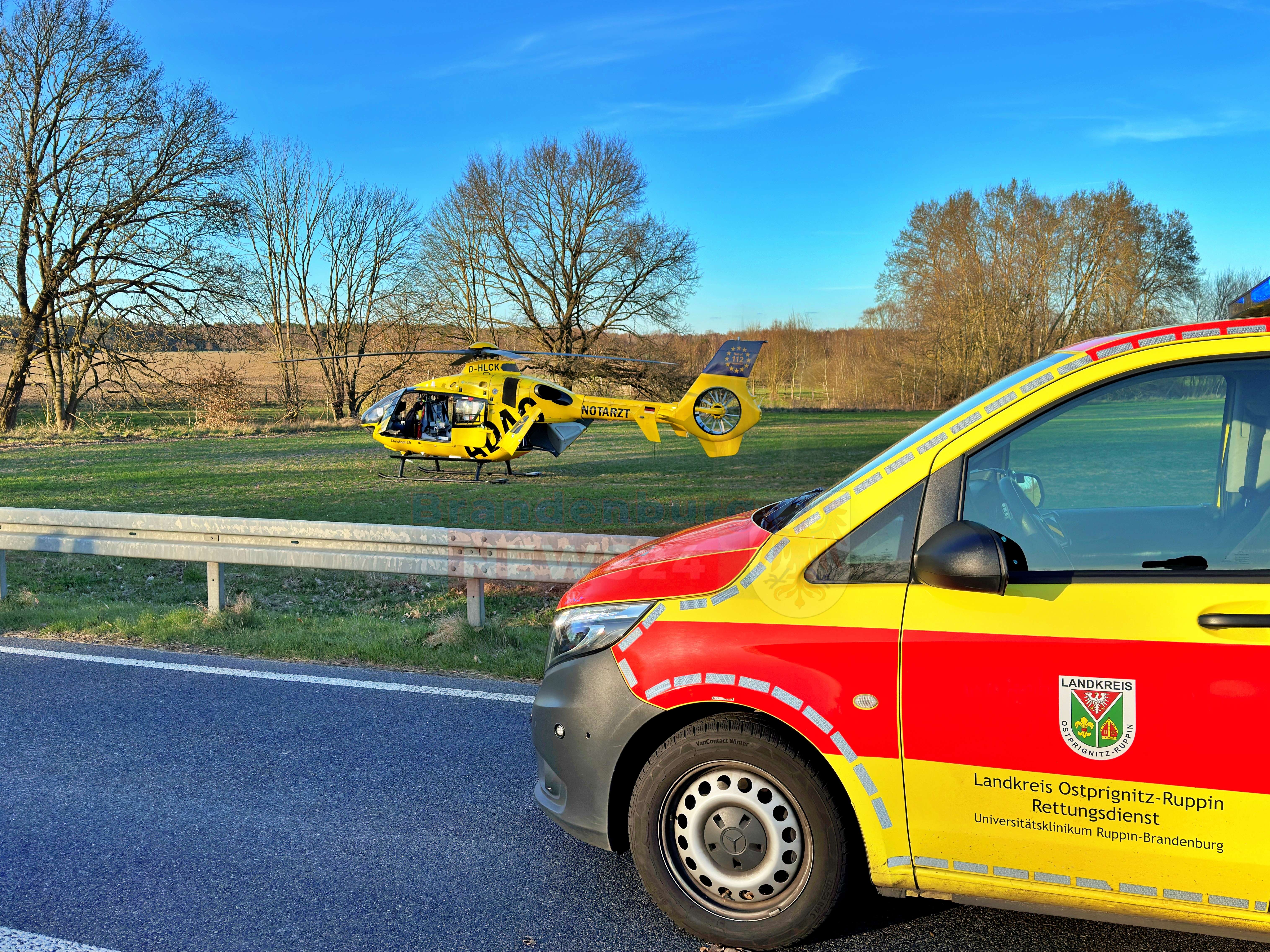Die 64-Jährige wurde mit einem Rettungshubschrauber in ein Krankenhaus nach Berlin-Marzahn geflogen. Der 91-Jährige und die 22-jährige VW-Fahrerin wurden mit ihren 15-jährigen Mitfahrerinnen in das Krankenhaus nach Neuruppin gebracht.