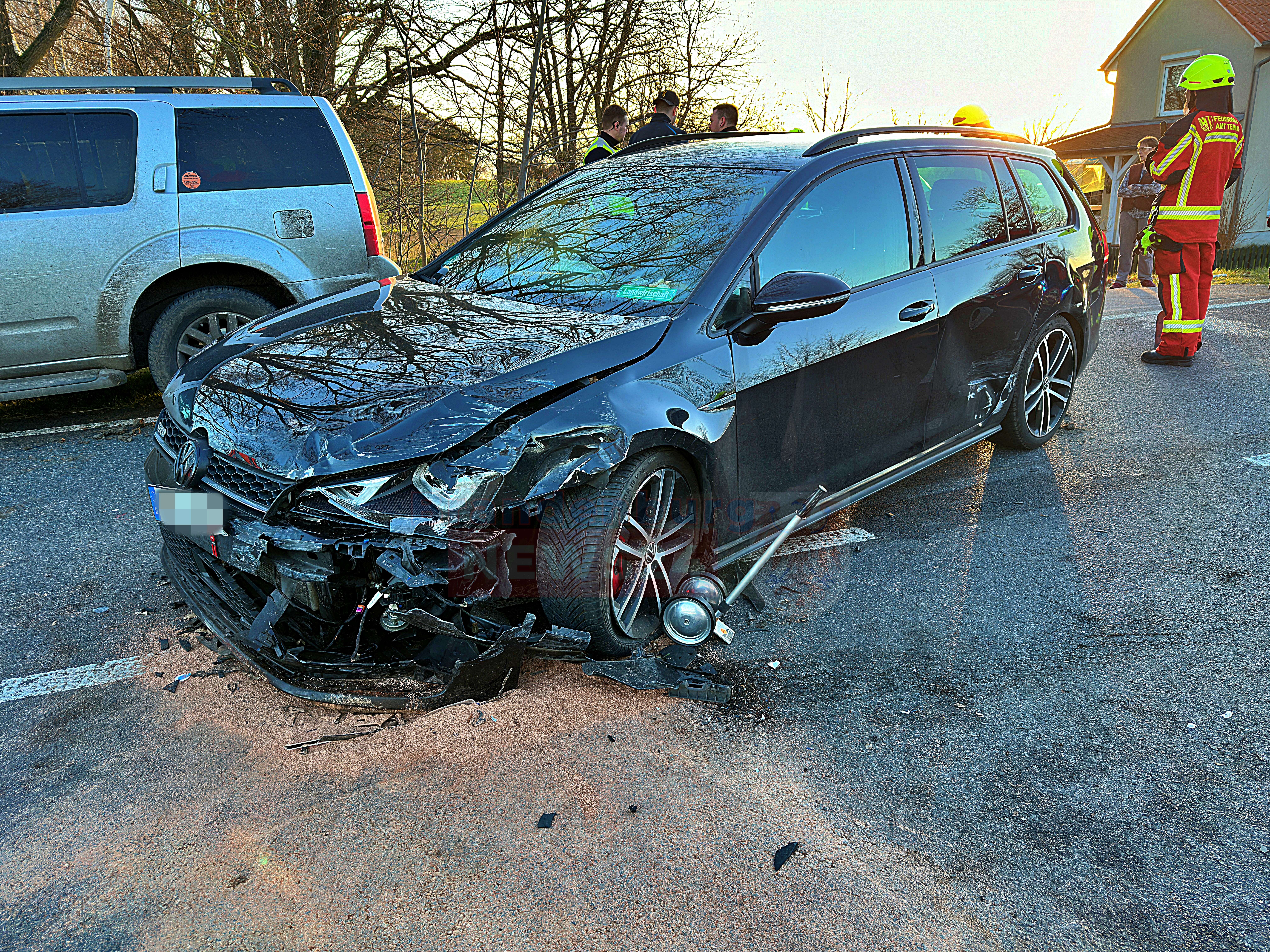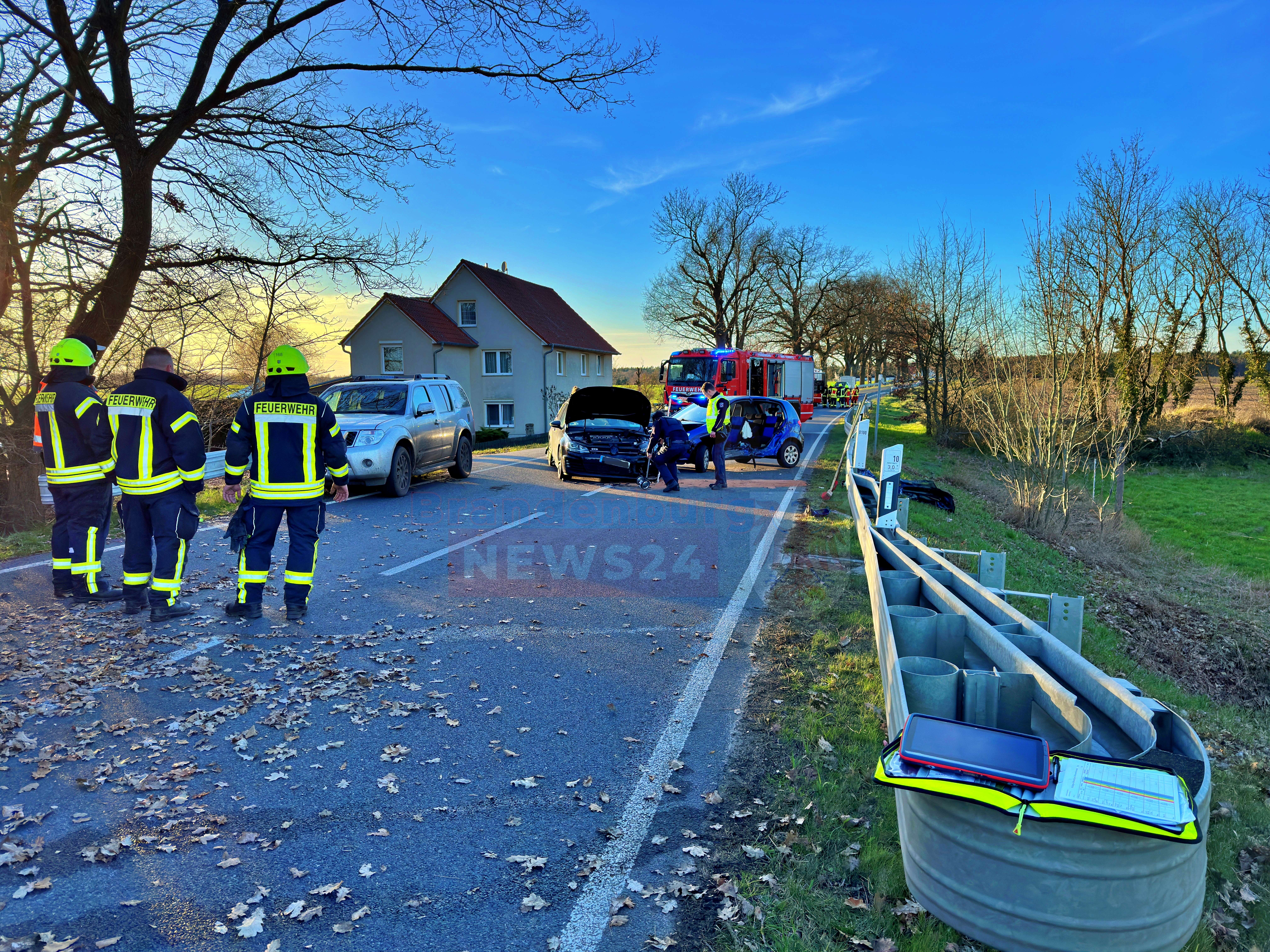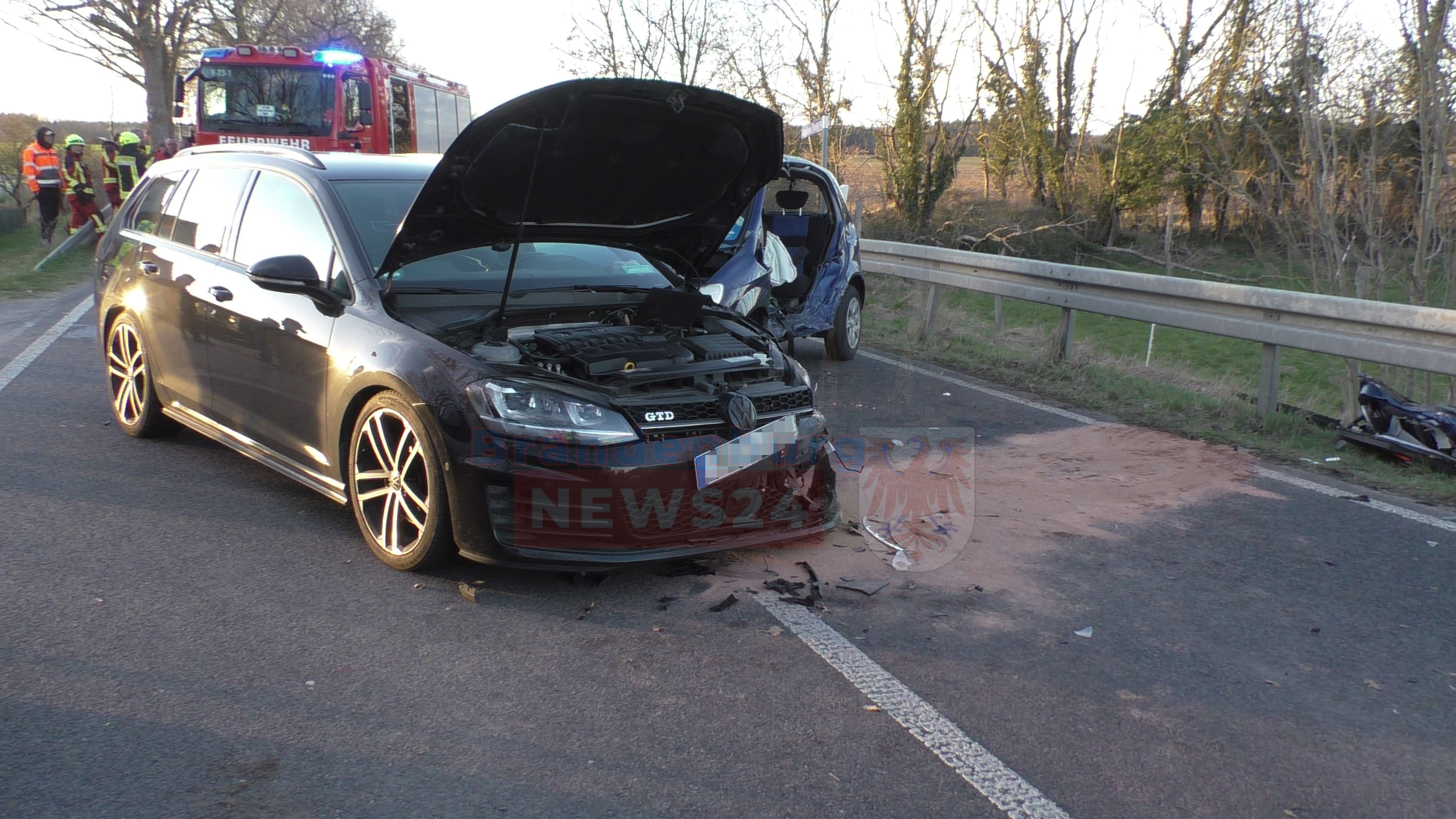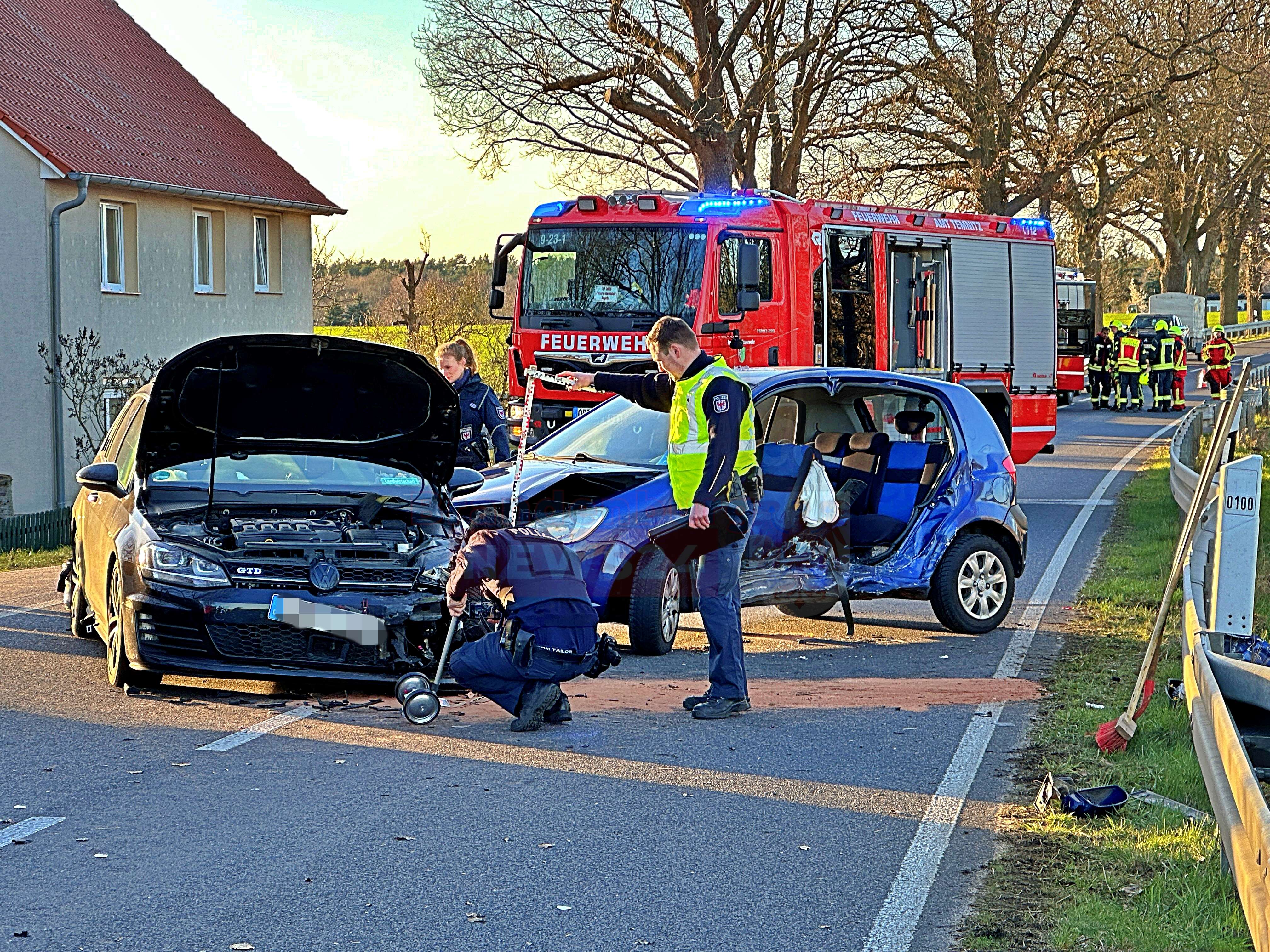 Storbeck-Frankendorf (Ostprignitz-Ruppin). Am Sonntagnachmittag ereignete sich auf der Landesstraße 18 bei Storbeck-Frankendorf (Amt Temnitz) ein schwerer Unfall mit fünf Verletzten. Eine 64-jährige Fahrerin eines Hyundai fuhr von einem Grundstück auf die L18, um nach links abzubiegen. Dabei übersah sie den fließenden Verkehr und stieß mit einem VW zusammen, der mit 70 km/h auf der L18 unterwegs war.