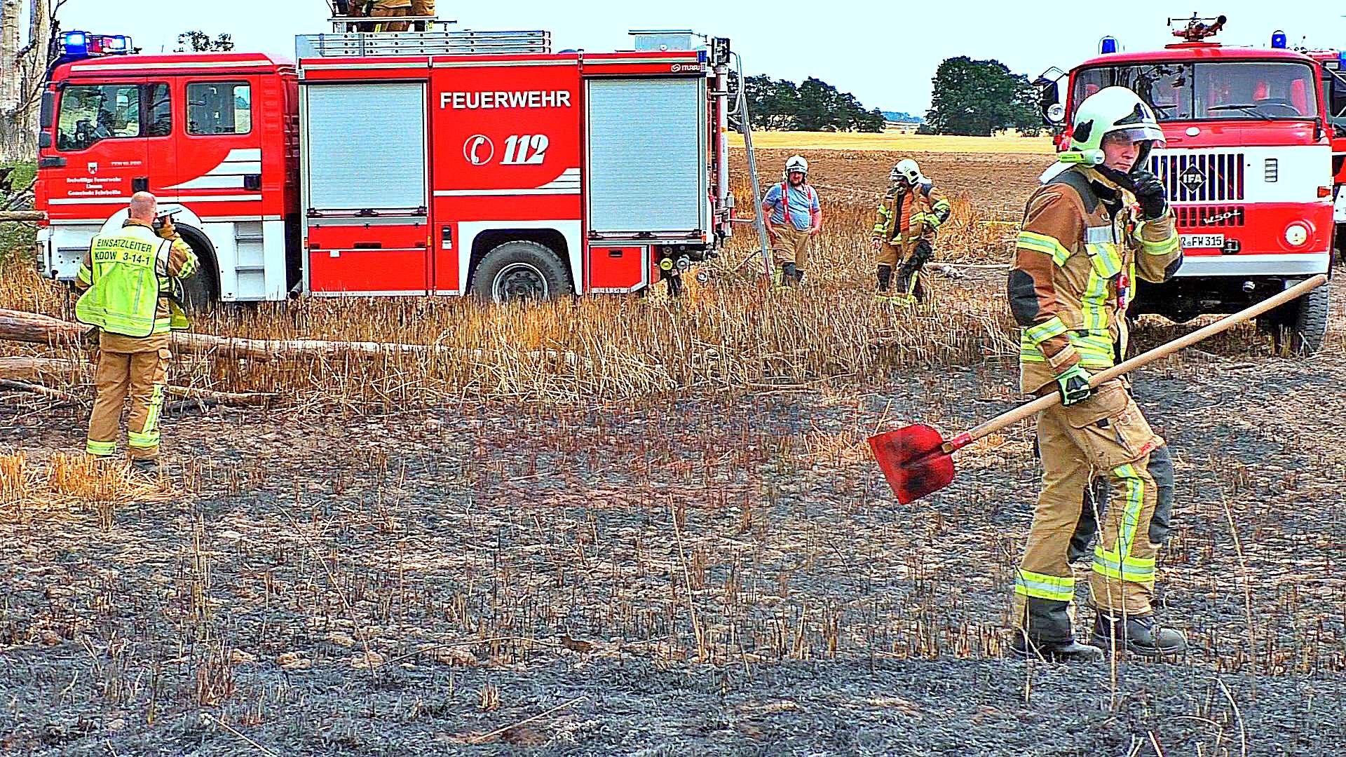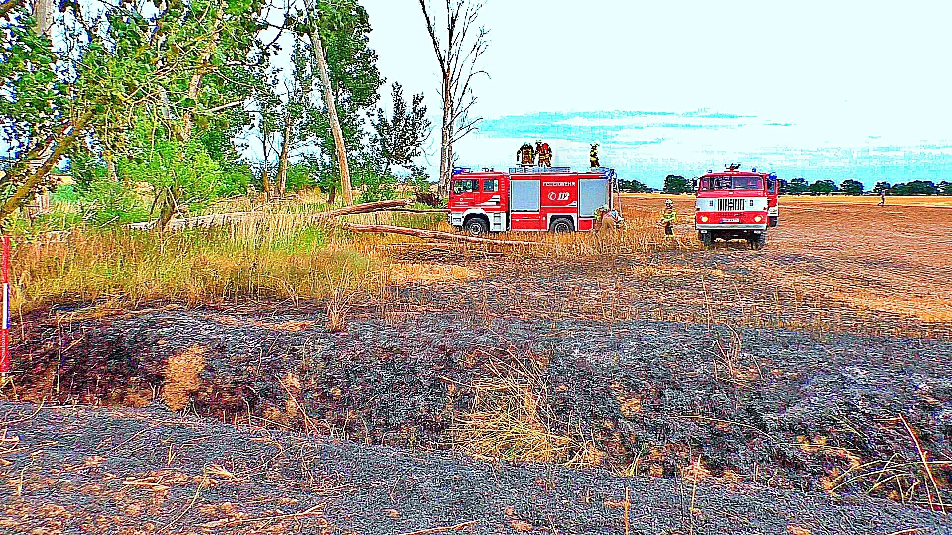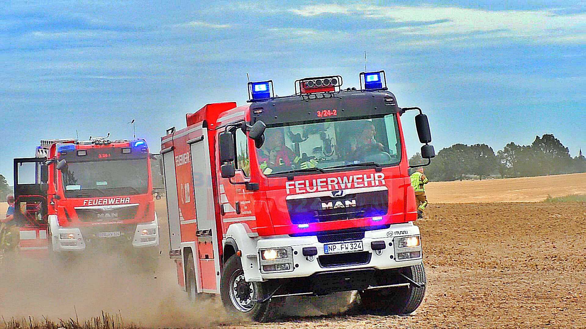 Walchow/Protzen - Die anhaltende Wärme und extreme Trockenheit der Böden in Ostprignitz-Ruppin haben am Samstagmittag zu zwei schweren Flächenbränden geführt, die insgesamt sechs Hektar Getreidefelder vernichteten. Feuerwehren aus der Gemeinde Fehrbellin und der Neuruppiner Feuerwache Südost waren stundenlang im Einsatz, um die Flammen zu bekämpfen.