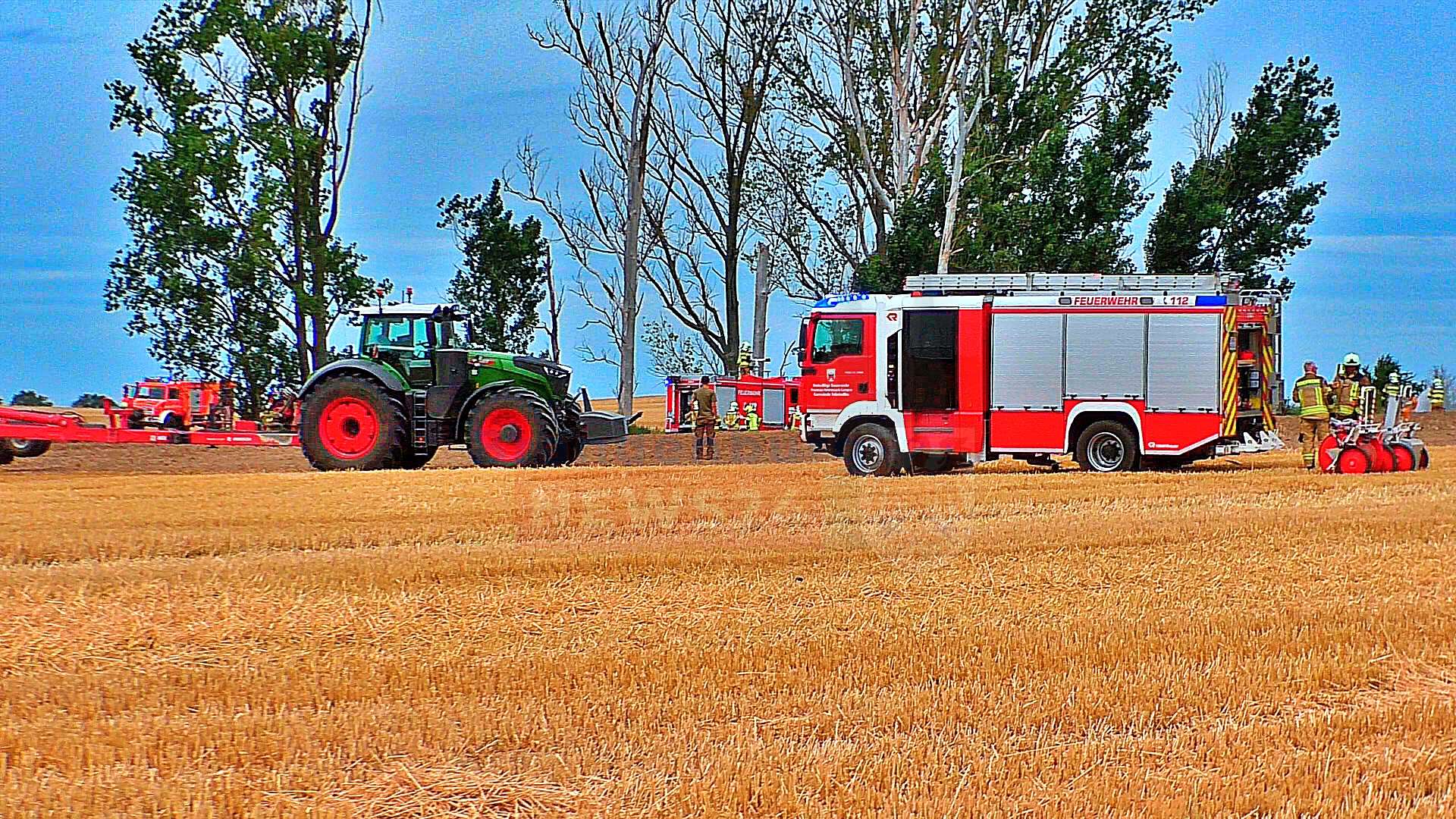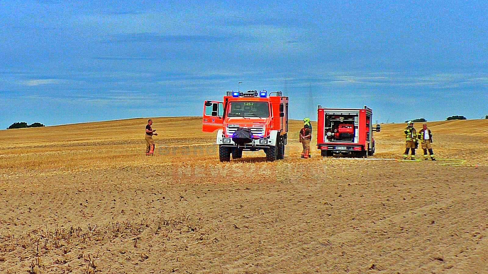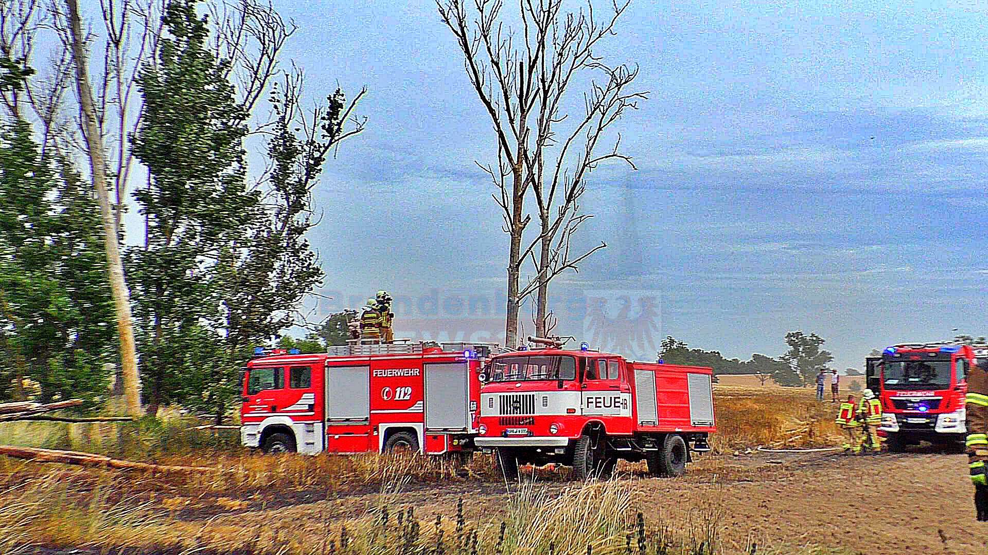Walchow/Protzen - Die anhaltende Wärme und extreme Trockenheit der Böden in Ostprignitz-Ruppin haben am Samstagmittag zu zwei schweren Flächenbränden geführt, die insgesamt sechs Hektar Getreidefelder vernichteten. Feuerwehren aus der Gemeinde Fehrbellin und der Neuruppiner Feuerwache Südost waren stundenlang im Einsatz, um die Flammen zu bekämpfen.
