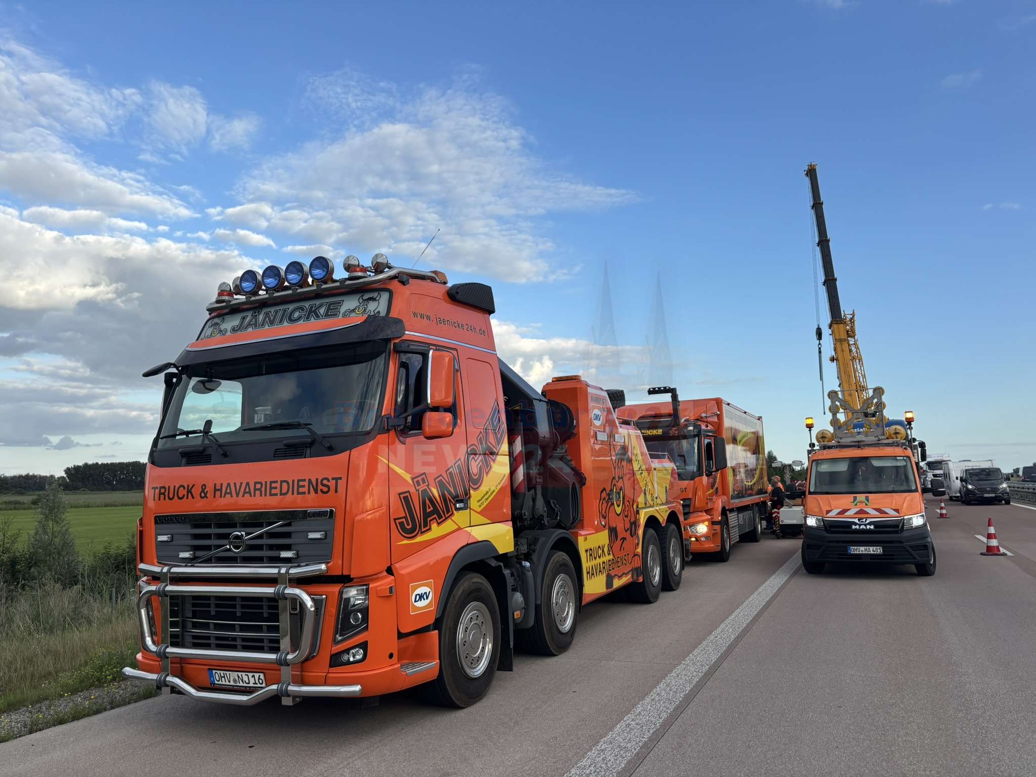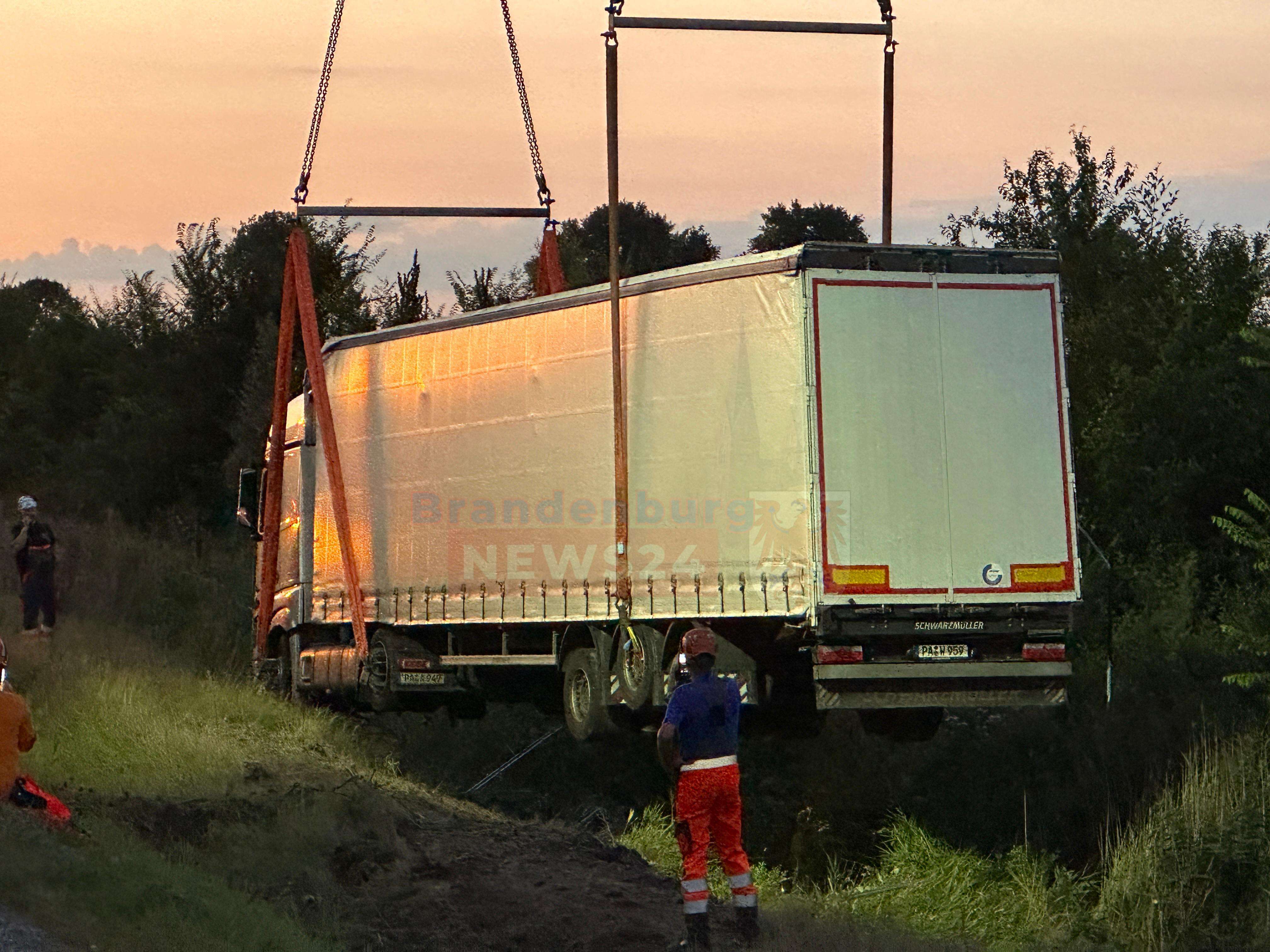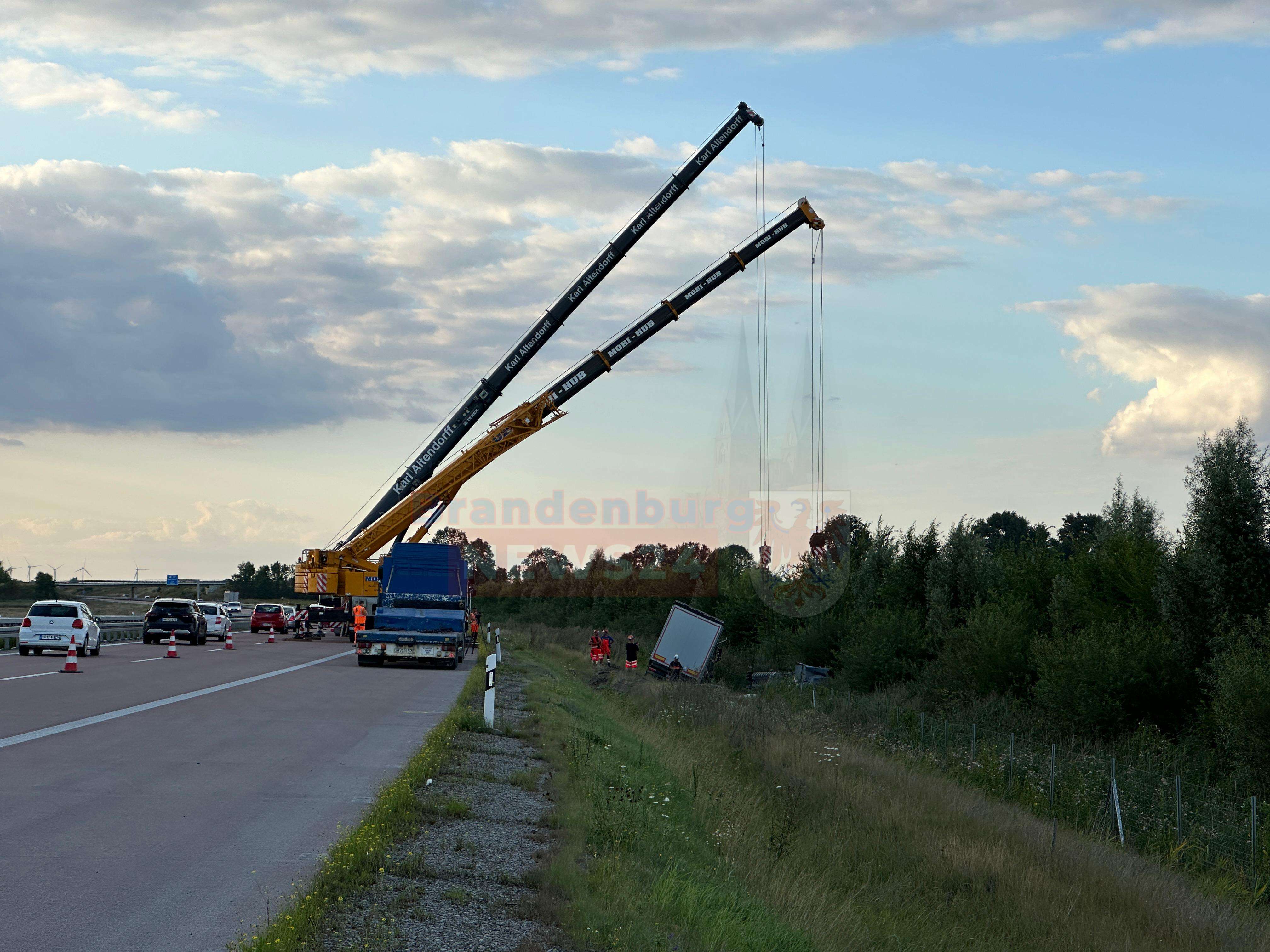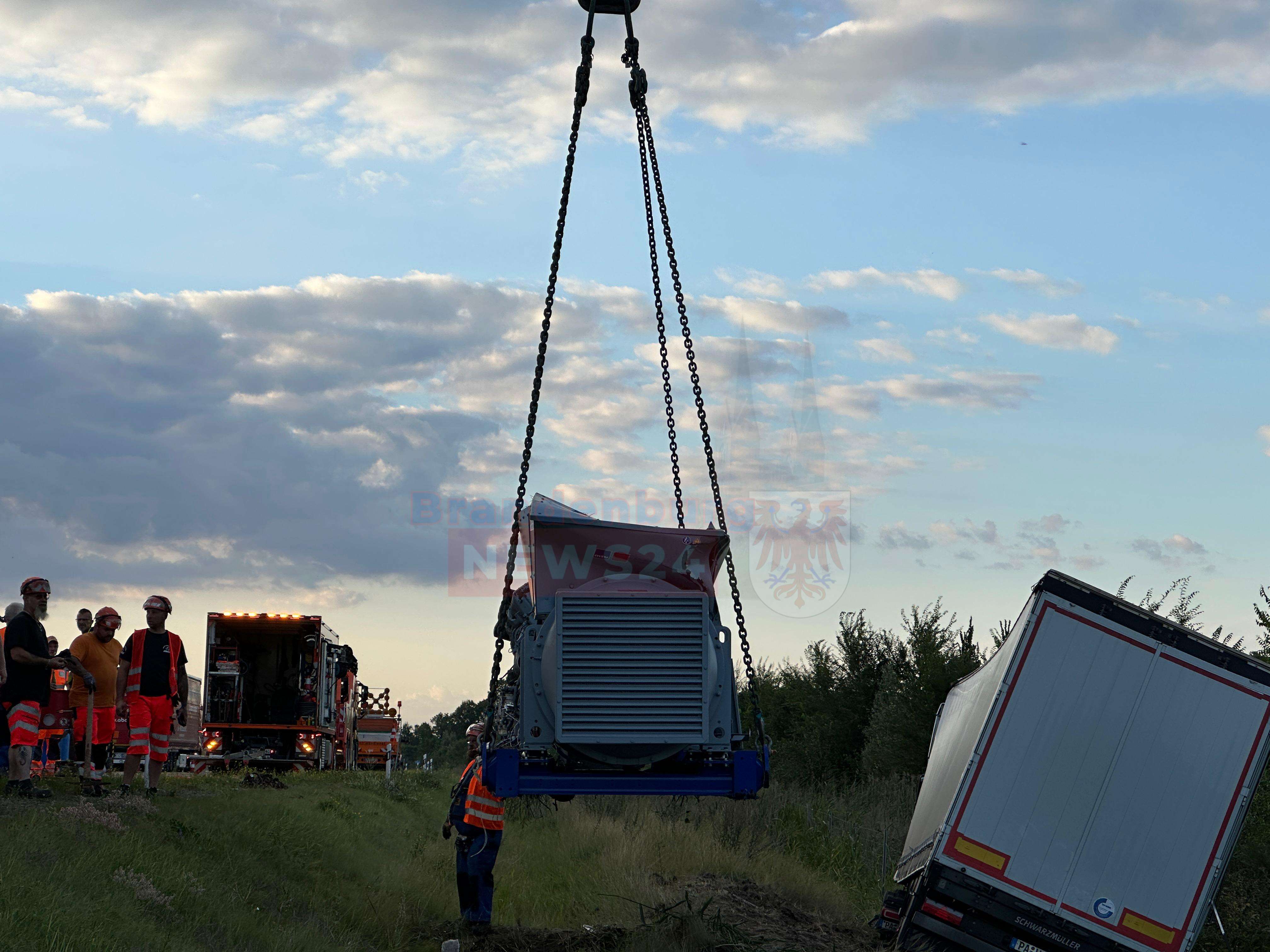 BAB24/Fehrbellin (Ostprignitz-Ruppin). Am Montagmittag wurde die Autobahn A24 zwischen Fehrbellin und Neuruppin Süd zum Schauplatz eines spektakulären Schauspiels. Ein 48-jähriger LKW-Fahrer aus Passau verlor gegen 12:15 Uhr die Kontrolle über sein Fahrzeug, als ein Insekt in die Fahrerkabine eindrang. Der LKW, beladen mit einem tonnenschweren Schiffsmotor der Marke Rolls-Royce, kam von der Fahrbahn ab und kippte auf die angrenzende Grünfläche. Der Auflieger riss auf, und der wertvolle Motor wurde aus seiner Verankerung gerissen.