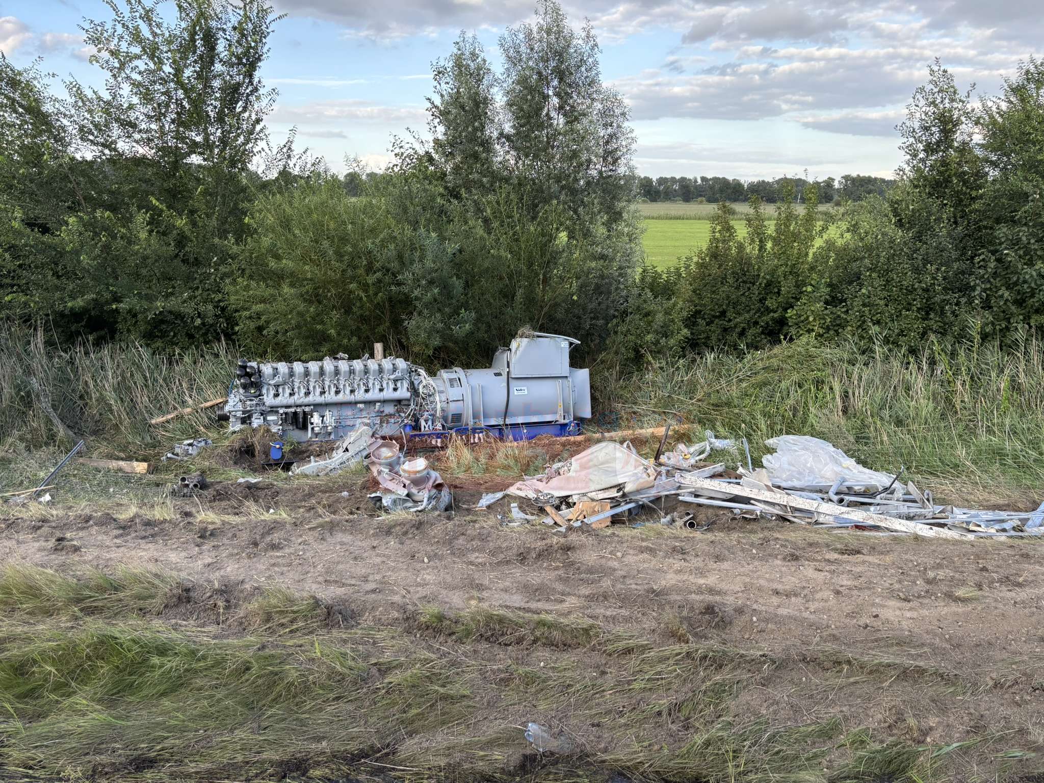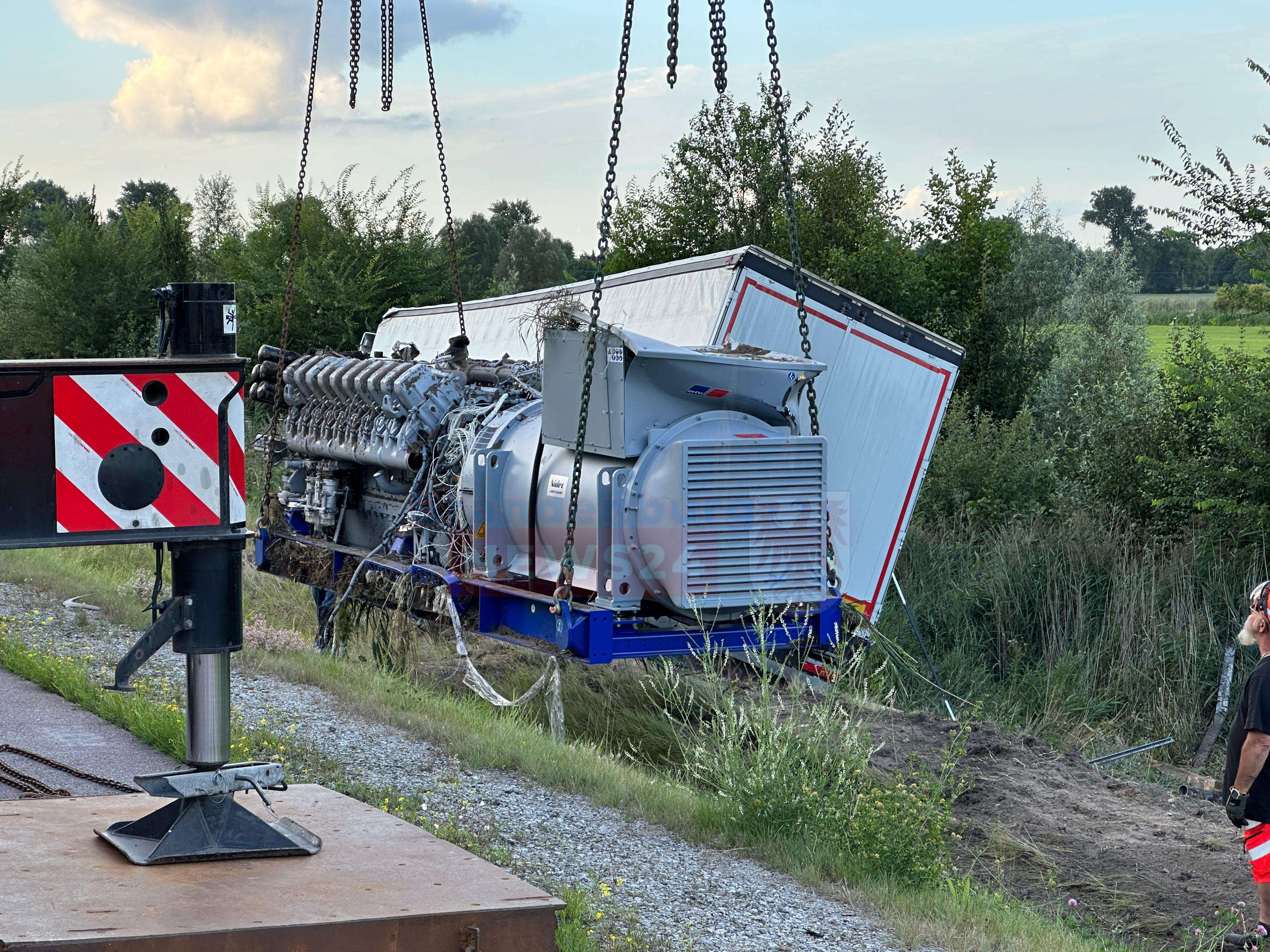 Die Bergung des Schiffsmotors gestaltete sich aufwendig. Ab 17:00 Uhr waren Spezialisten der Firma Jänicke mit zwei Schwerlastkränen vor Ort im Einsatz. Einer der Kräne verfügte über eine Tragkraft von 100 Tonnen, um den V20-Motor mit einem Eigengewicht von 20 Tonnen zu bergen. Die Bergungsarbeiten dauerten insgesamt sechs Stunden. Währenddessen war die A24 in Fahrtrichtung Hamburg auf eine Spur verengt. Gegen 23:00 Uhr konnte die Autobahn wieder vollständig für den Verkehr freigegeben werden.