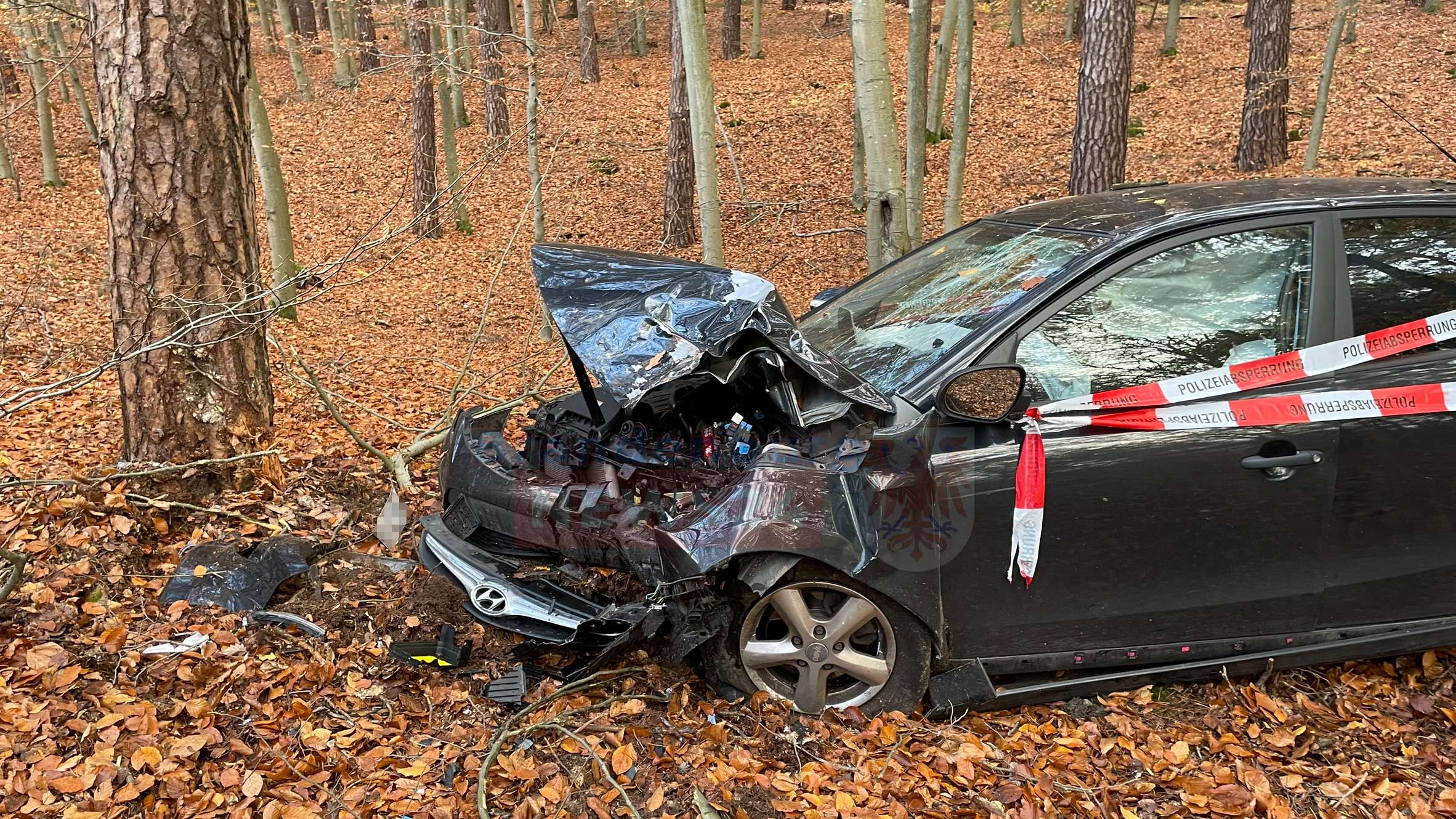 Wie die Polizei mitteilte, kam der 35-jährige Fahrer des Hyundai nach ersten Erkenntnissen aufgrund von zu hoher Geschwindigkeit in einer Linkskurve und dem dahinter liegenden Hügel rechts von der Fahrbahn ab, schlitterte circa 30 m über nasses Laub in den Wald und krachte mit einer Restgeschwindigkeit von 80 Km/h gegen einen Baum. Bei Eintreffen der Feuerwehr Gransee Löschgruppe Menz, befand sich der Fahrer bereits außerhalb des Fahrzeugs und musste durch die Feuerwehr medizinisch erst versorgt werden, bis der Rettungsdienst eintraf. Die Feuerwehr hat den Brandschutz sichergestellt, sowie kontrolliert, ob Betriebsstoffe auslaufen.