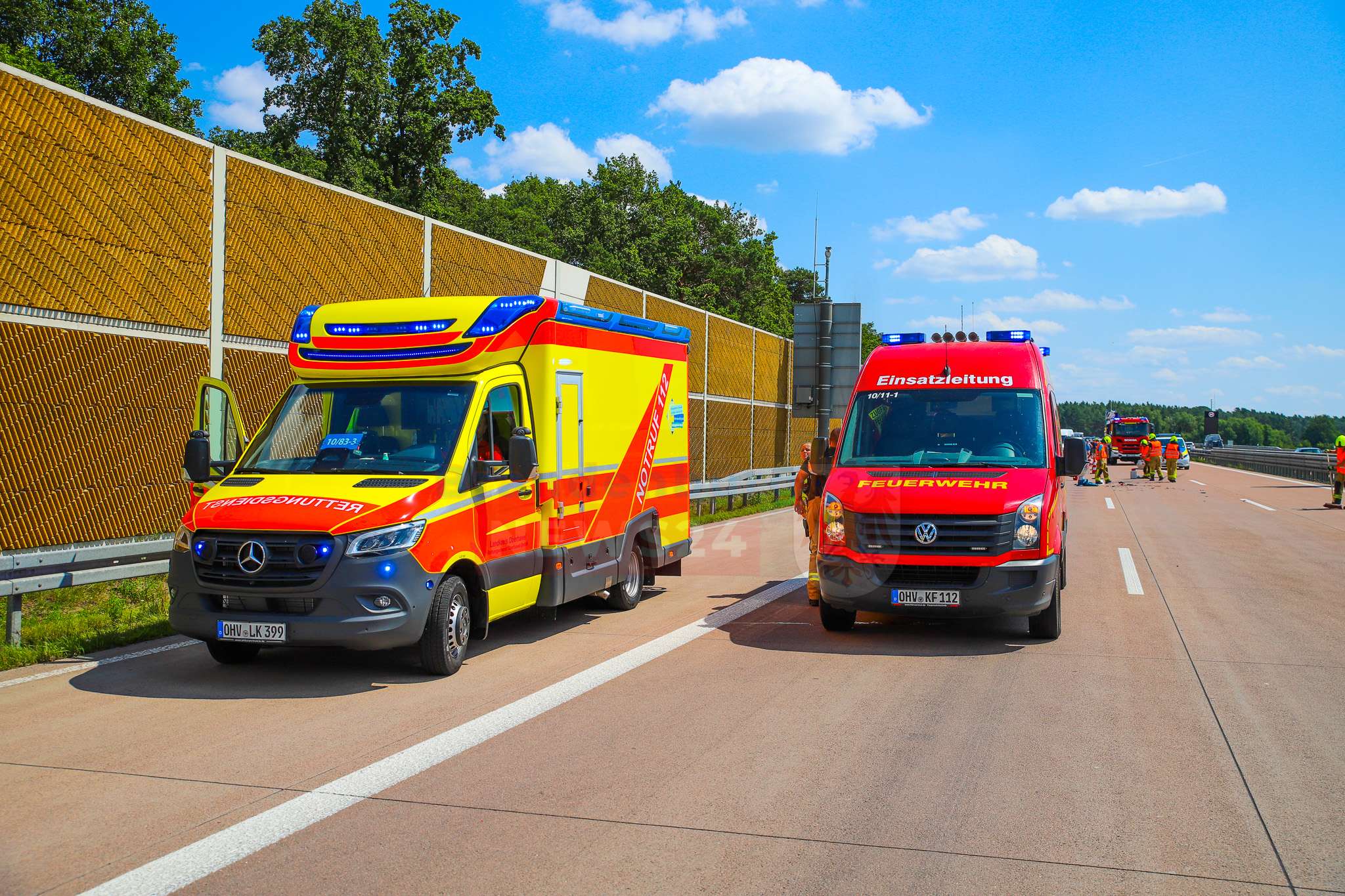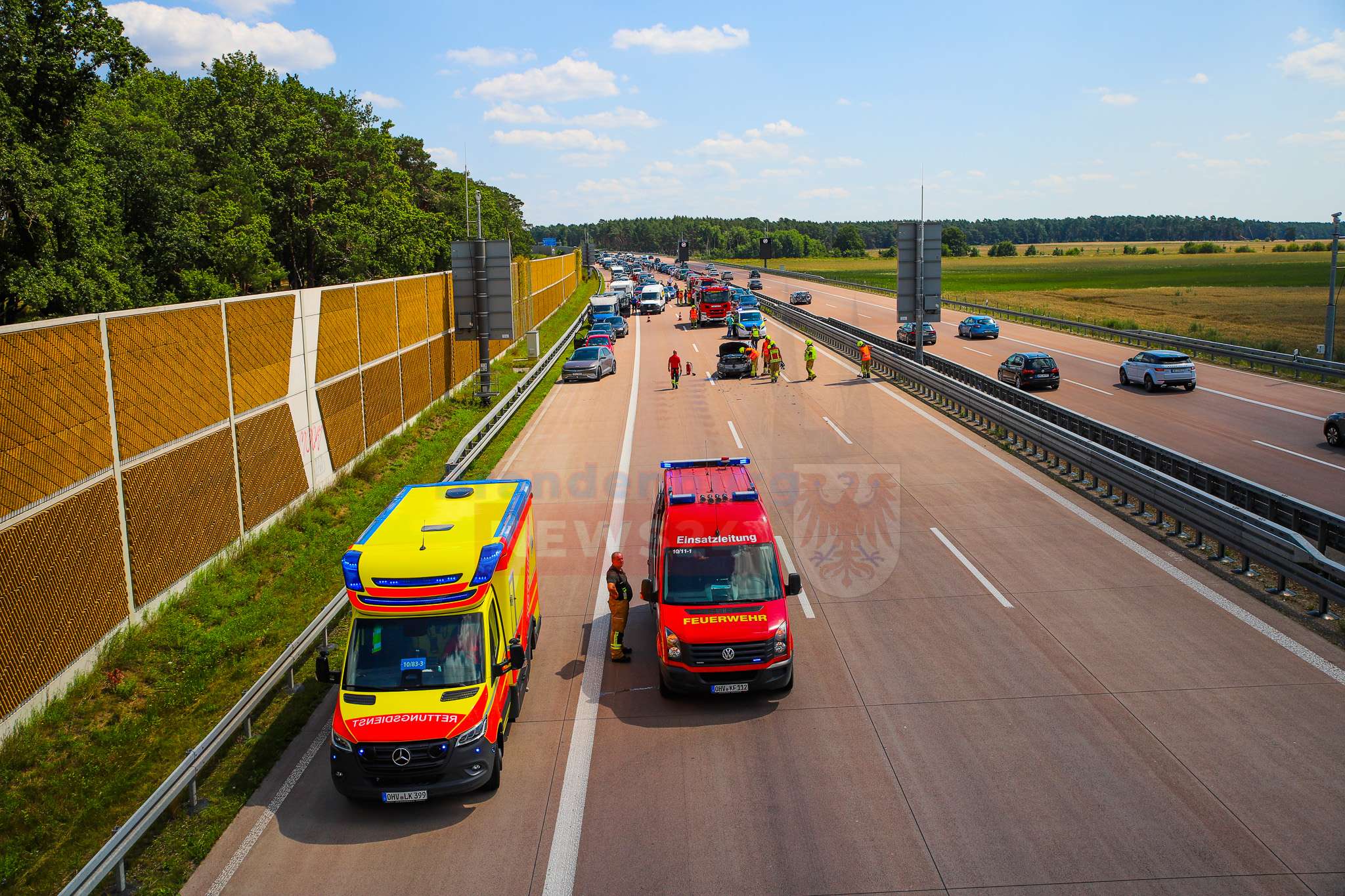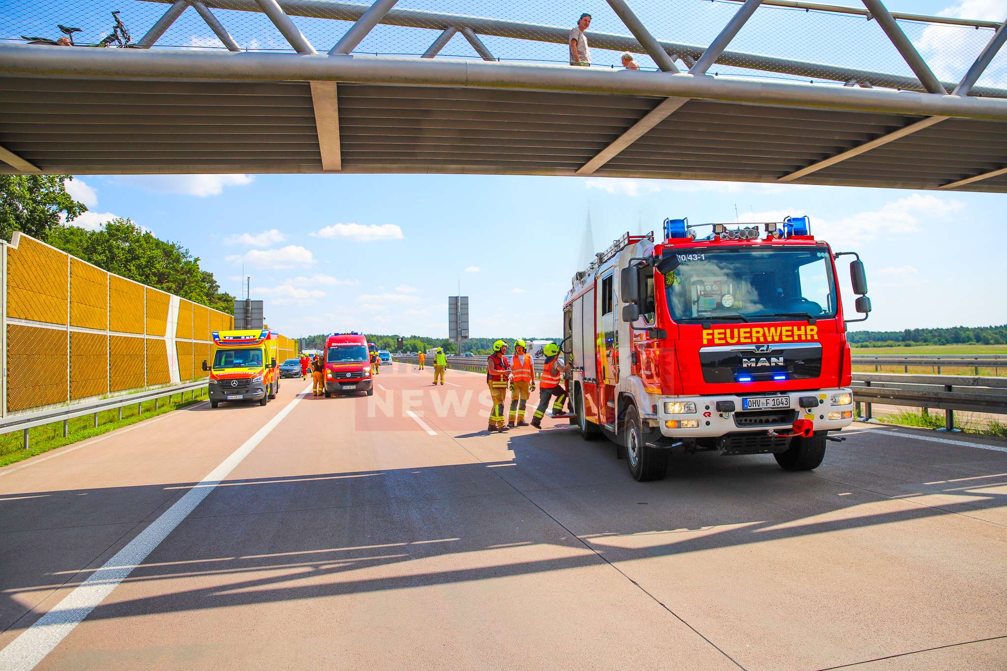 Die Feuerwehr der Stadt Kremmen sicherte die Unfallstelle ab, stellte den Brandschutz sicher und nahm auslaufende Betriebsstoffe auf. Gegen 13:15 Uhr konnten zwei der drei Fahrspuren wieder freigegeben werden, sodass der Verkehr langsam an der Unfallstelle vorbeigeführt werden konnte.