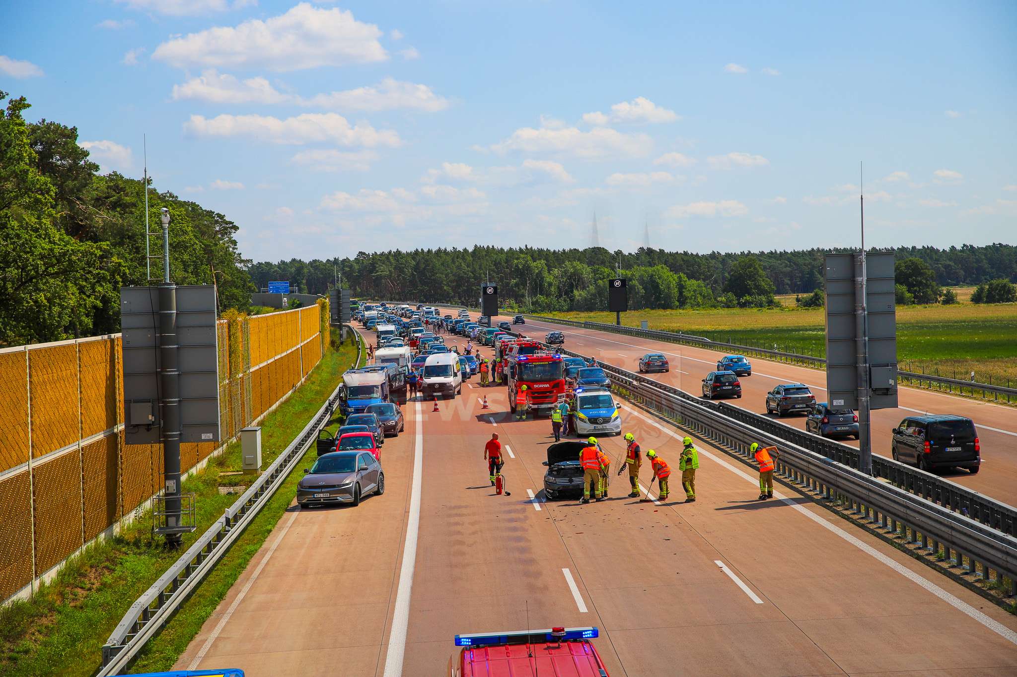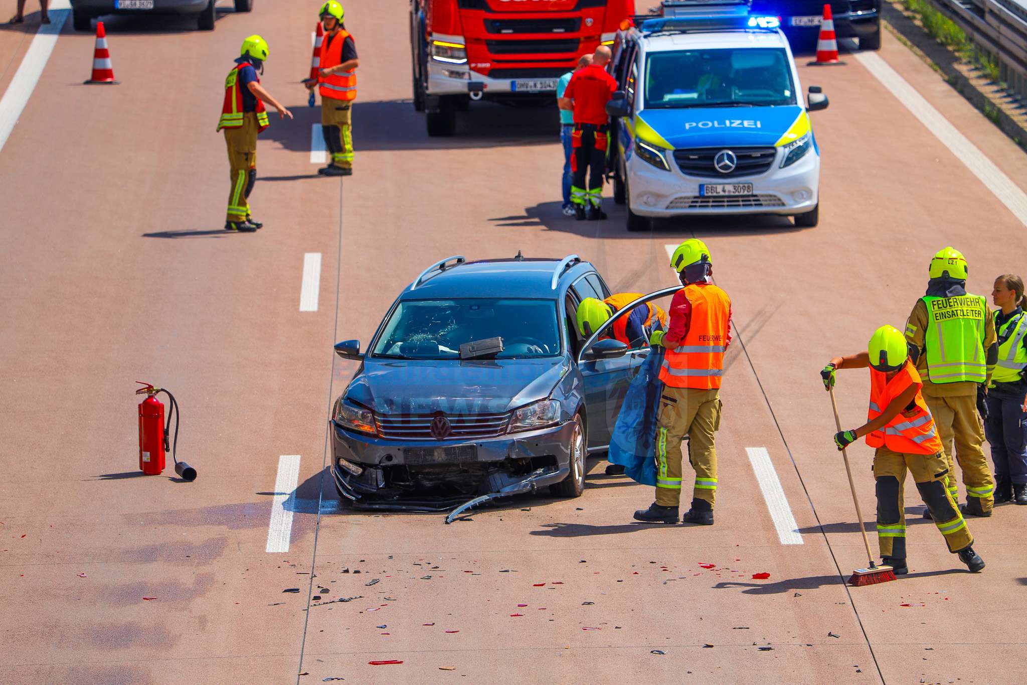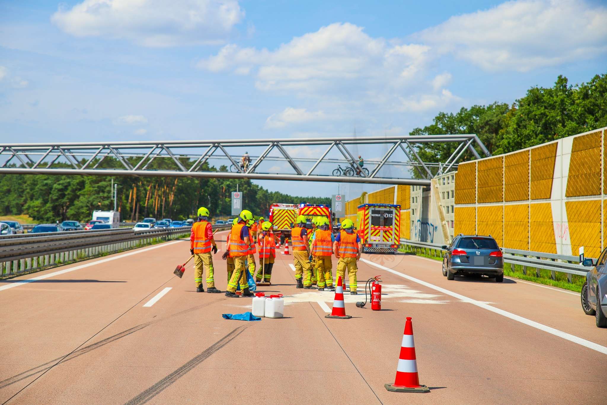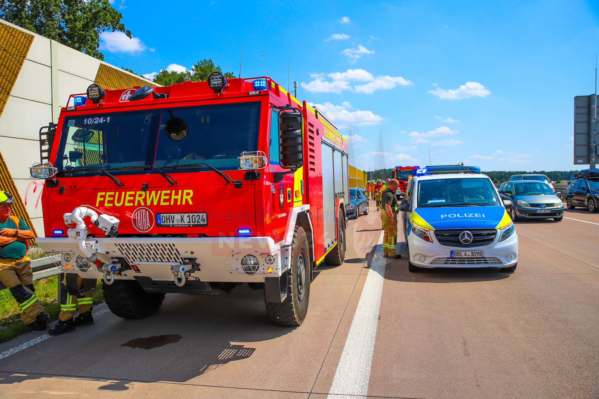 Die Feuerwehr der Stadt Kremmen sicherte die Unfallstelle ab, stellte den Brandschutz sicher und nahm auslaufende Betriebsstoffe auf. Gegen 13:15 Uhr konnten zwei der drei Fahrspuren wieder freigegeben werden, sodass der Verkehr langsam an der Unfallstelle vorbeigeführt werden konnte.