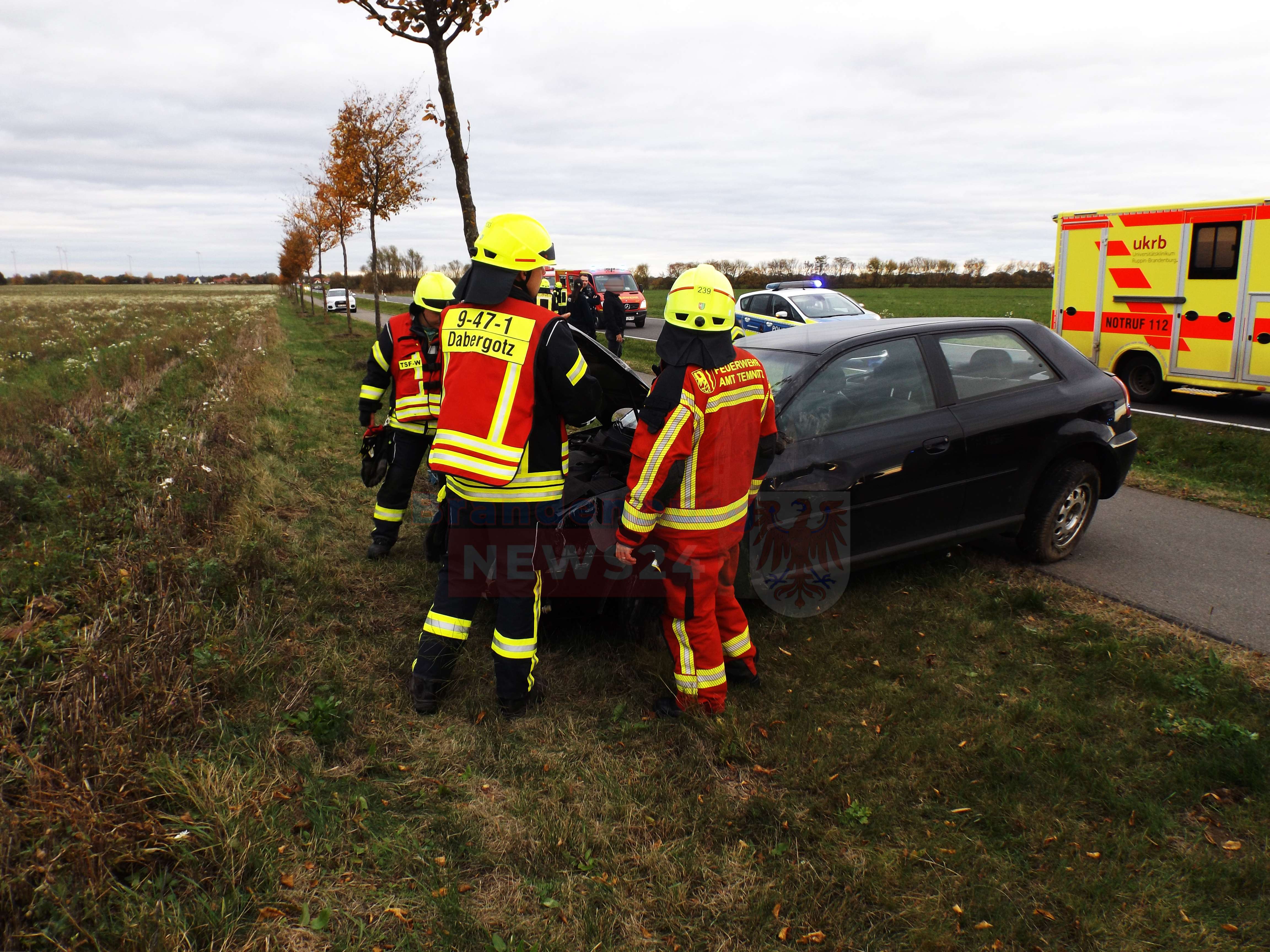 Ein Autofahrer ist am Samstag gegen 15 Uhr mit seinem Wagen von der Bundesstraße 167 abgekommen. Der Wagen geriet nach rechts in den Grünstreifen und überschlug sich. Der Unfall ereignete sich zwischen Dabergotz und Kerzlin. Als die Feuerwehr eintraf, befand sich der Fahrer schon nicht mehr im Pkw. Er war augenscheinlich unverletzt. Rettungskräfte untersuchten den Mann.