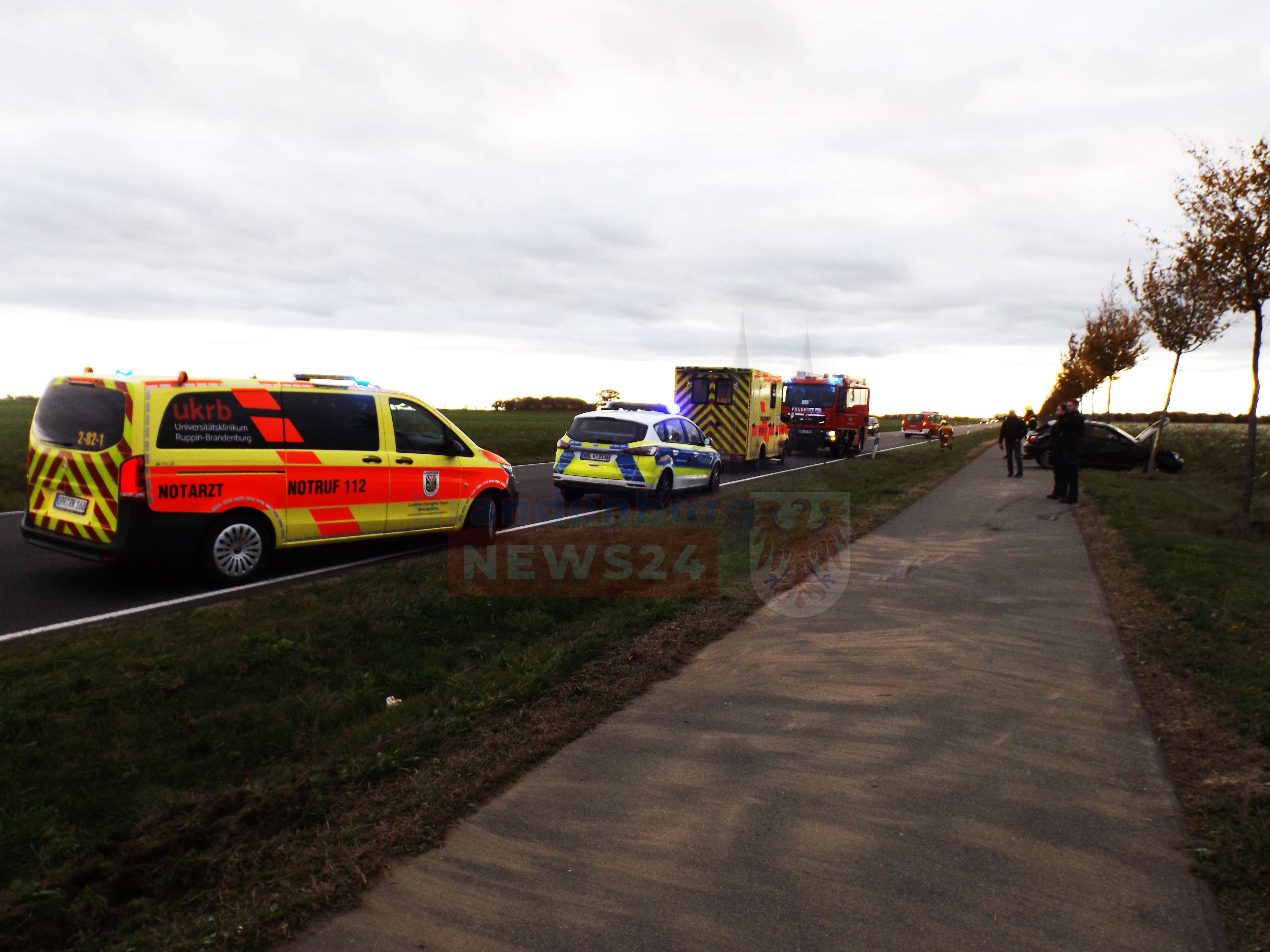 Auto überschlägt sich auf B167 zwischen Dabergotz und Kerzlin