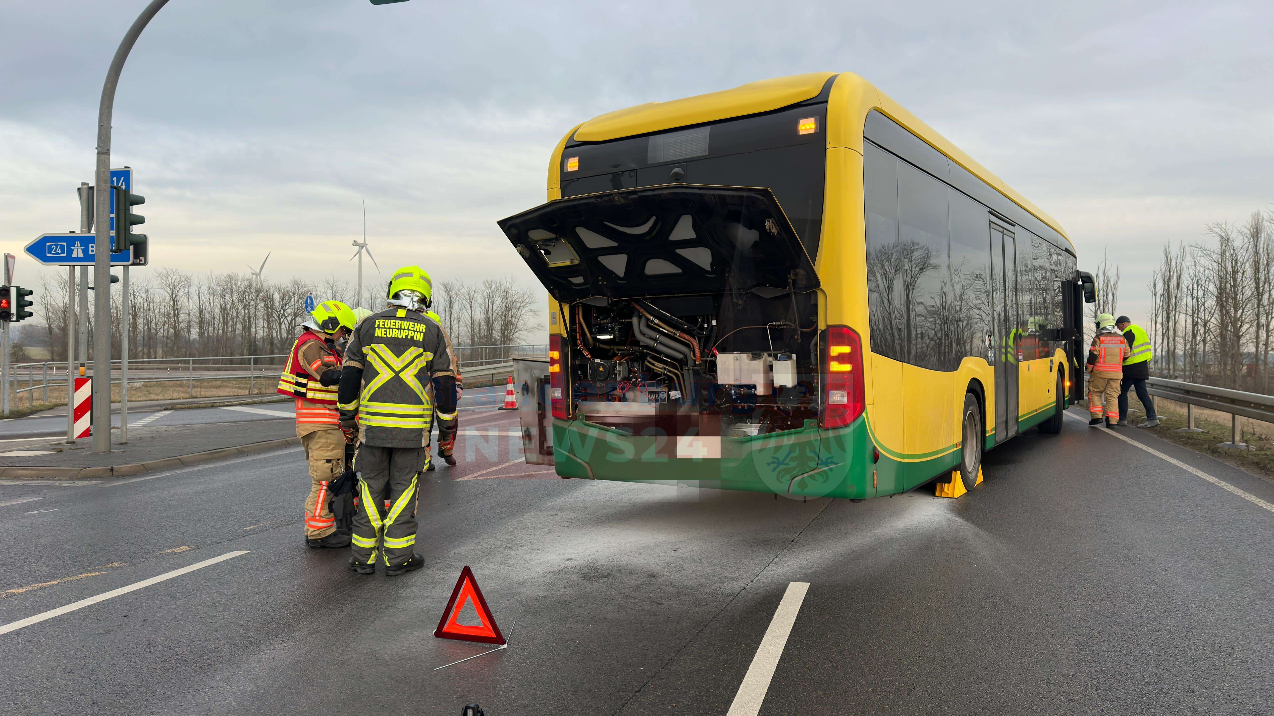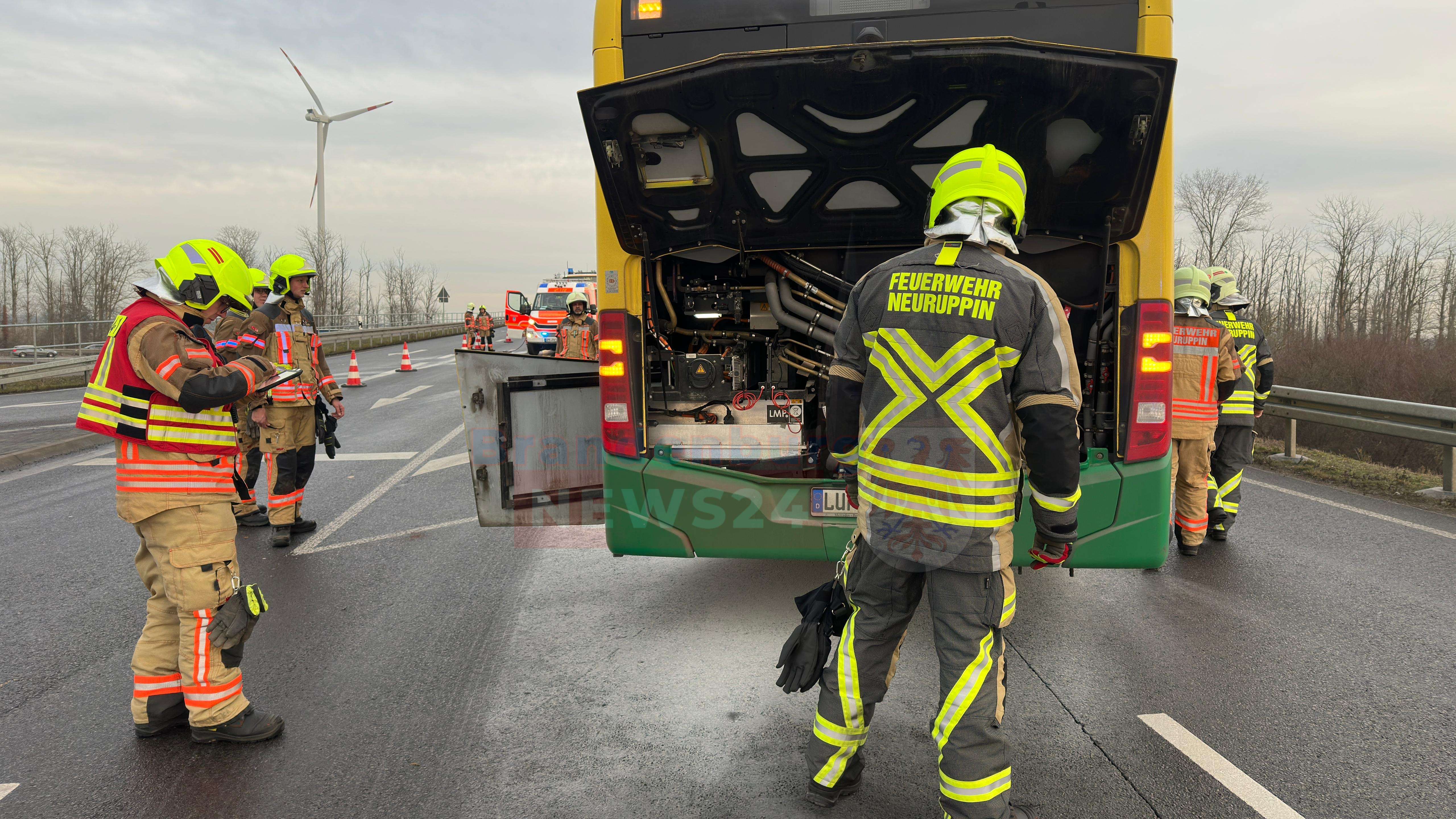 Neuruppin (Ostprignitz - Ruppin). Am Mittwochnachmittag, des 22. Januar, kam es auf der B167 zwischen Dabergotz und der A24-Anschlussstelle Neuruppin zu einem Zwischenfall mit einem Elektrobus. Während der Fahrt geriet der Bus an der Hinterachse in Brand.