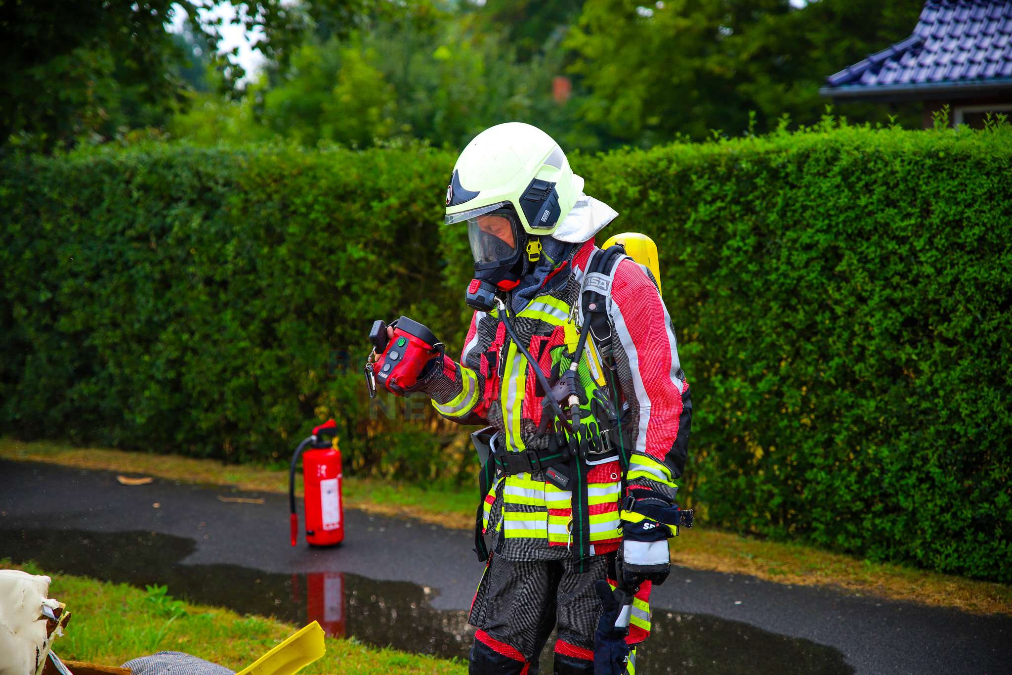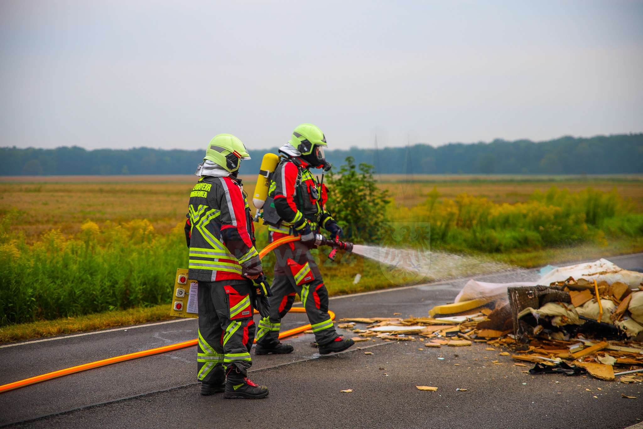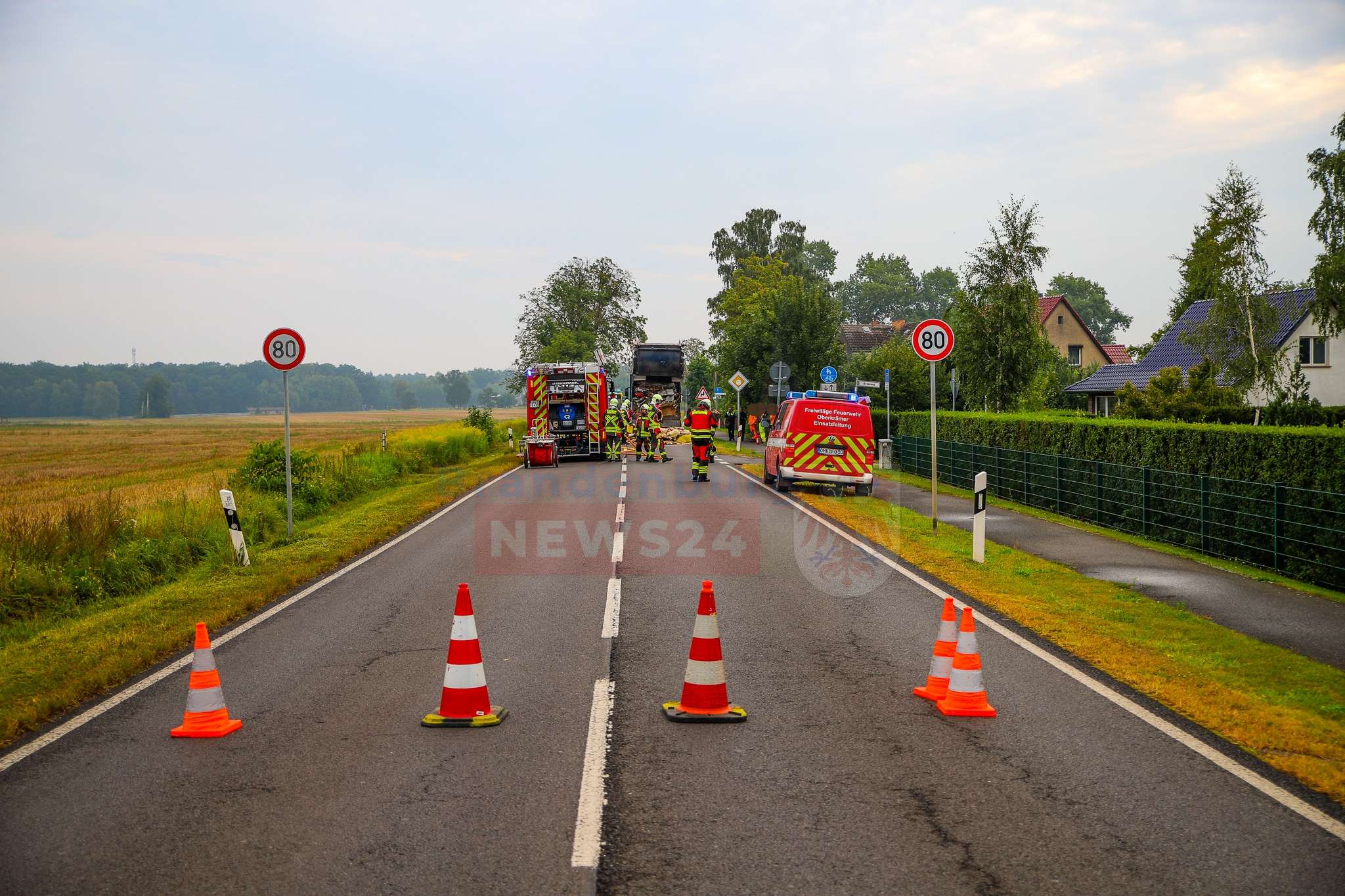 Die Ortsfeuerwehr Vehlefanz rückte zügig an. Ein Trupp ging unter schwerem Atemschutz gegen die Flammen vor und konnte das Feuer rasch unter Kontrolle bringen. Das Müllfahrzeug selbst blieb unbeschädigt.