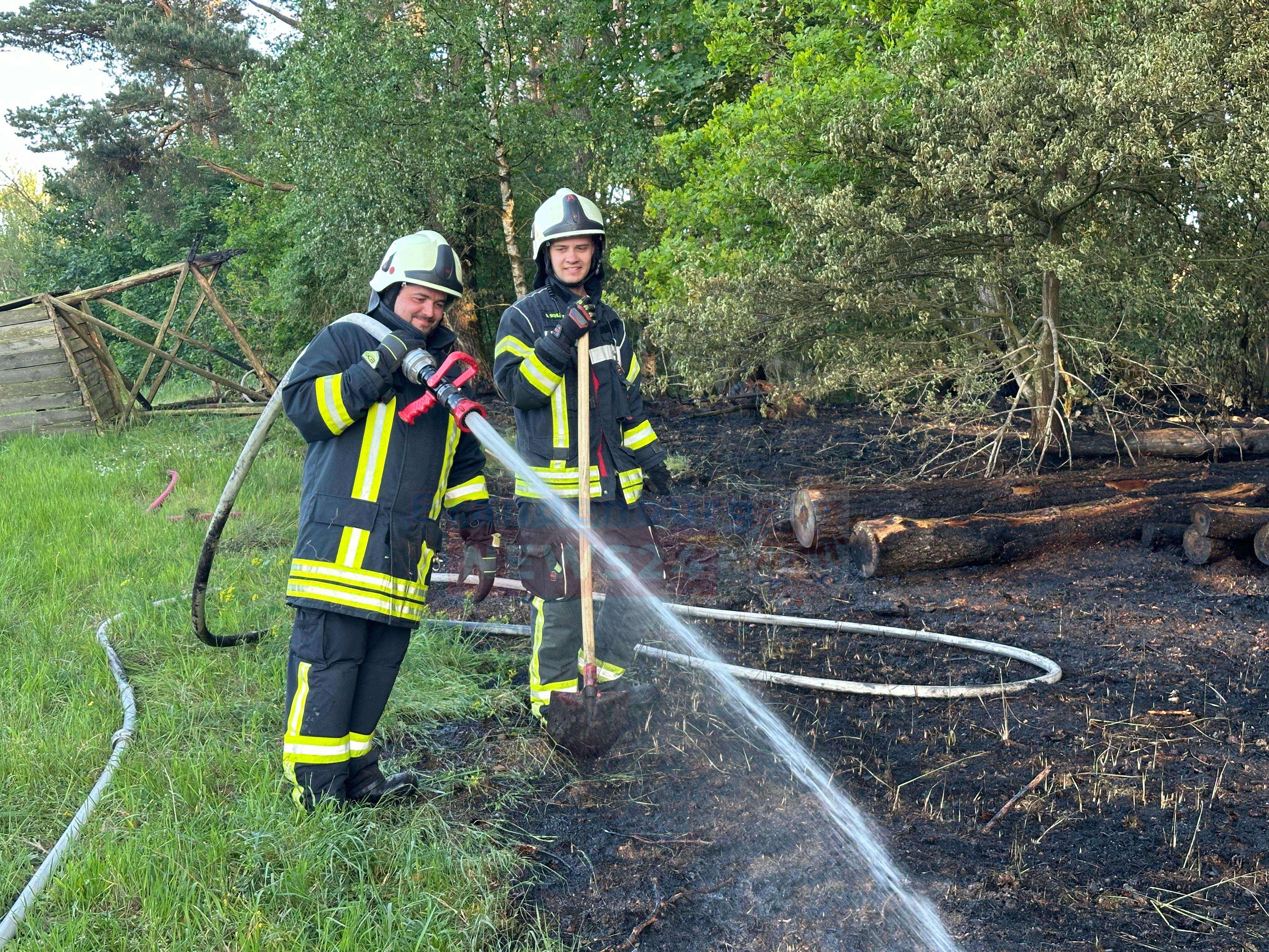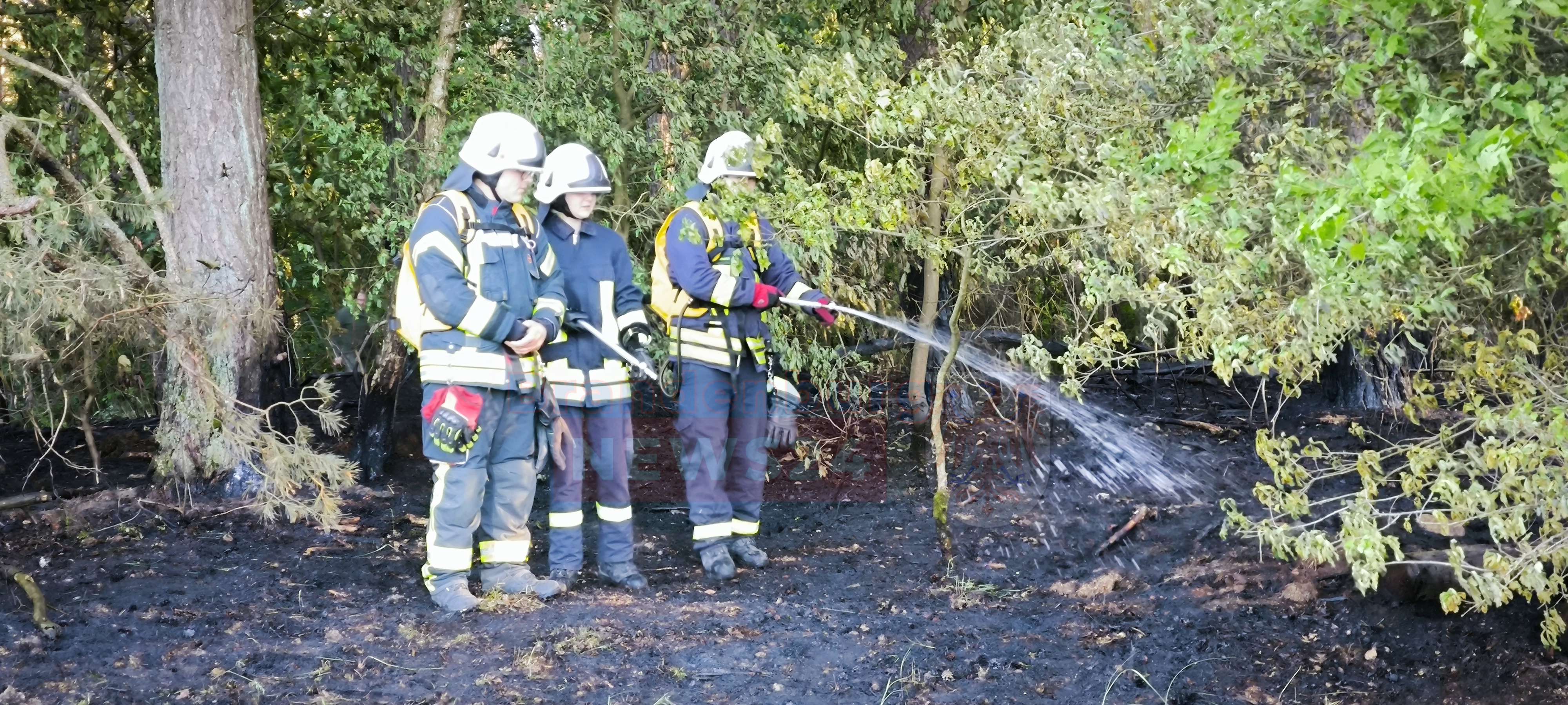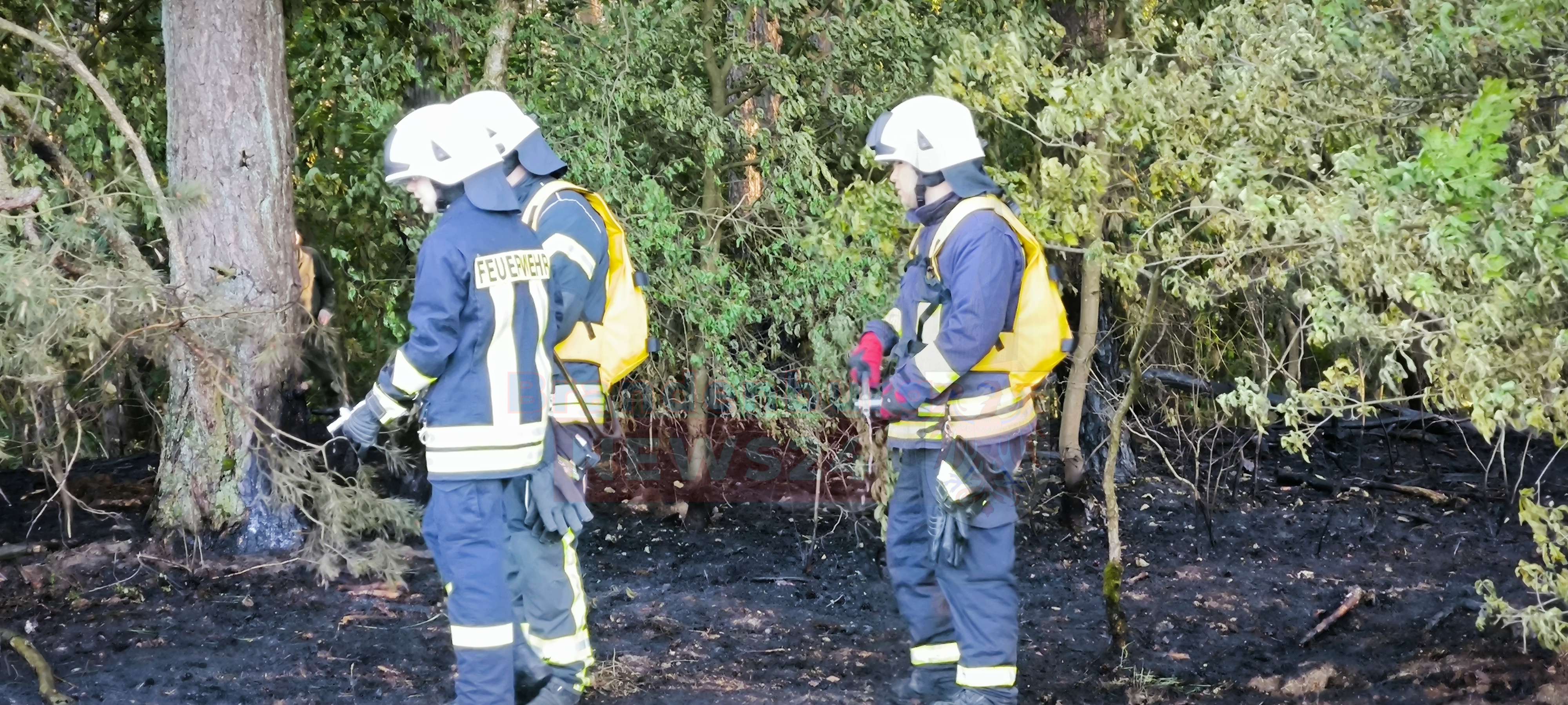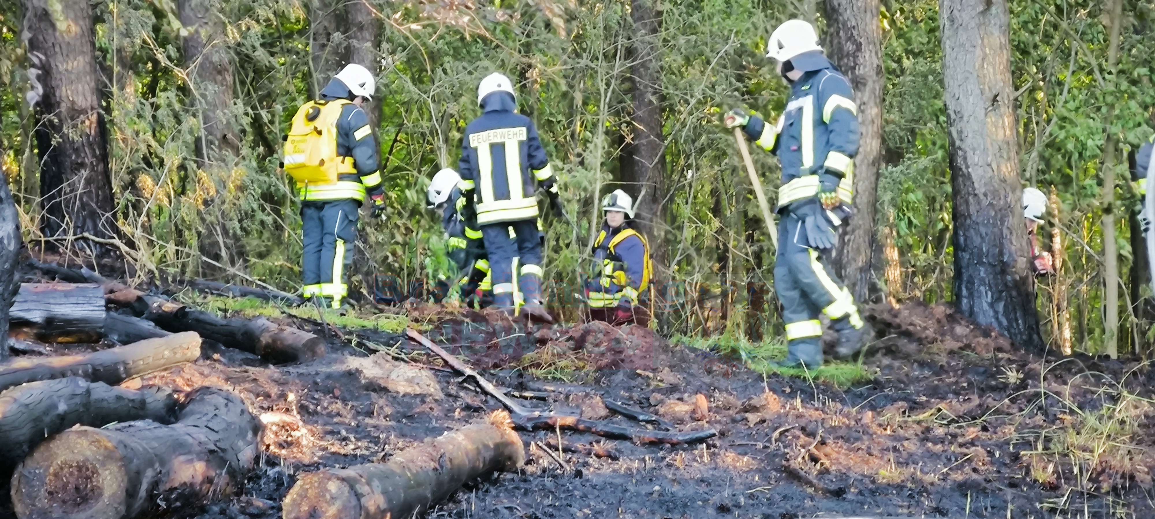 Das Feuer entfachte sich auf eine größe von gut 200 Quadratmeter. Das Feuer war abseits eines Waldgebiets mit Laub und Nadelbäumen ausgebrochen. Es brannten Waldboden und auch Baumstämme, die eine Höhe von circa zwei Metern von den Flammen erfasst wurden. Die Einsatzkräfte kontrollieren die Brandstelle mit Wärmebildkameras und bekämpfen Glutnester auch mit Löschrucksäcken. An einer Stelle ganz in der Nähe hatte es erst im vorigen Jahr einen großen Waldbrand gegeben.