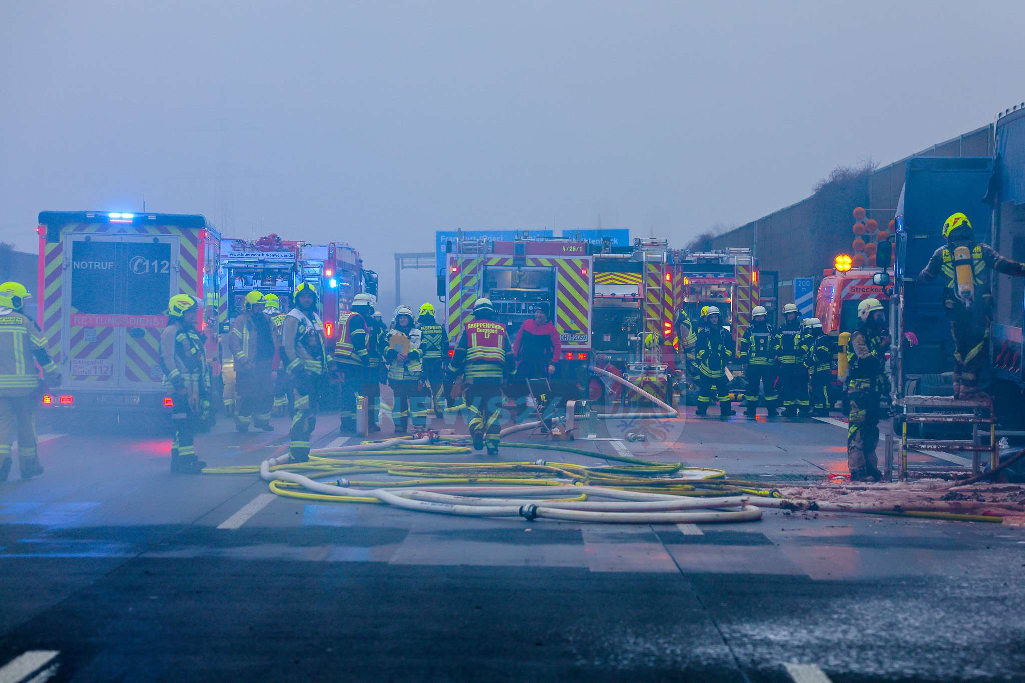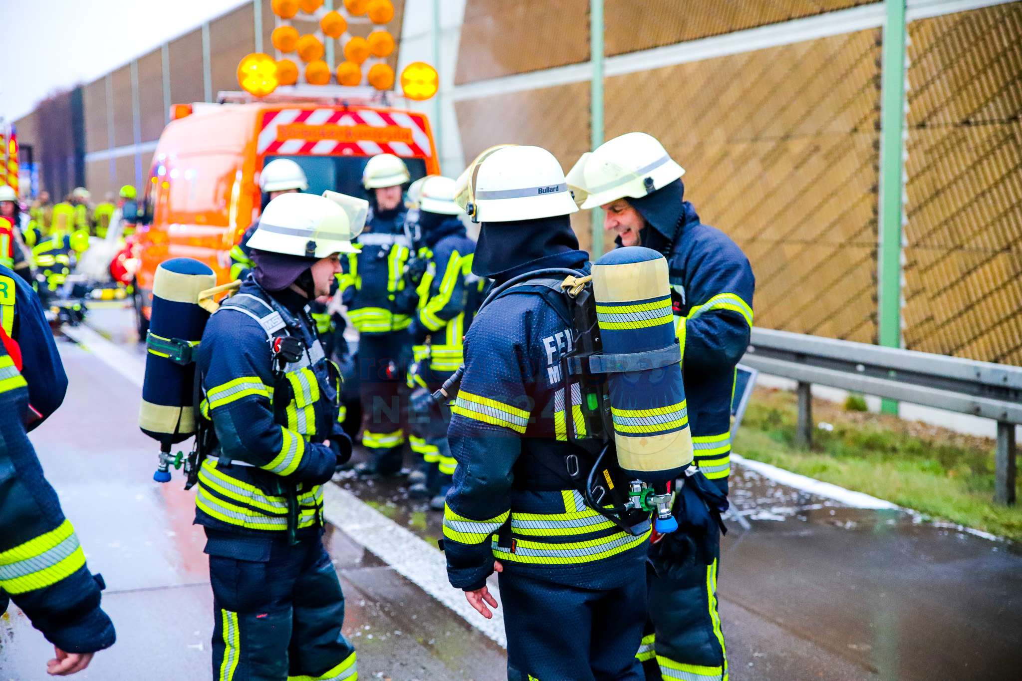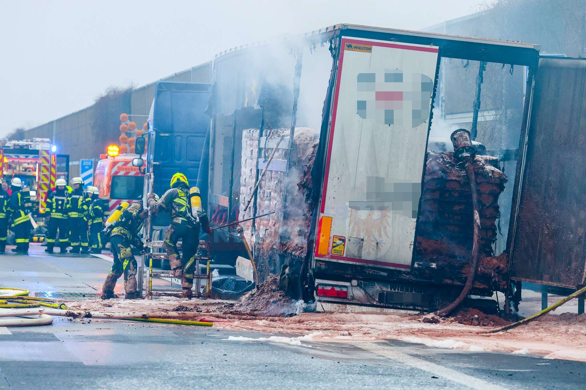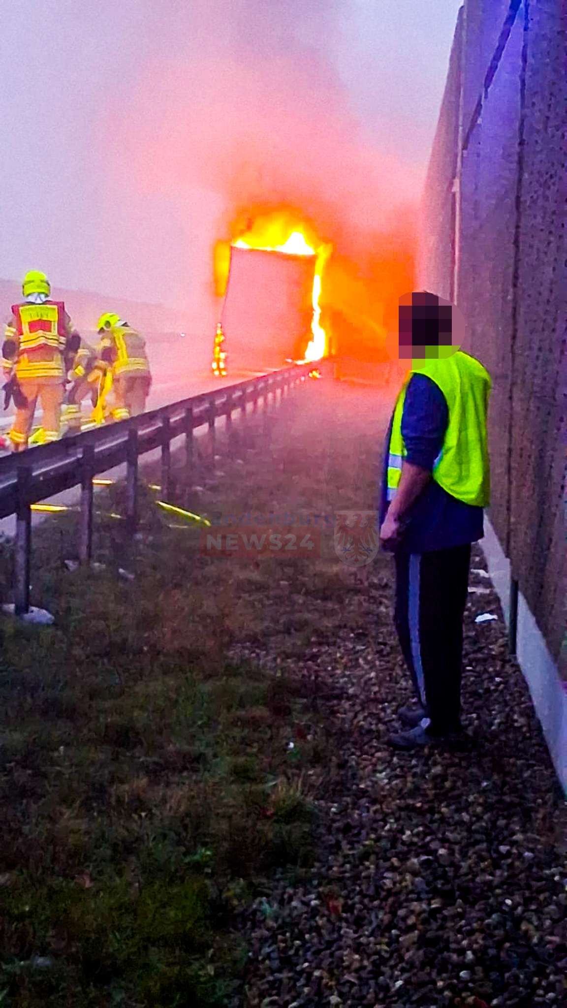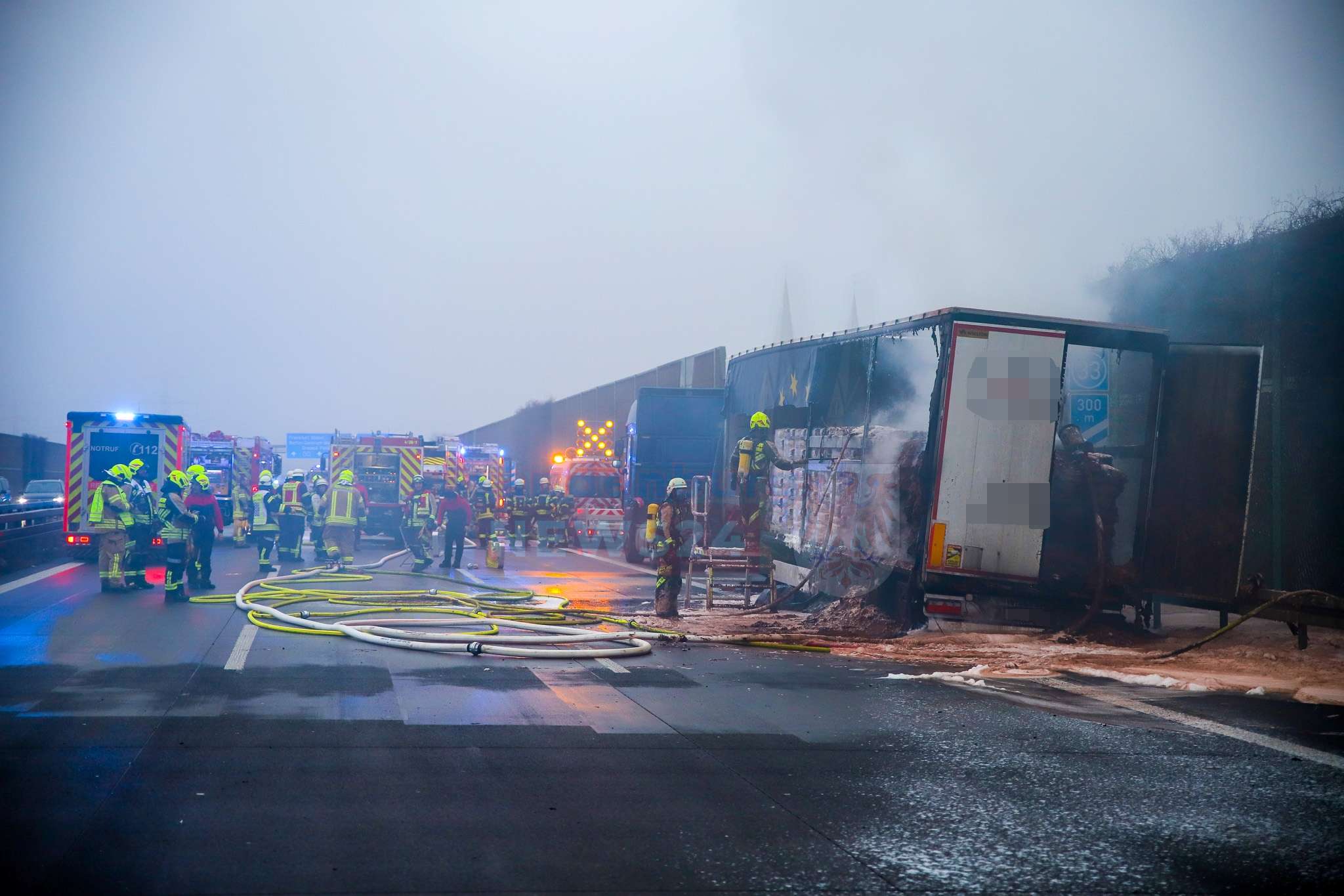 Die A10 blieb während der umfangreichen Lösch- und Aufräumarbeiten stundenlang voll gesperrt, was zu erheblichen Verkehrsbehinderungen führte.
