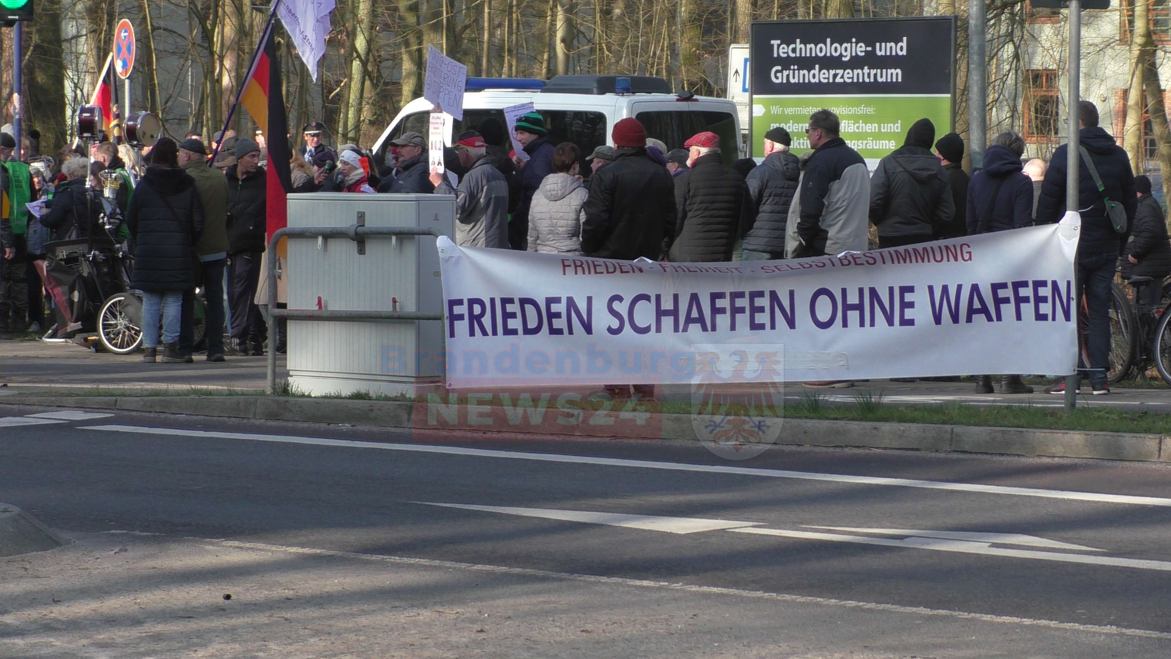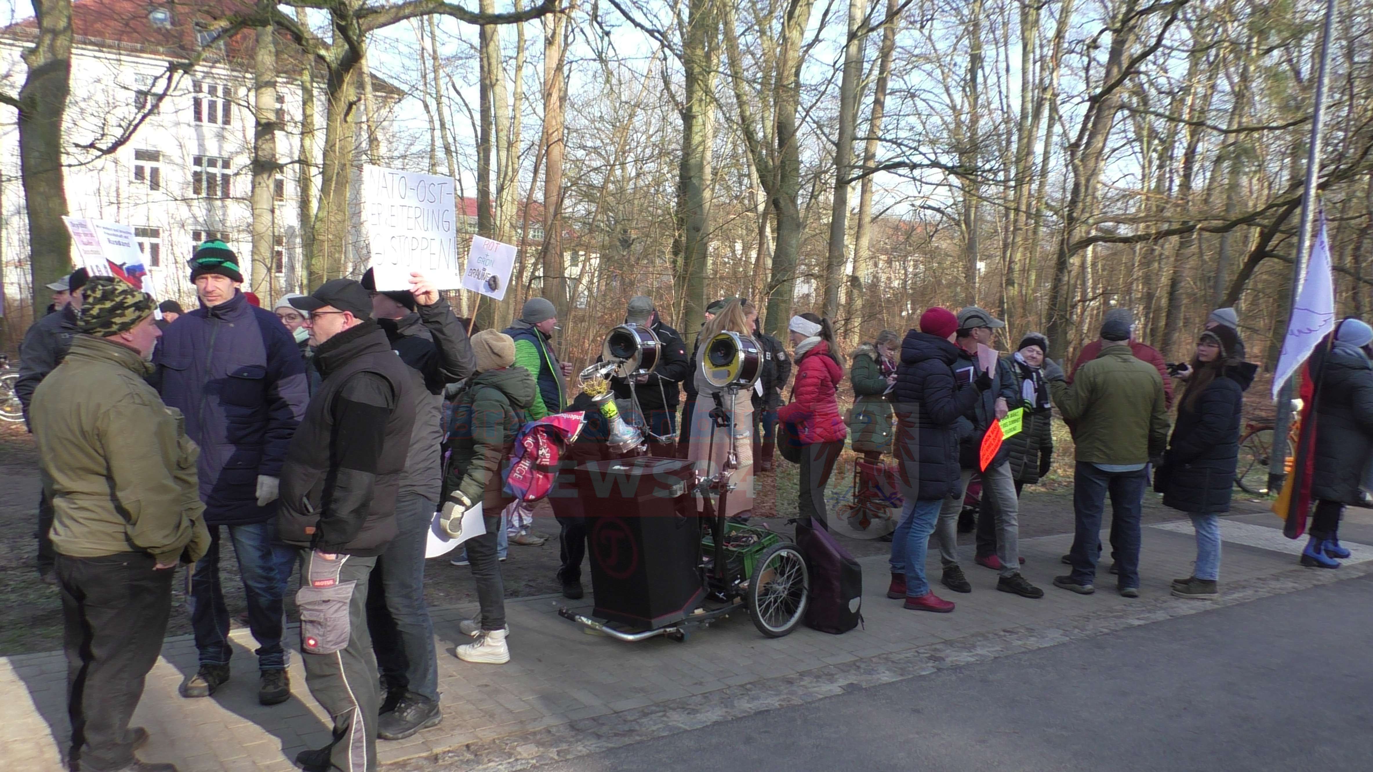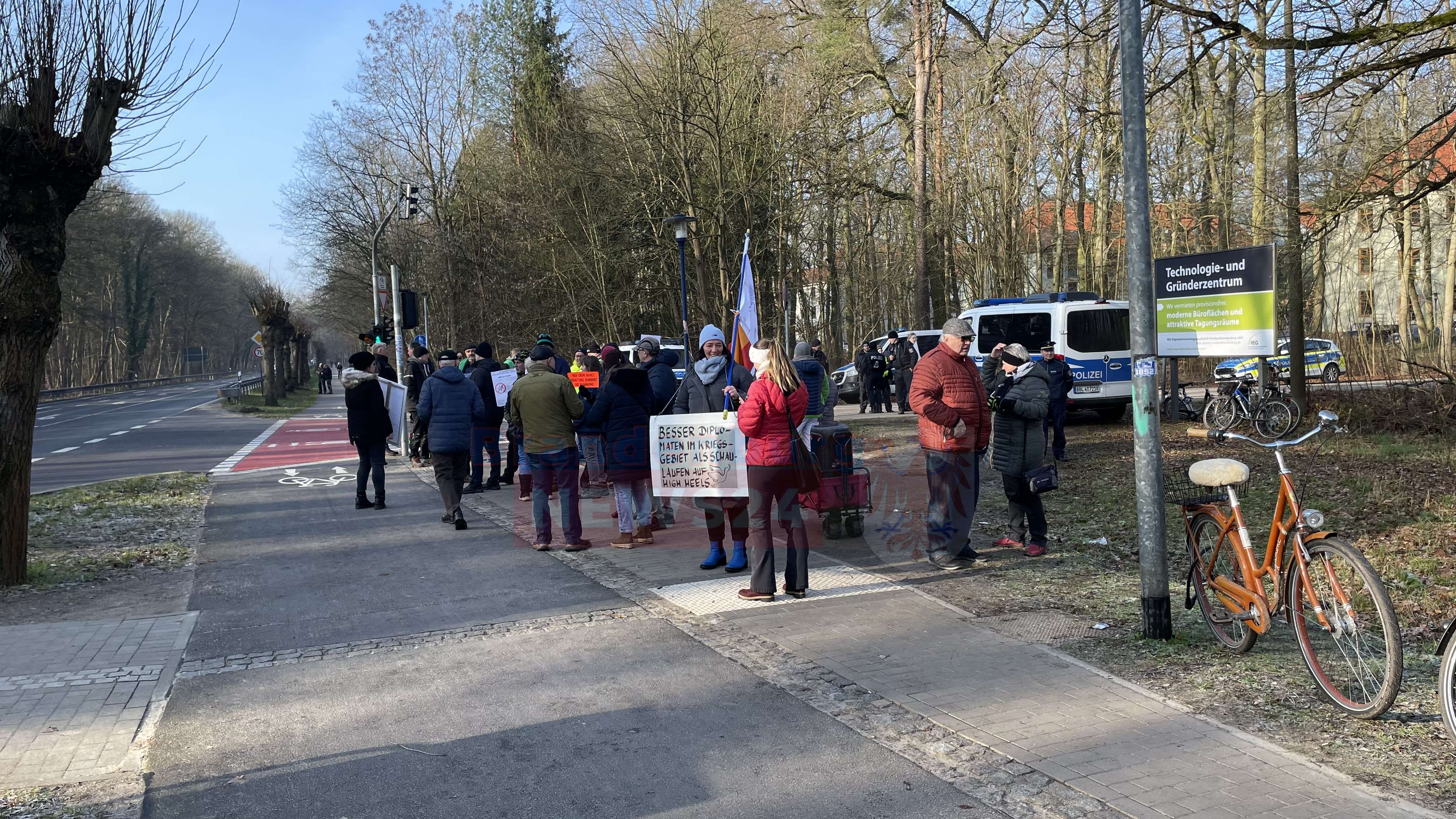 Neuruppin (Ostprignitz-Ruppin). Am Donnerstagvormittag versammelten sich dutzende Demonstranten vor dem Neuruppiner Oberstufenzentrum. Die Teilnehmer der Versammlung warten dort auf die Bundesaußenministerin Annalena Baerbock. Die Teilnehmer, teilweise mit Spruchbändern ausgestattet, warteten darauf, der Politikerin einen lautstarken Empfang zu bereiten.