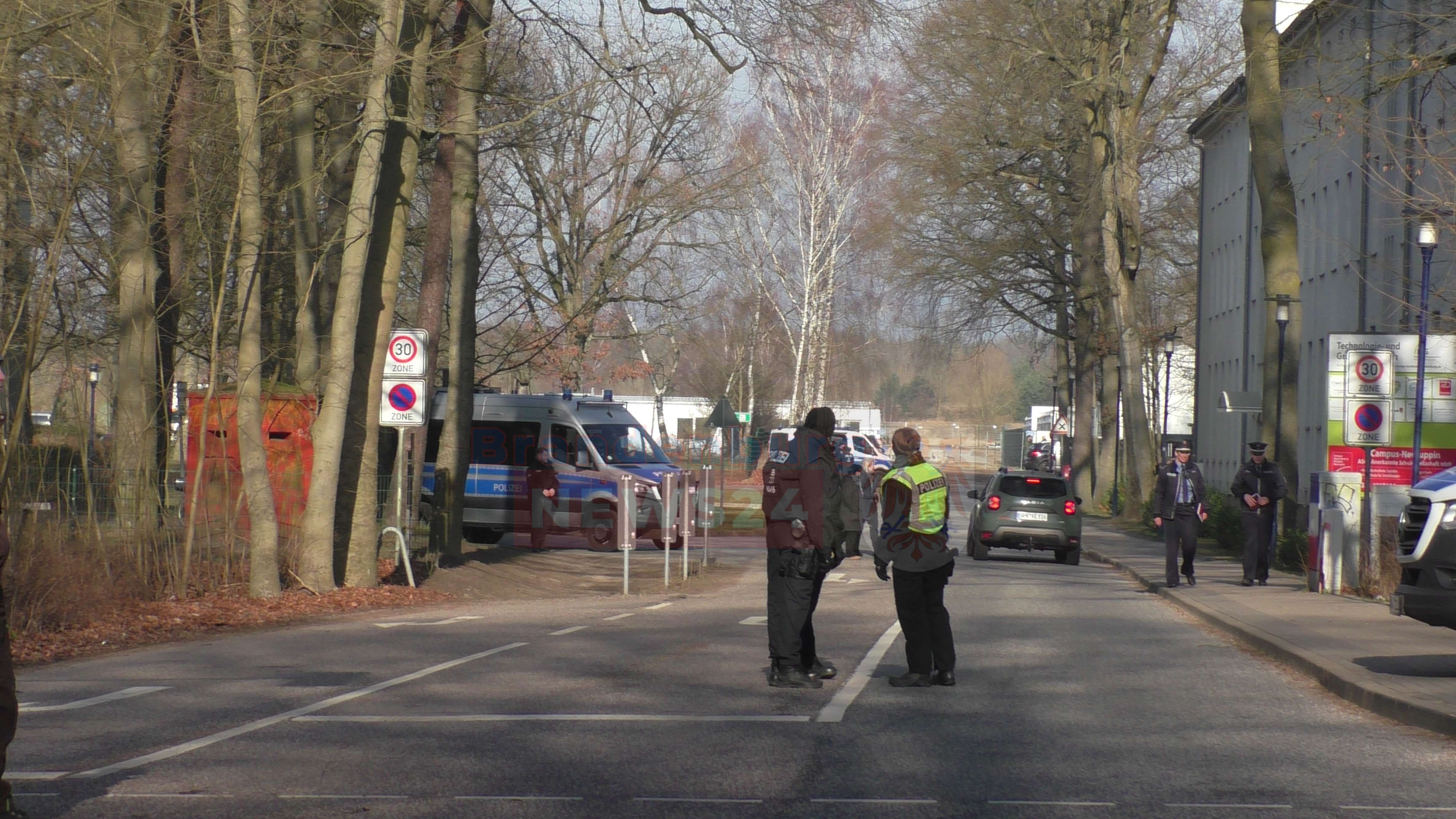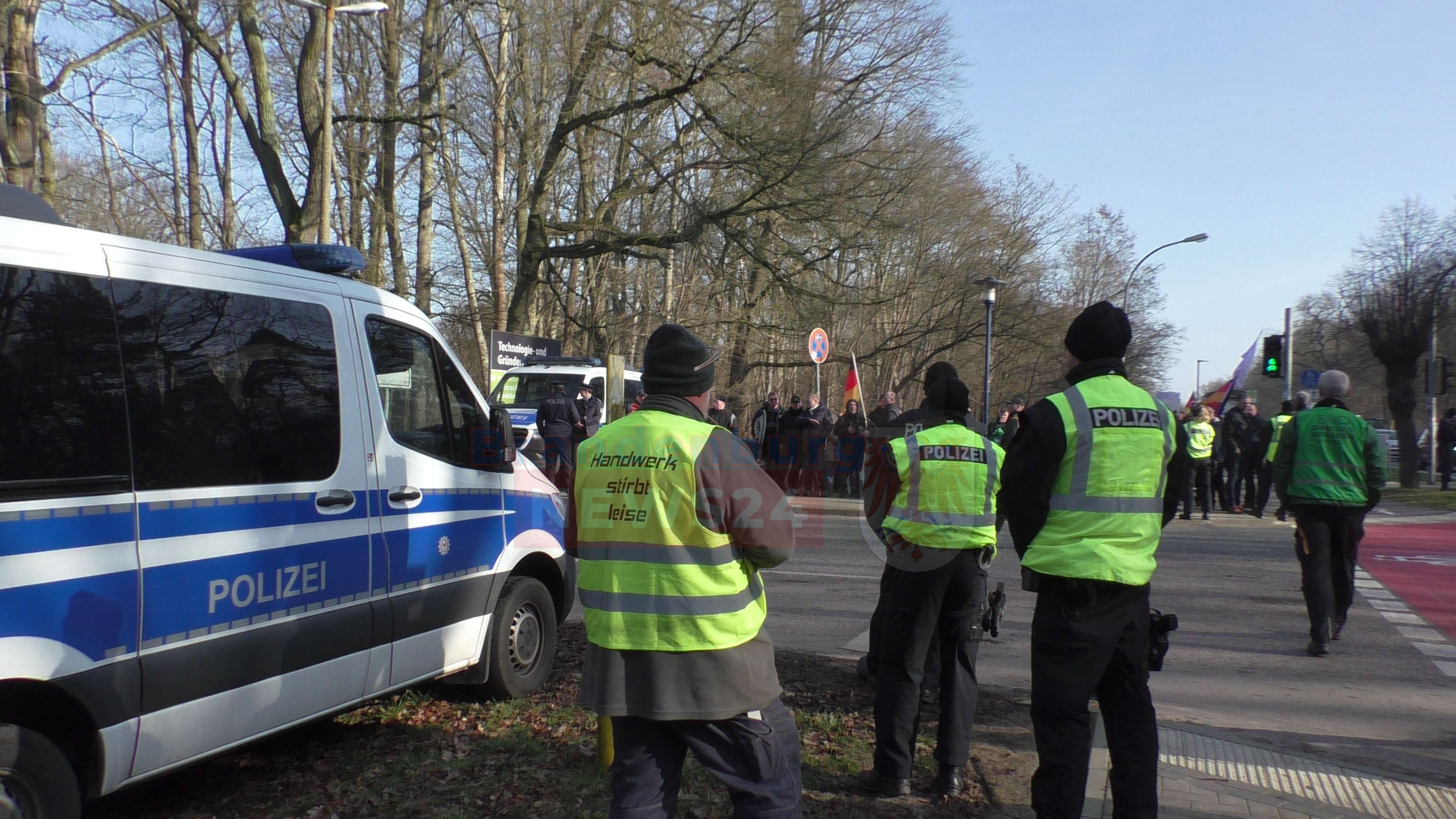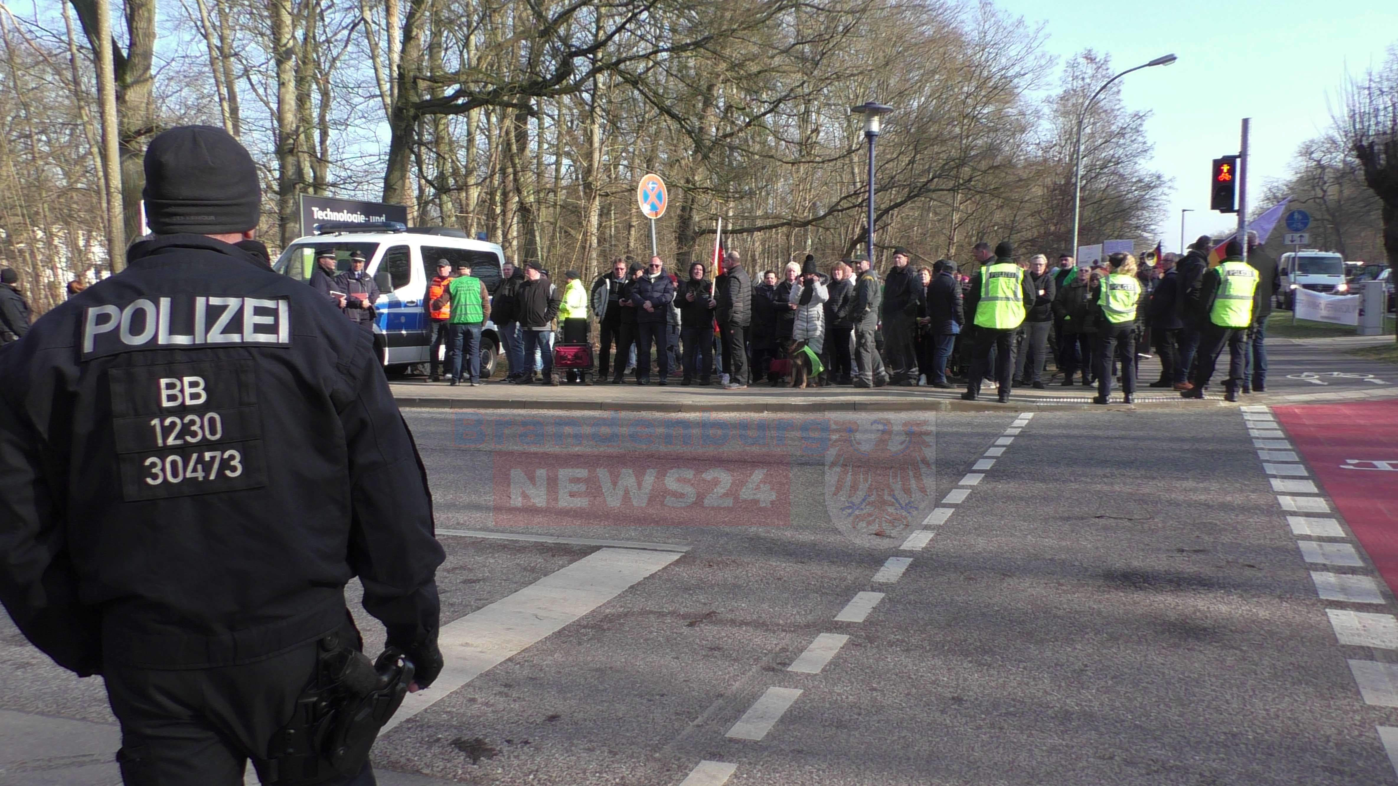 Die Polizei war vor Ort, um die Demonstration abzusichern. Die angereisten Traktoren wurden nicht bis zum OSZ durchgelassen. Die B167 in der Alt-Ruppiner Allee wurde für die Versammlung nicht gesperrt.