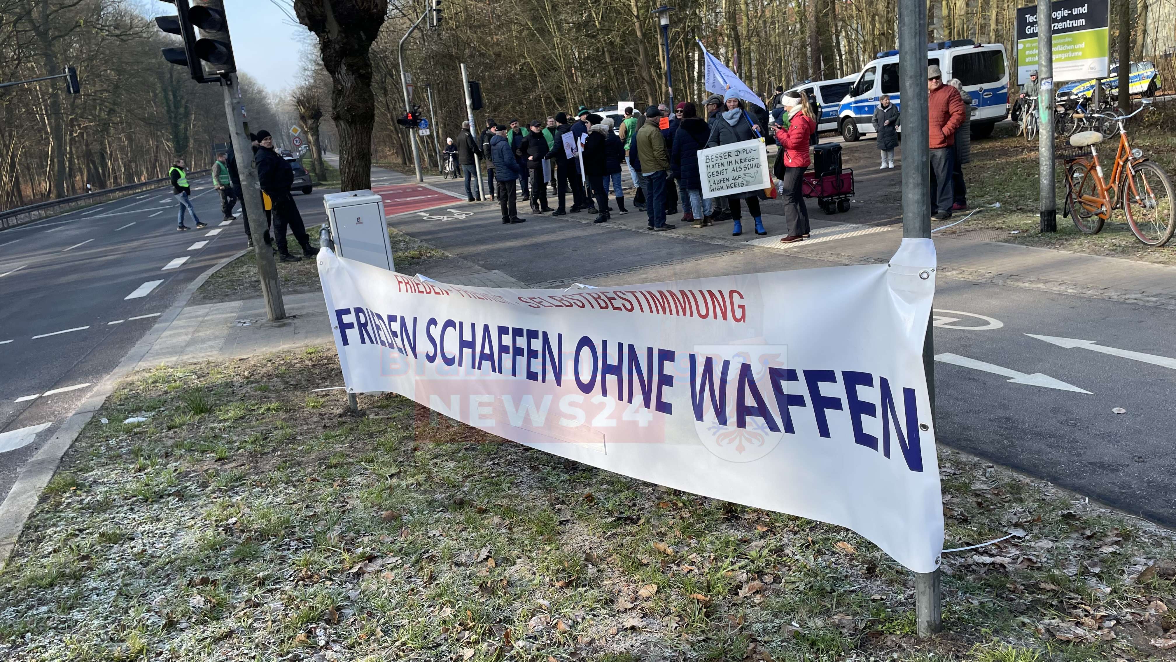 Auf den Bannern waren Sprüche zu lesen, wie zum Beispiel: "Wer Grün wählt, wählt Krieg, Dummheit und Verarmung" oder "Besser Diplomaten im Kriegsgebiet als Schaulaufen auf High Heels". Bei der Ankunft der Grünen Politikerin kamen Spruchparolen wie „Frieden schaffen ohne Waffen“.