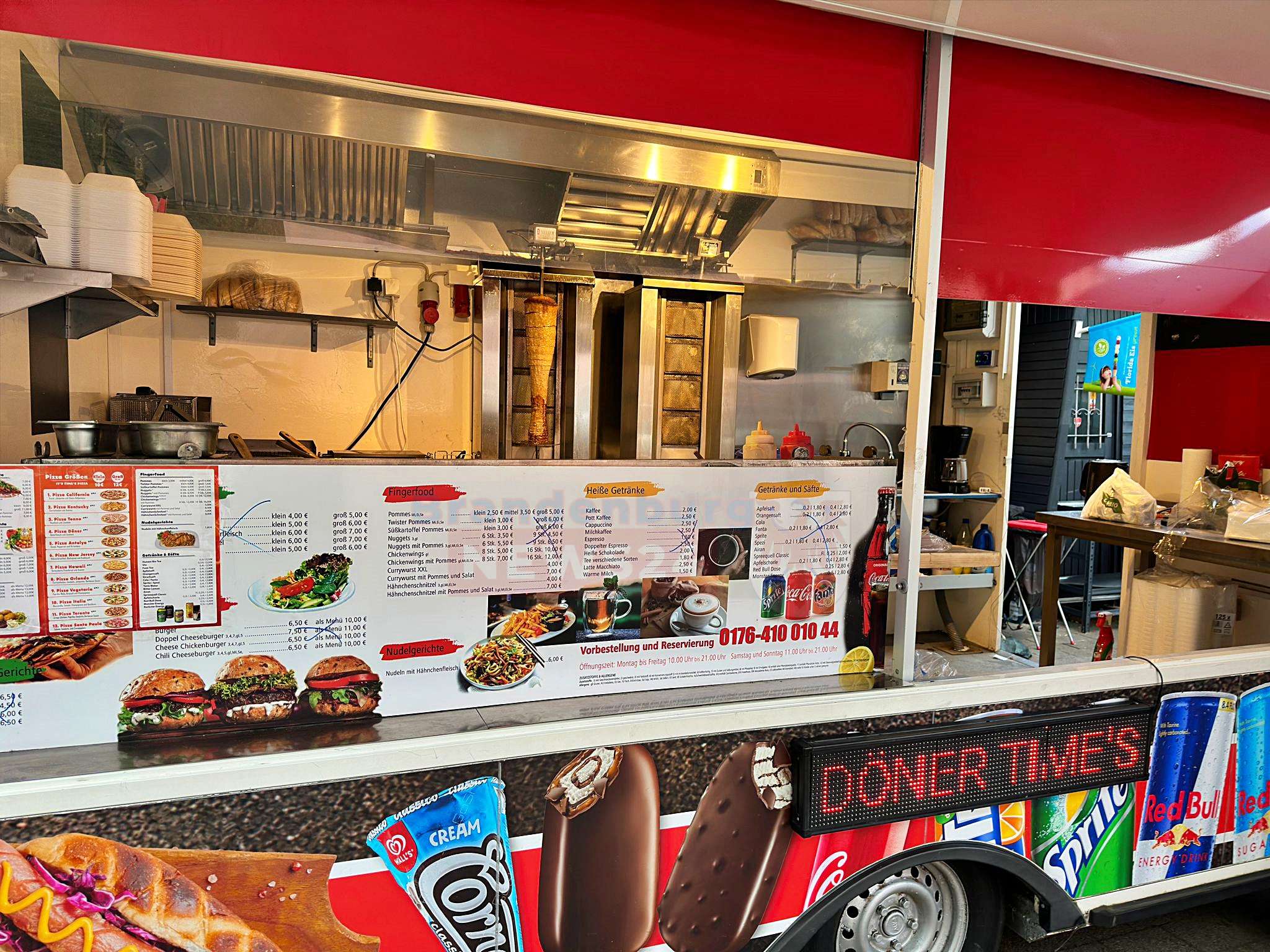 Alt Ruppin: Nur ein Tag nach dem verheerenden Brandanschlag gab es beim Dönerimbiss "Döner Times" in Alt Ruppin eine schnelle Wiedereröffnung wie sich der Besitzer es sich wünschte. Mit einem provisorischen Imbisswagen und unermüdlichem Einsatz überraschte das Team um Inhaber Ali Abbasi seine treue Kundschaft bereits am Samstagnachmittag.