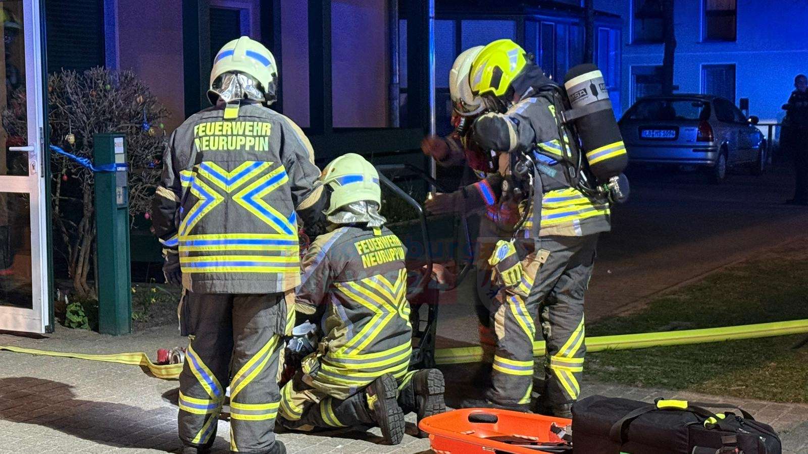 Im Inneren der Wohnung stellten die Feuerwehrleute fest, dass bereits Möbelstücke und Teile des Fußbodens in Flammen standen. Trotz der gefährlichen Situation gelang es den Einsatzkräften der Freiwilligen Feuerwehr Neuruppin zügig, den verletzten Senior aus der brennenden Wohnung zu retten. Er wurde umgehend ins Freie gebracht und dort zur medizinischen Erstversorgung an den bereitstehenden Rettungsdienst übergeben.