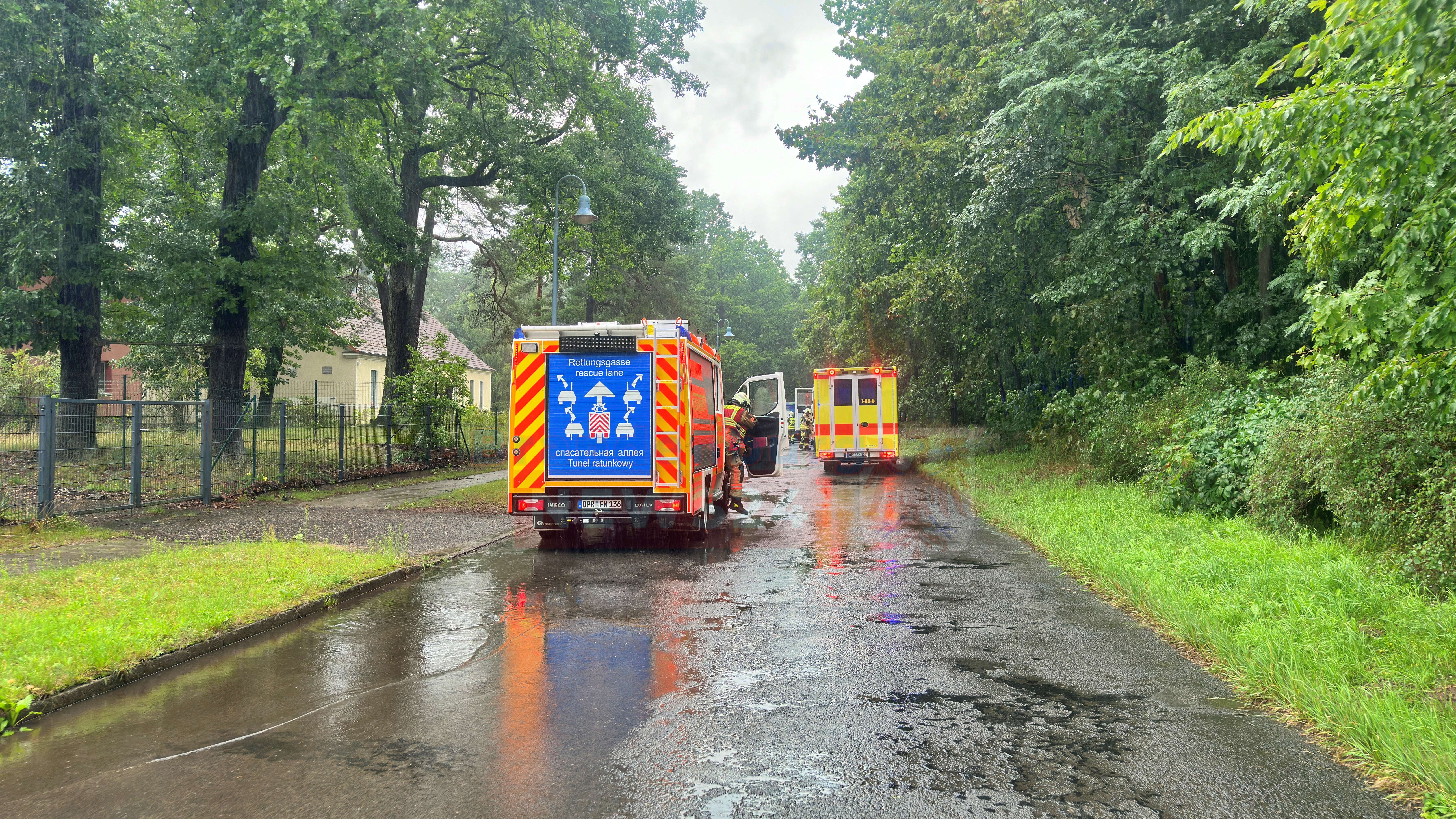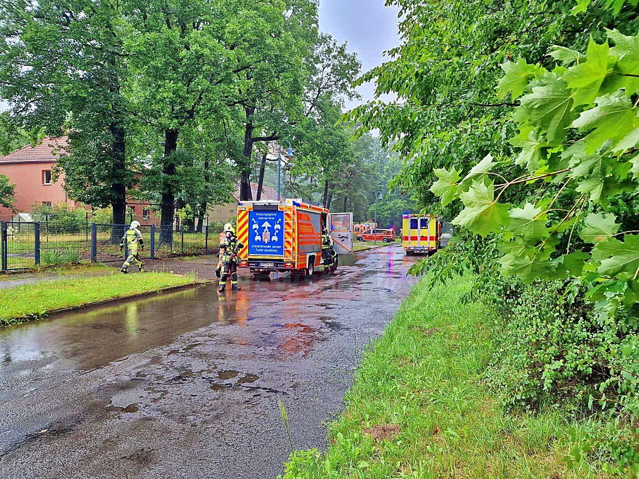 Für einen Teil der Einsatzkräfte war dies bereits der zweite große Einsatz des Tages. Am Morgen waren sie zu einer groß angelegten Übung im Seniorenwohnpark in Radensleben alarmiert worden. Das Szenario: ein Brand in einem stark verrauchten Raum, in dem zwei Menschen vermisst wurden.