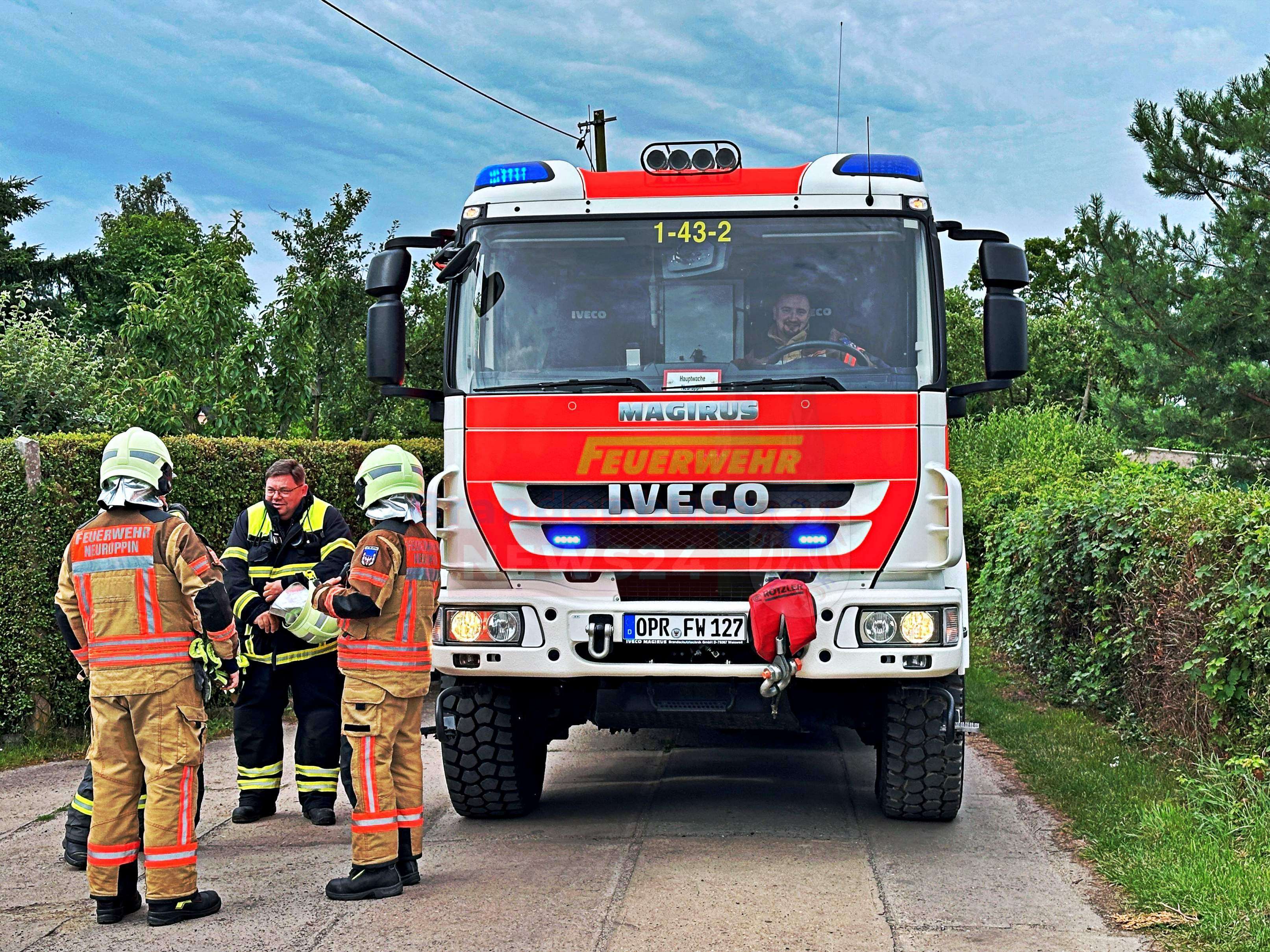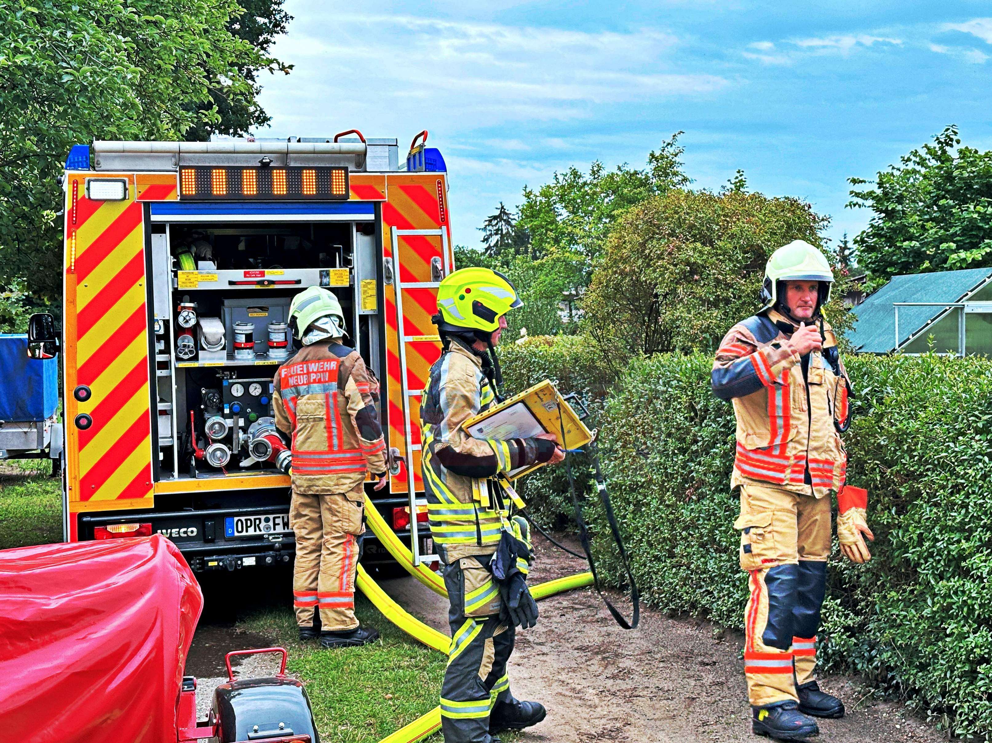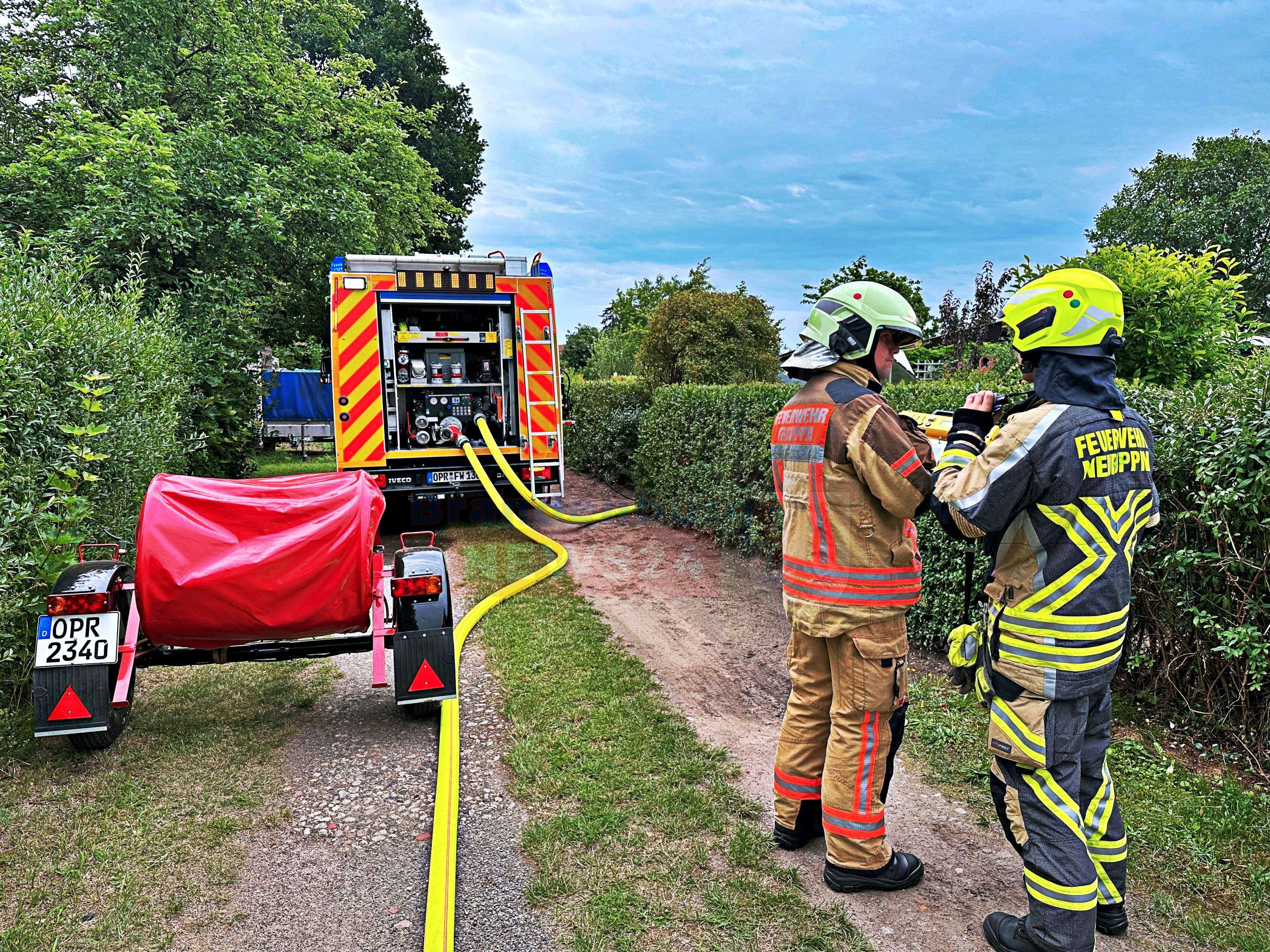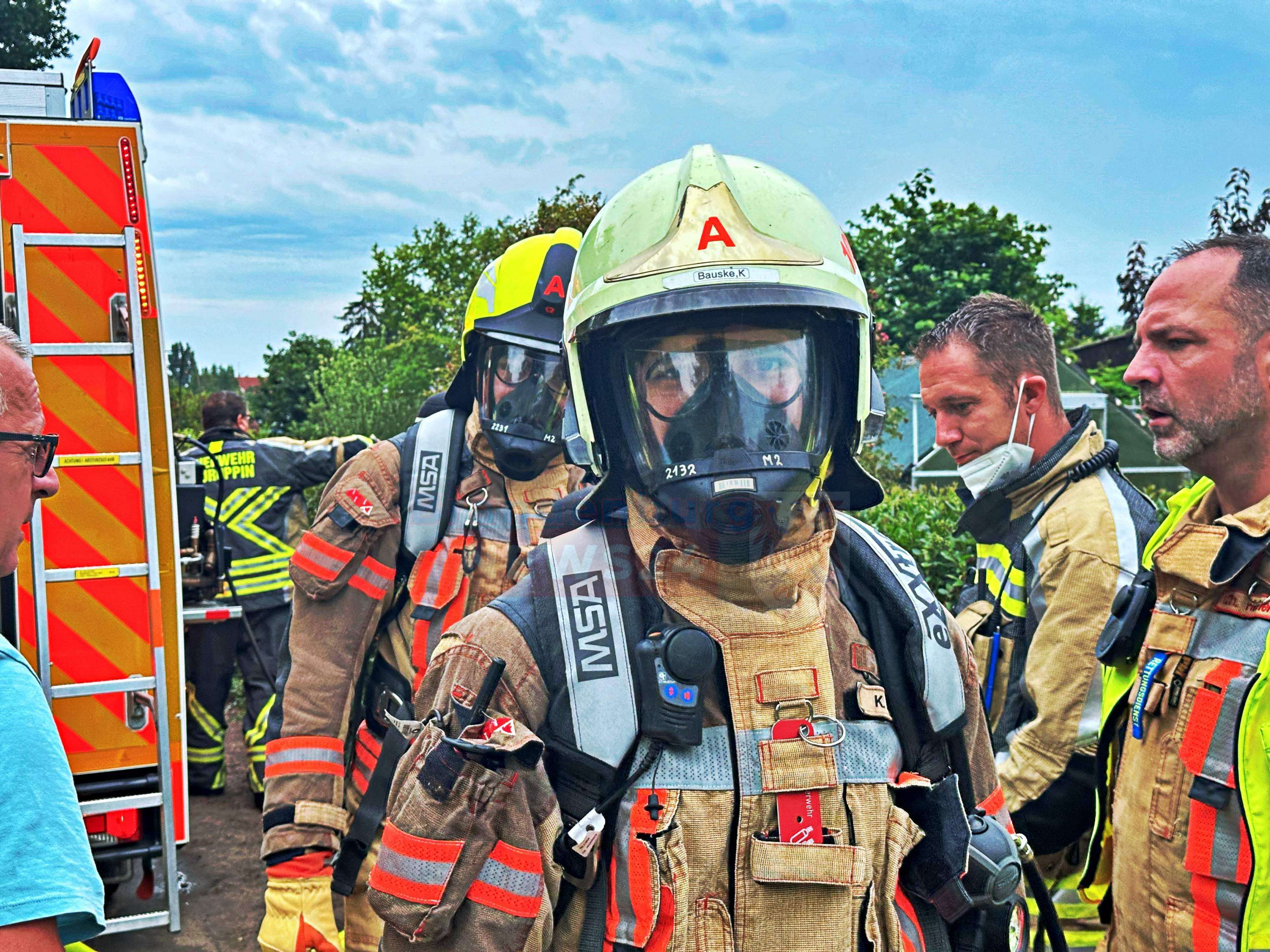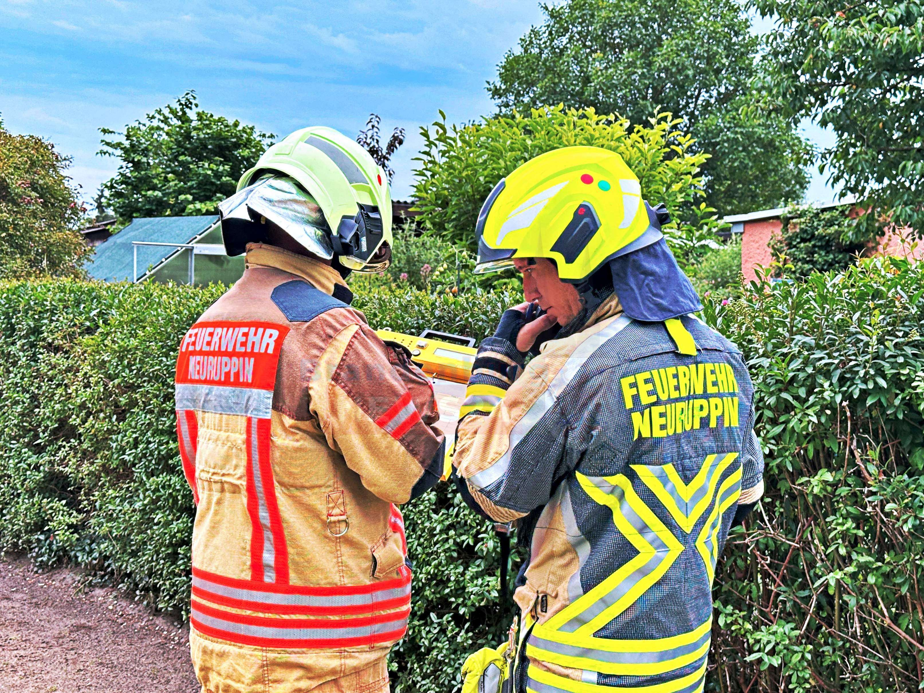 Neuruppin - Am Freitagmorgen gegen 9:15 Uhr wurde die Feuerwehr Neuruppin zu einem Bungalowbrand in die Kleingartensparte Fliederhain in Neuruppin alarmiert.