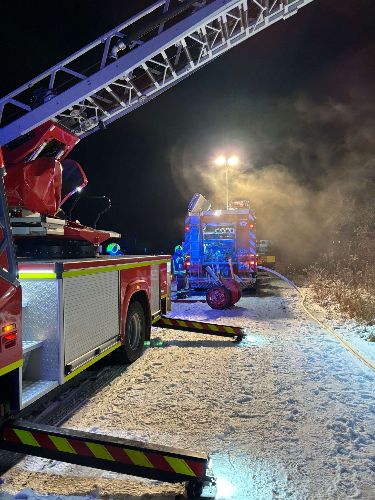 Feuerwehr: 22 Einsatzkräfte mit insgesamt 6 Fahrzeugen (darunter auch eine Drehleiter).