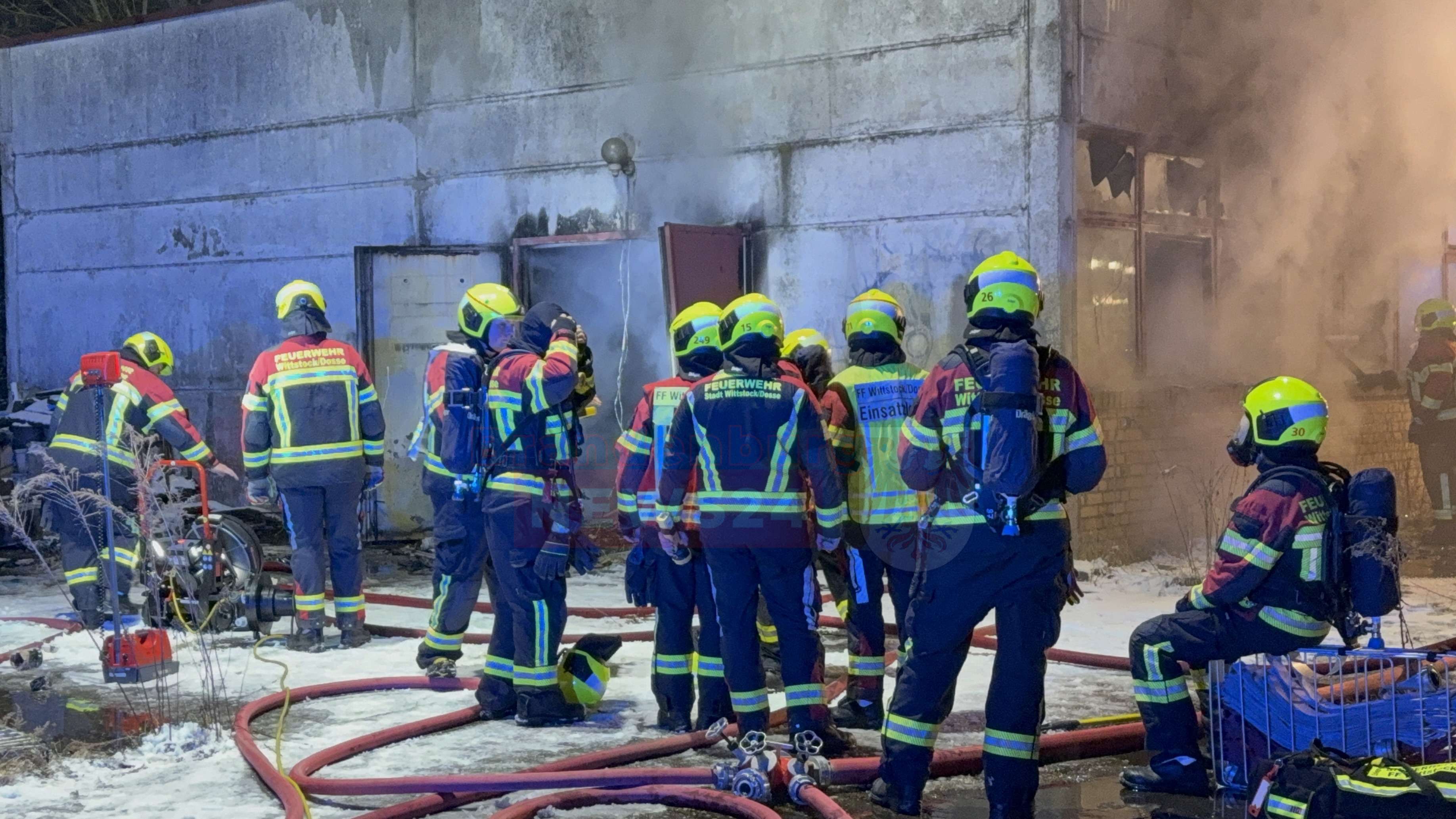 Die Einsatzkräfte gingen umgehend unter schwerem Atemschutz in den Innenangriff vor. Dabei wurden zwei Gasflaschen – eine kleinere sowie eine größere – aus dem brennenden Gebäudeteil geborgen und ins Freie gebracht. Durch die schnelle Sicherung der Druckbehälter konnte eine weitere Gefährdung verhindert werden.