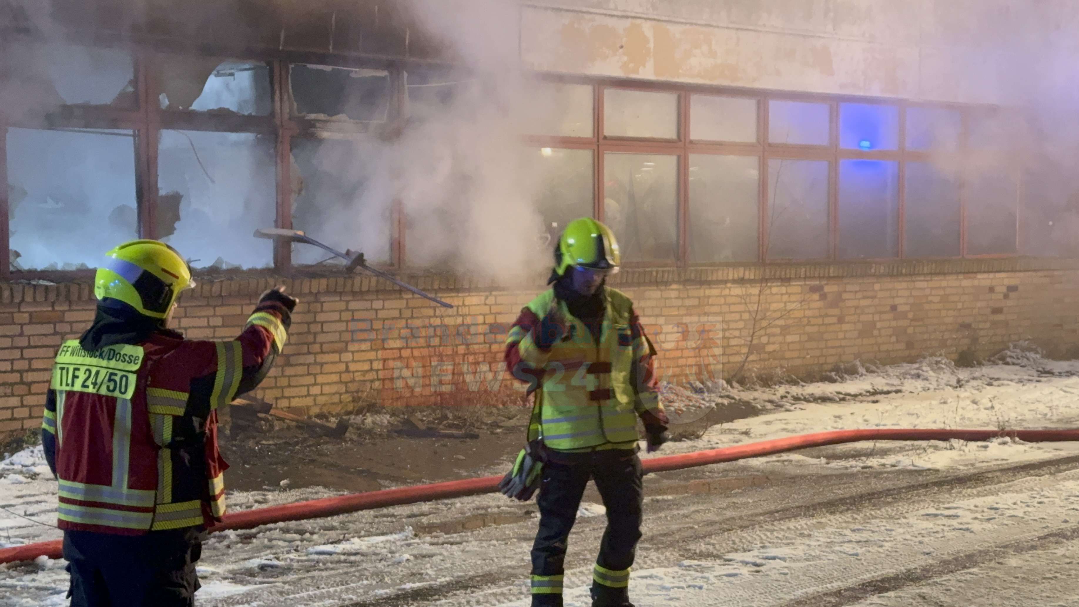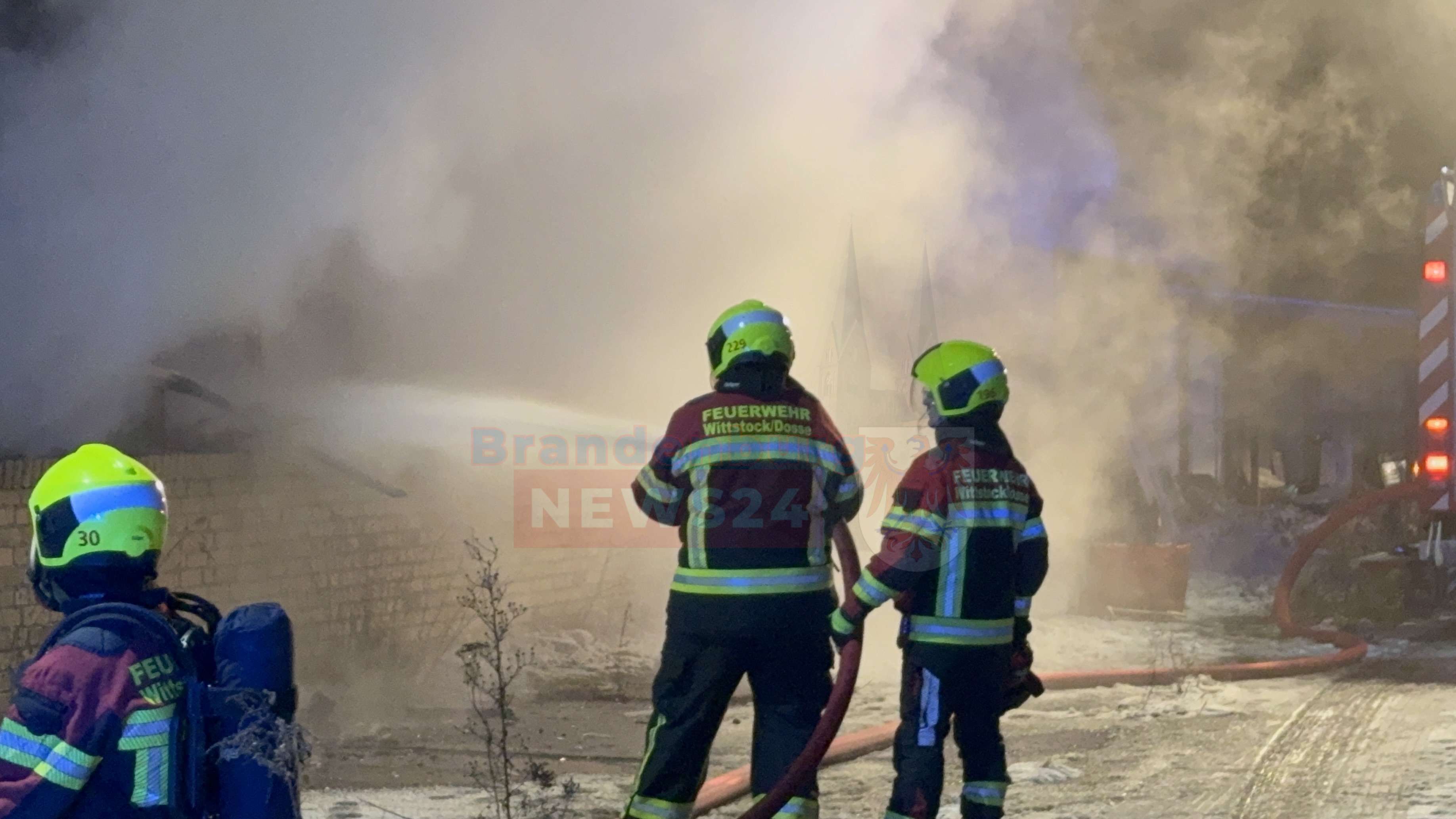Auf dem OTB-Gelände in Wittstock ist es erneut zu einem Brand gekommen. Beim Eintreffen der Feuerwehr stand der vordere Raum des betroffenen Objekts bereits in Vollbrand. Dichter Rauch drang aus dem Gebäude, Flammen schlugen aus dem Eingangsbereich.
