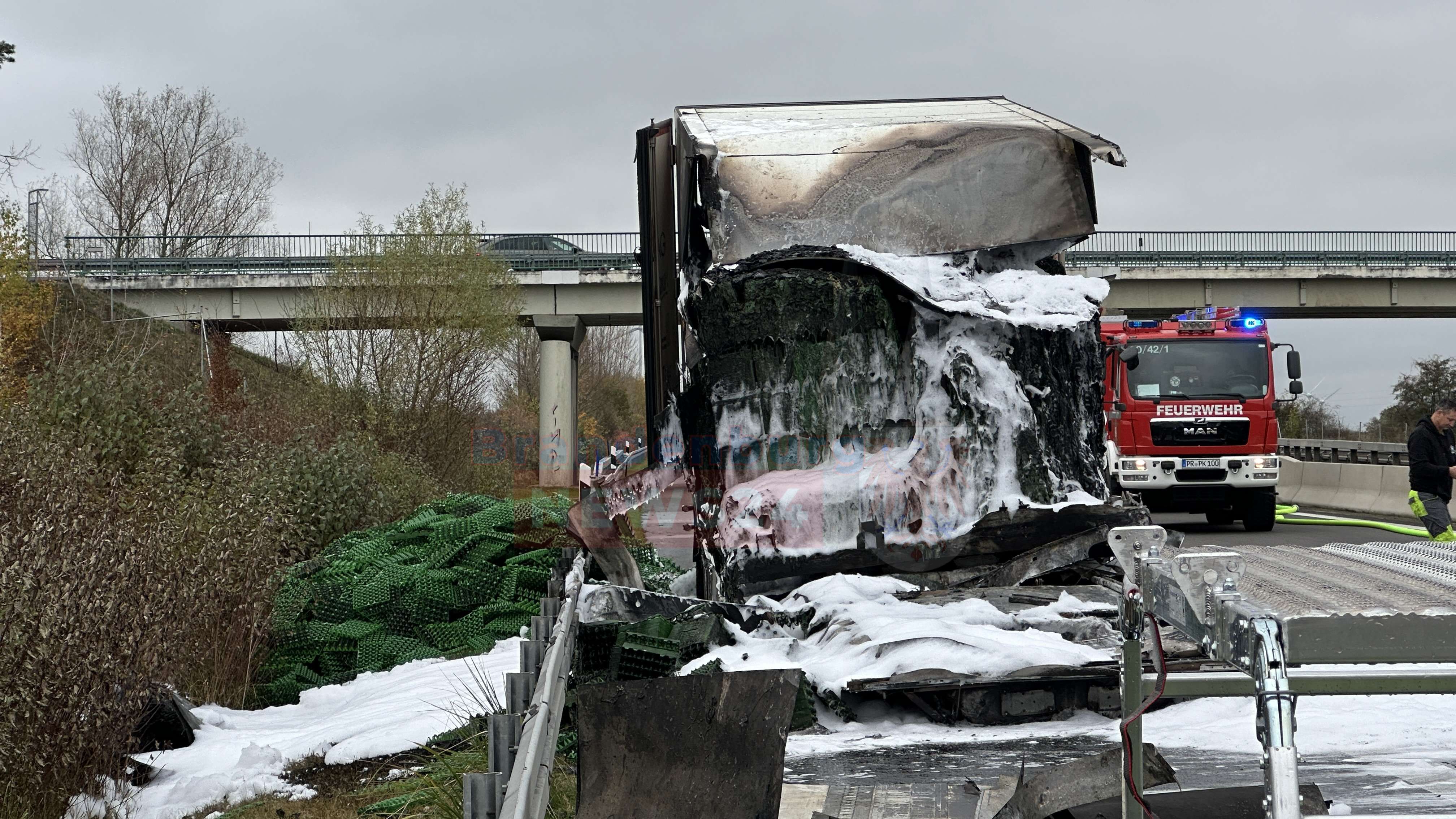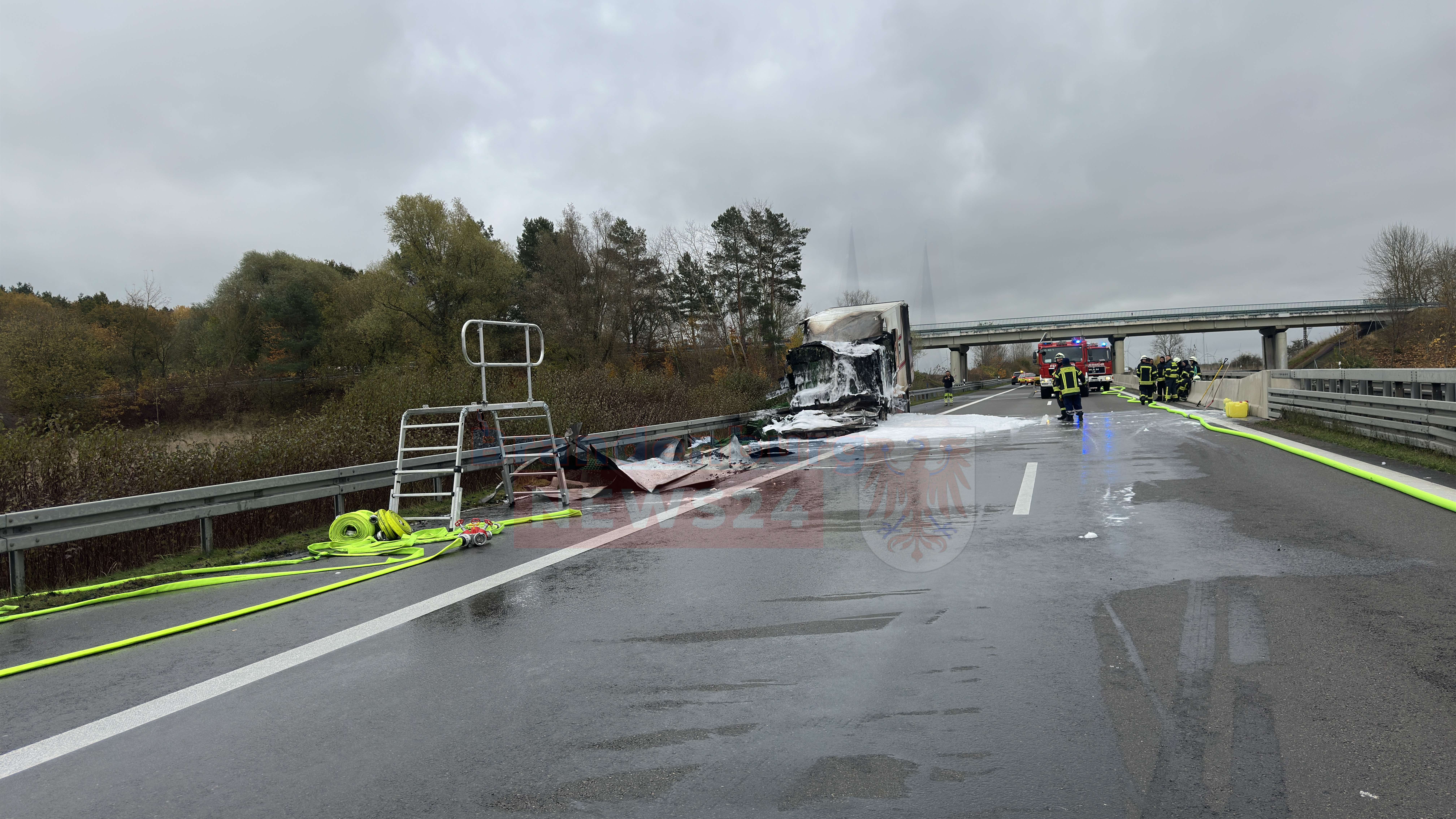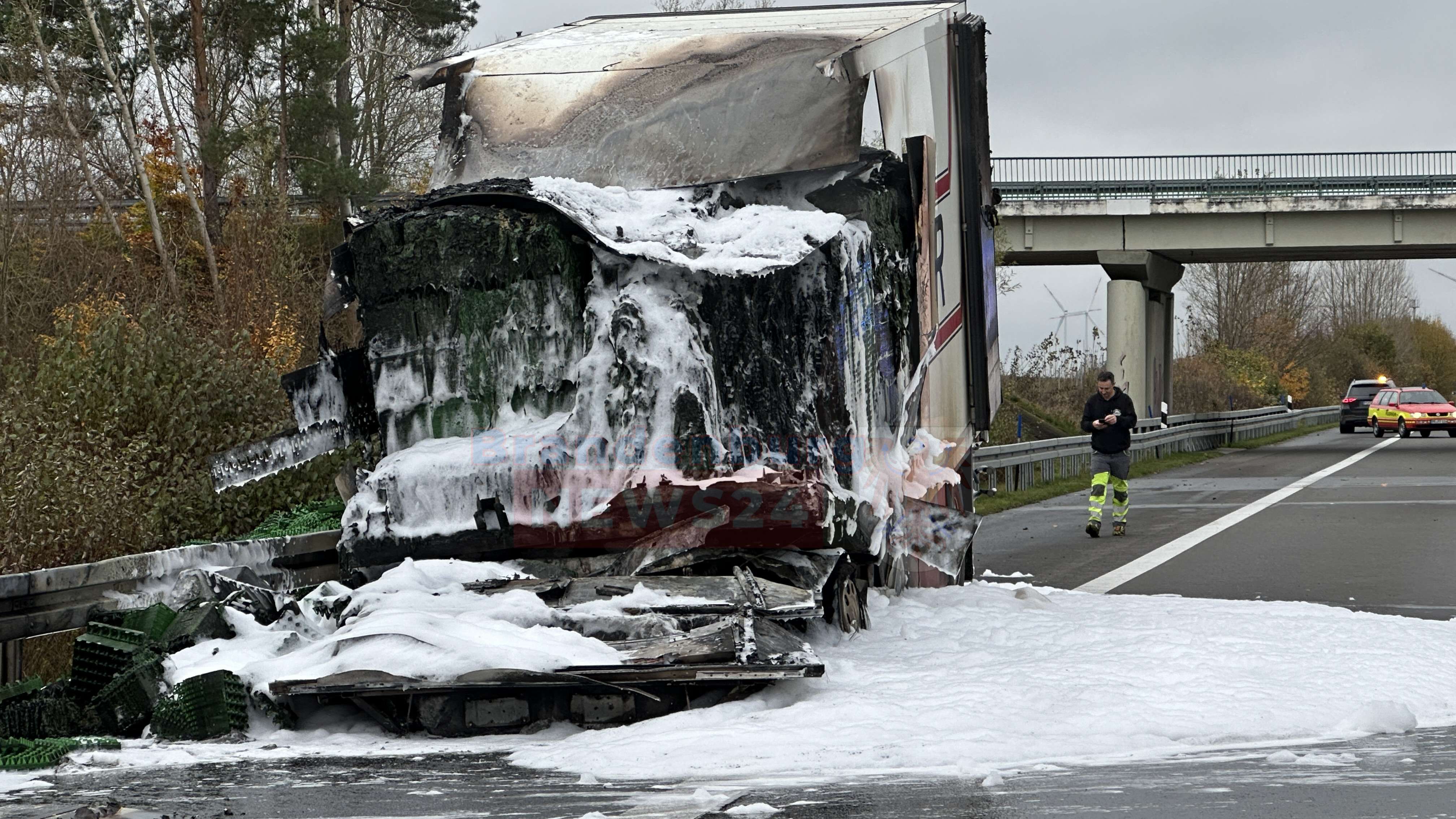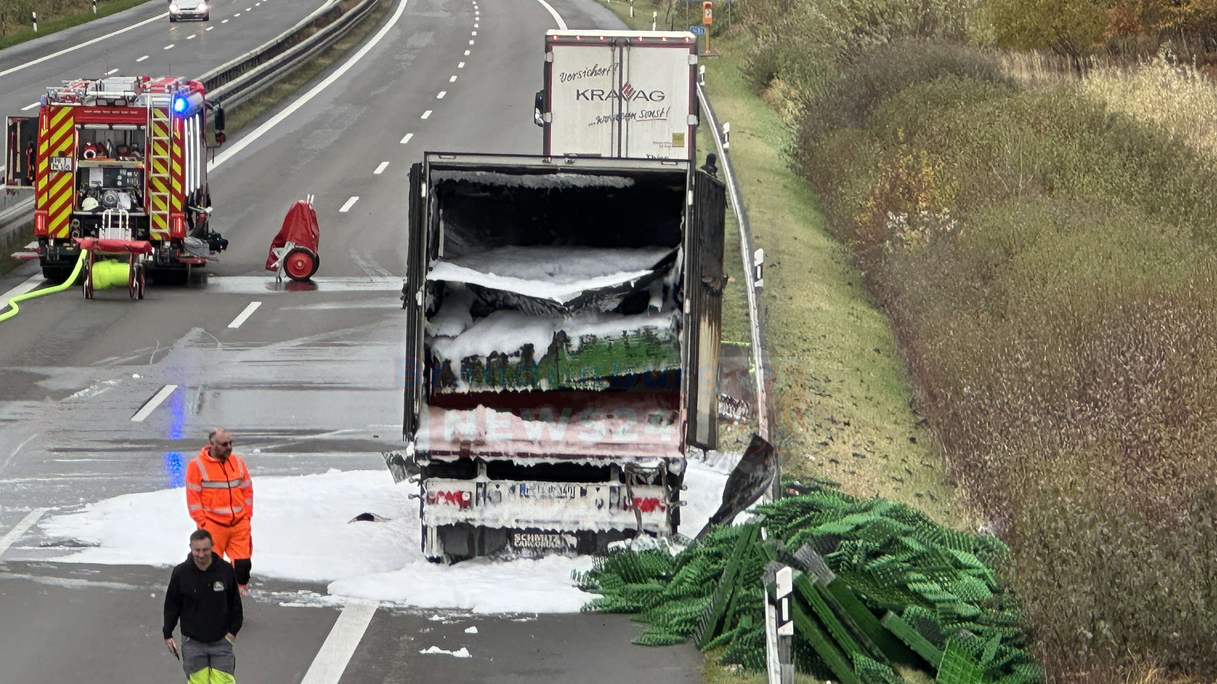 Der 53-jährige Fahrzeugführer deutscher Nationalität reagierte geistesgegenwärtig und koppelte die Zugmaschine vom Anhänger ab, wodurch diese vor den Flammen bewahrt werden konnte. Bei Eintreffen der Feuerwehrkräfte stand der Anhänger bereits in Vollbrand.