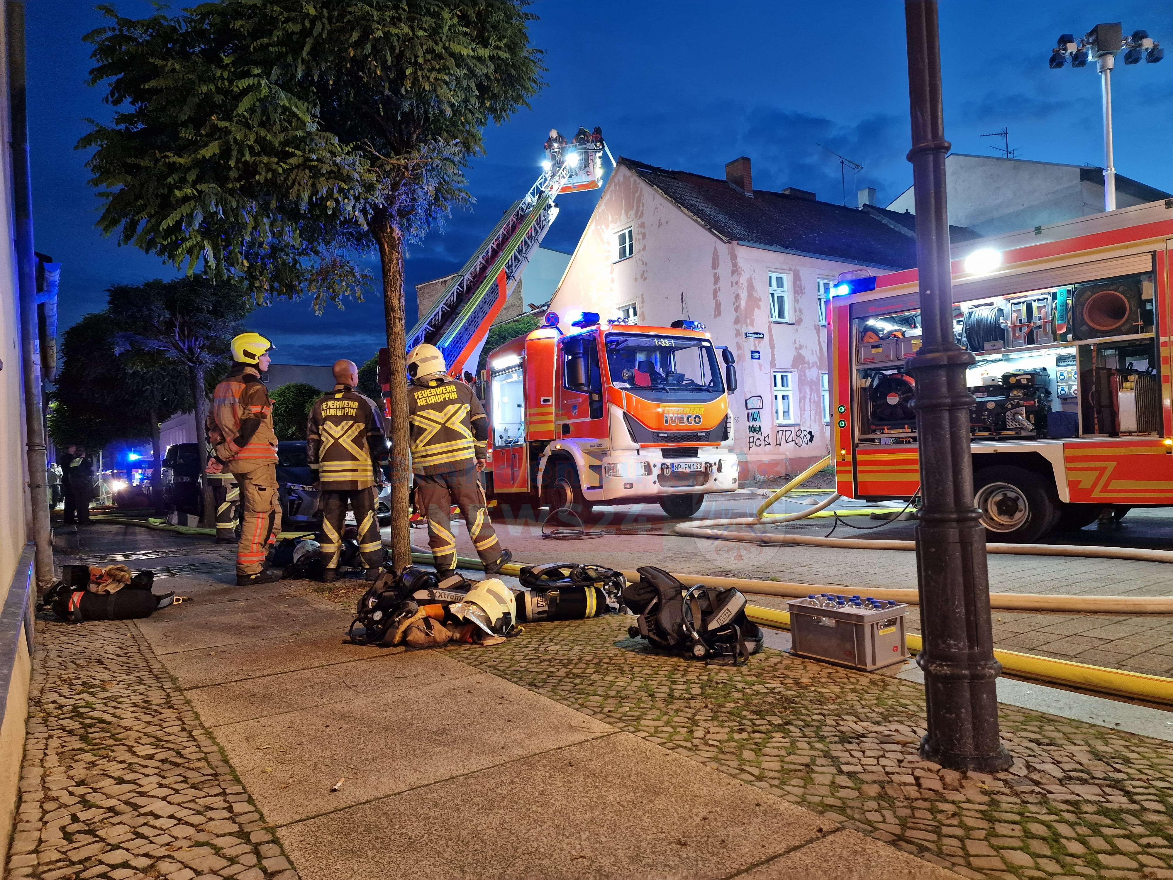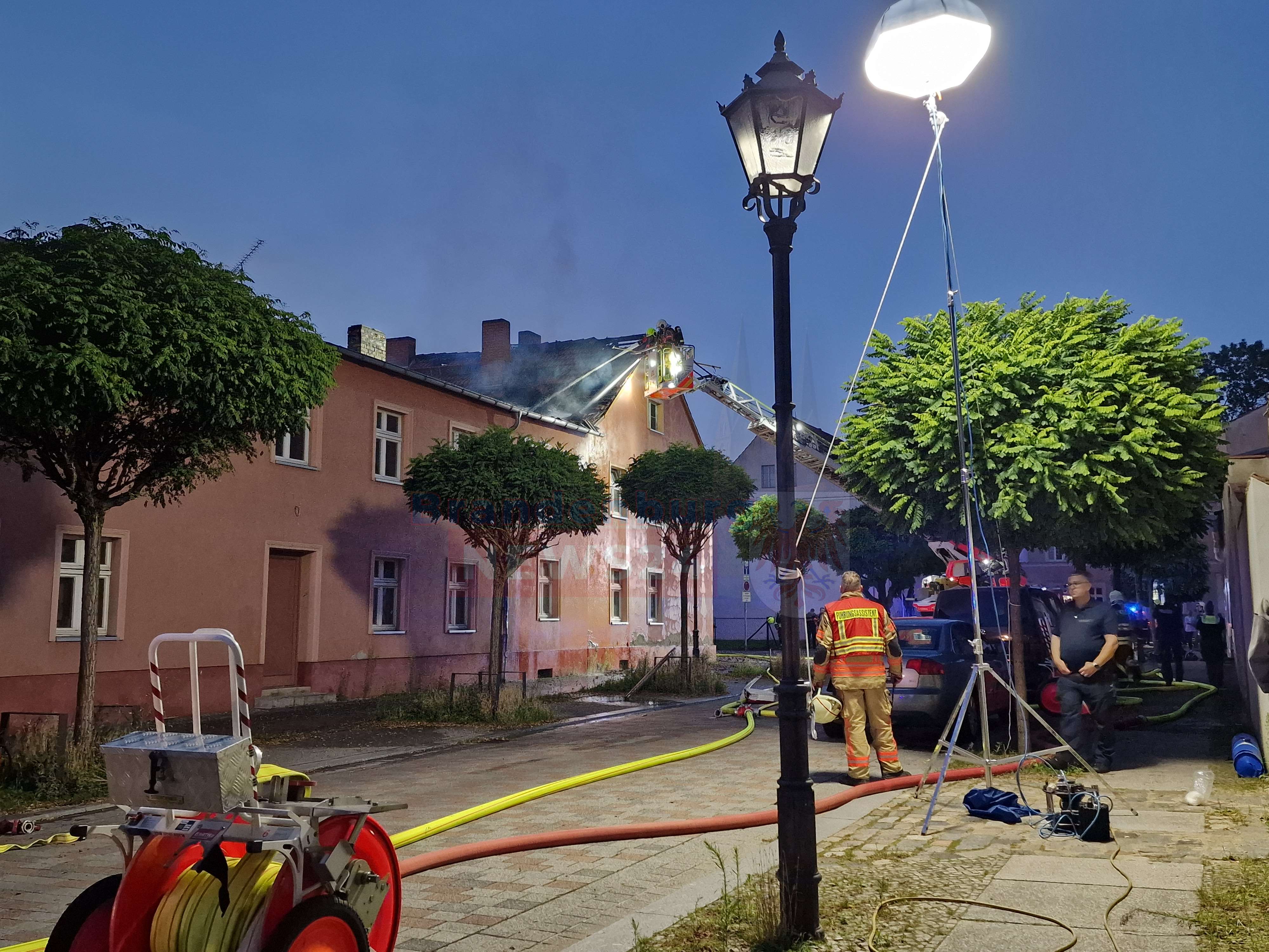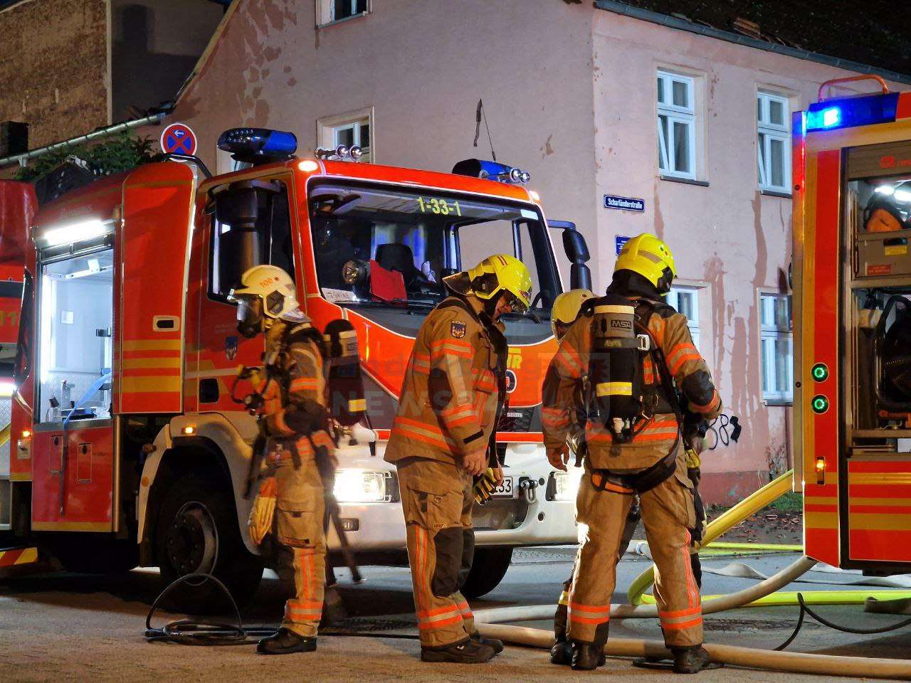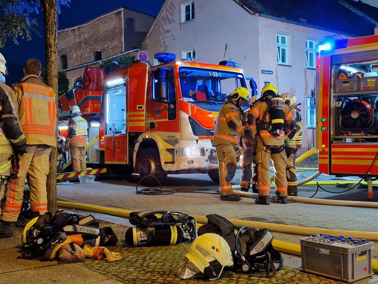 Neuruppin – Ein Großbrand in einem Eckwohnhaus in der August-Bebel-Straße hat die Neuruppiner Feuerwehr die ganze Nacht zum Sonntag in Atem gehalten. Erst um 01:45 Uhr konnte "Feuer aus!" gemeldet werden. Die Löscharbeiten gestalteten sich extrem schwierig, da das Gebäude einsturzgefährdet war. Für die Bewohner hat die Nacht dramatische Folgen: Ihre Wohnungen sind nach dem Brand unbewohnbar.
