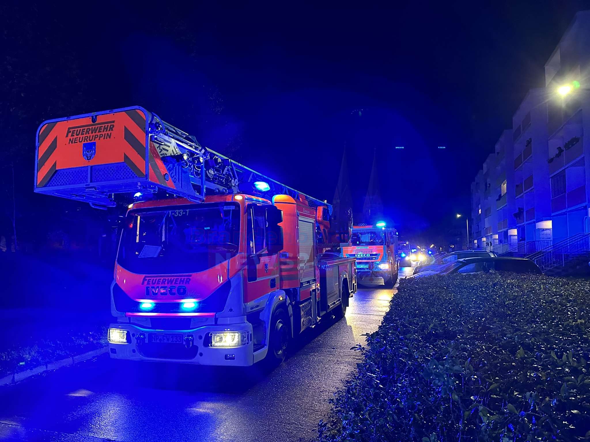 Neuruppin (Ostprignitz-Ruppin). Am Samstagabend gegen 20 Uhr rückten die Feuerwehren aus Neuruppin und Bechlin zu einem vermeintlichen Wohnungsbrand in der Rudolf-Wendt-Straße aus. Eine aufmerksame Nachbarin hatte Rauch vom Balkon eines Wohnhauses bemerkt und alarmierte umgehend die Einsatzkräfte.