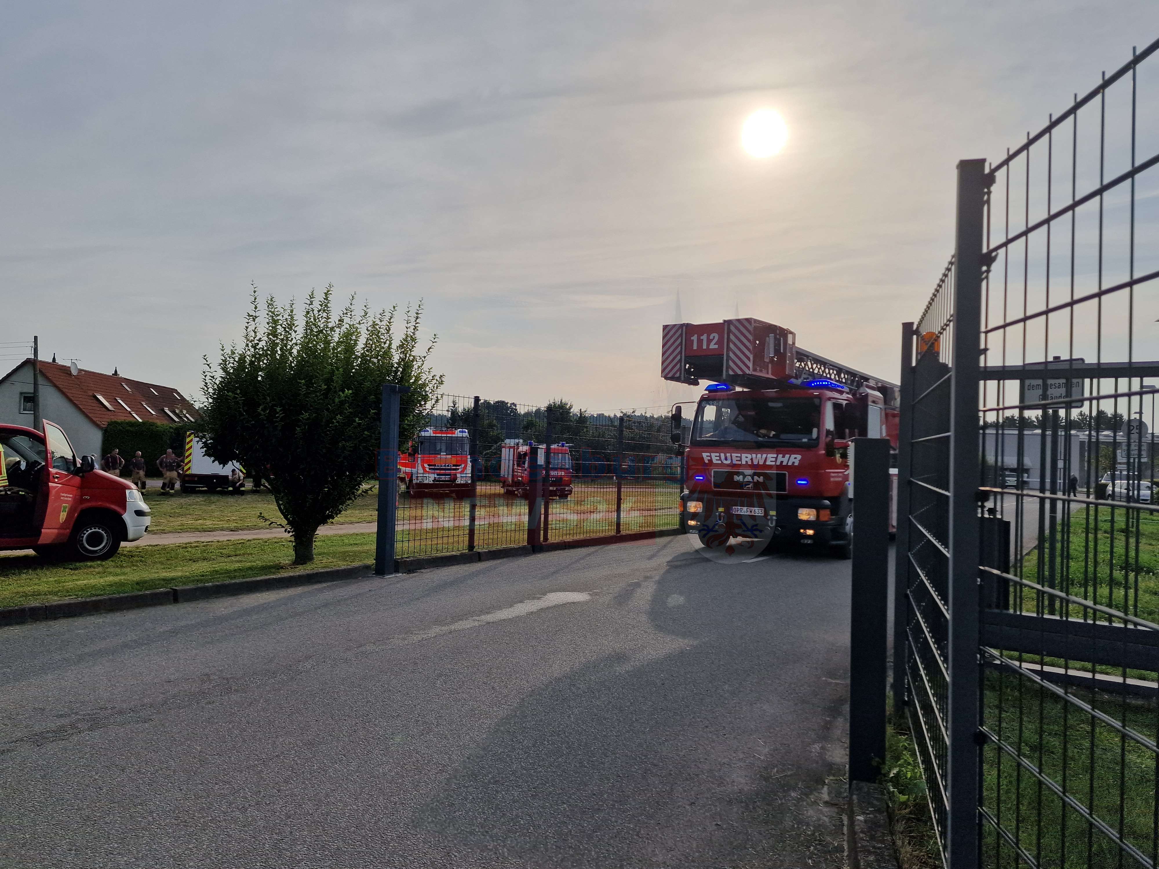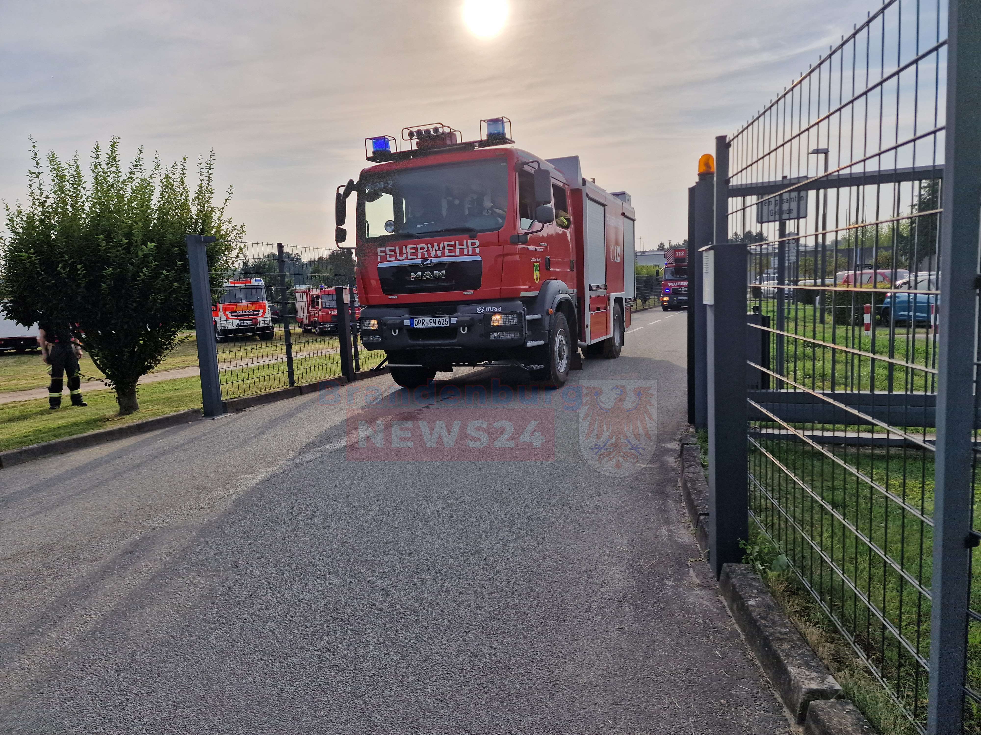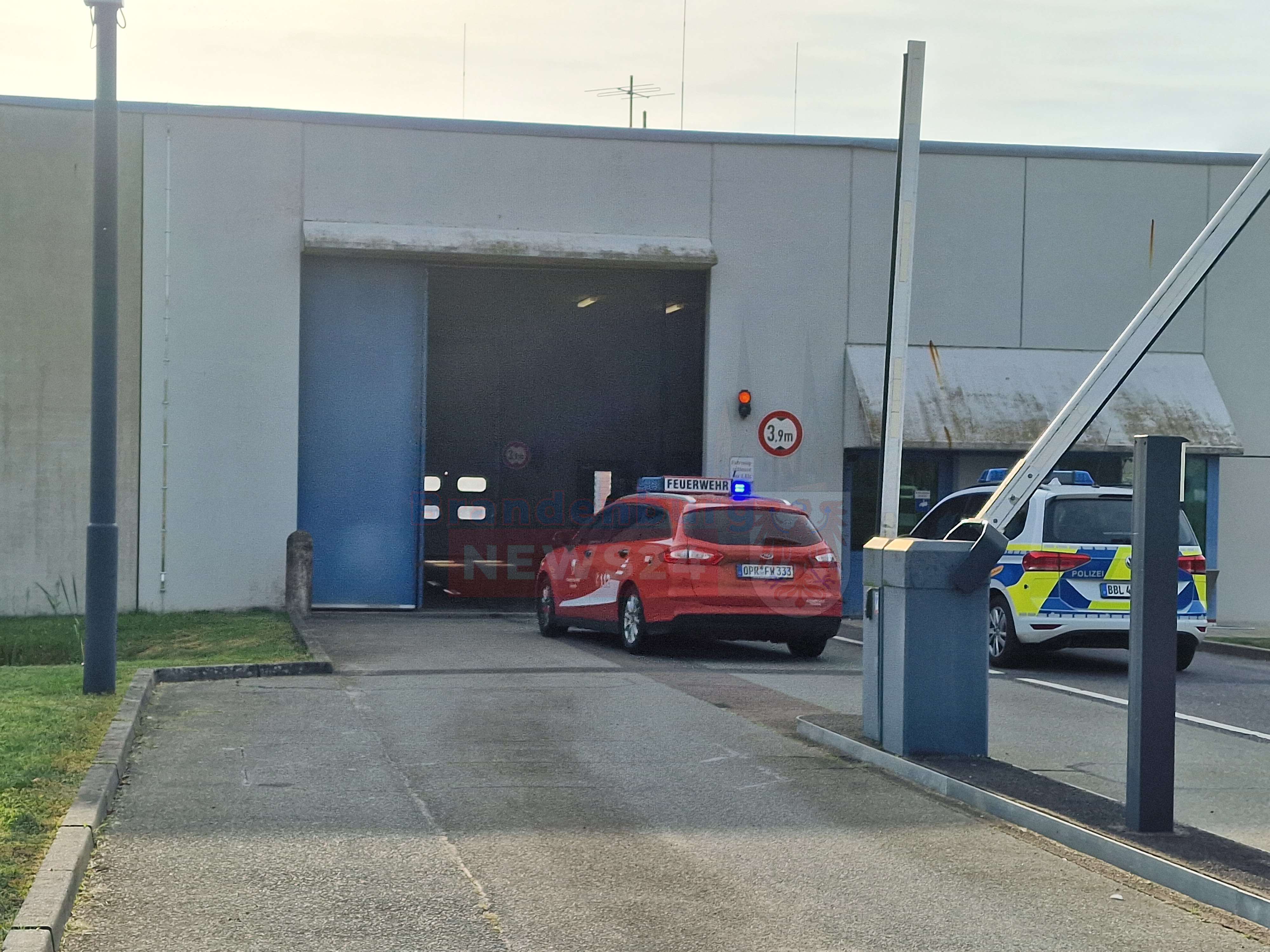 Durch das schnelle Eingreifen der Mitarbeiter bestand die Aufgabe der Feuerwehr nur noch darin, das Gebäude zu belüften sowie das Brandgut zu kühlen und zu kontrollieren. Aufgrund der besonderen Sicherheitslage löste die Leitstelle in Potsdam Großalarm aus. Einsatzkräfte der Feuerwehren Neuruppin, Lindow und Fehrbellin waren mit insgesamt 21 Fahrzeugen vor Ort.
