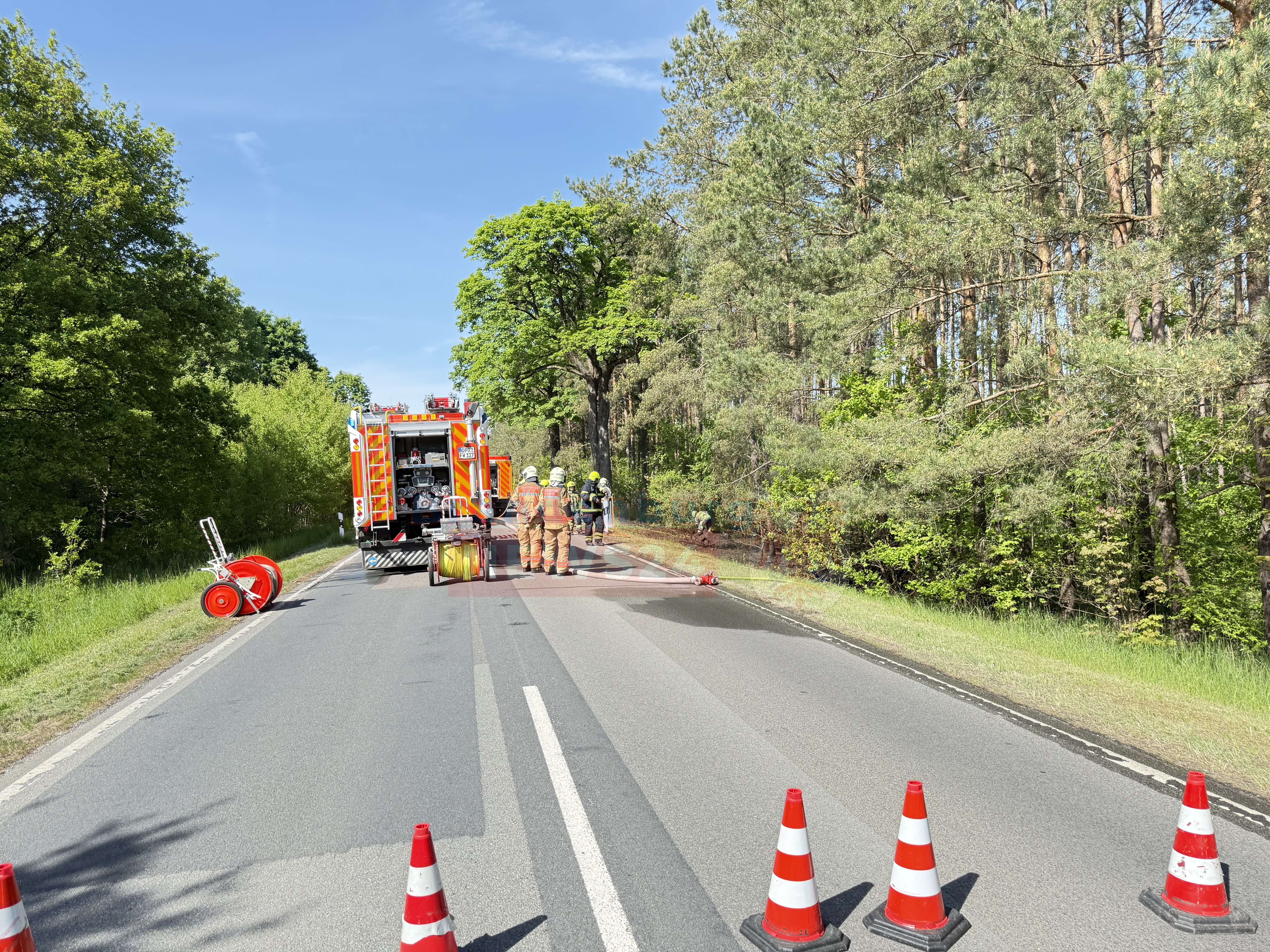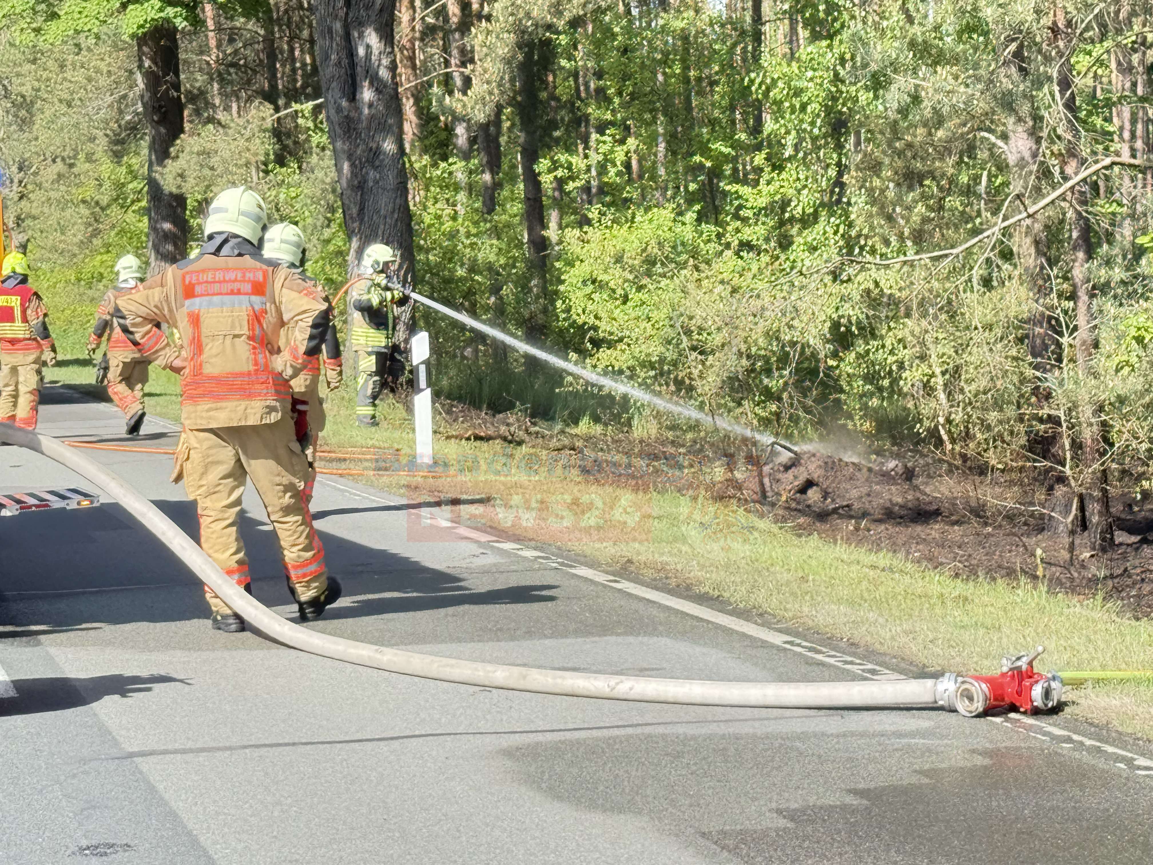 Mithilfe von zwei C-Rohren gelang es den Einsatzkräften, die Flammen rasch unter Kontrolle zu bringen und ein weiteres Ausbreiten des Brandes zu verhindern. Während der Löscharbeiten musste die L16 zwischen Neuruppin und Kusterspring vollständig gesperrt werden, was zu Verkehrsbehinderungen führte.