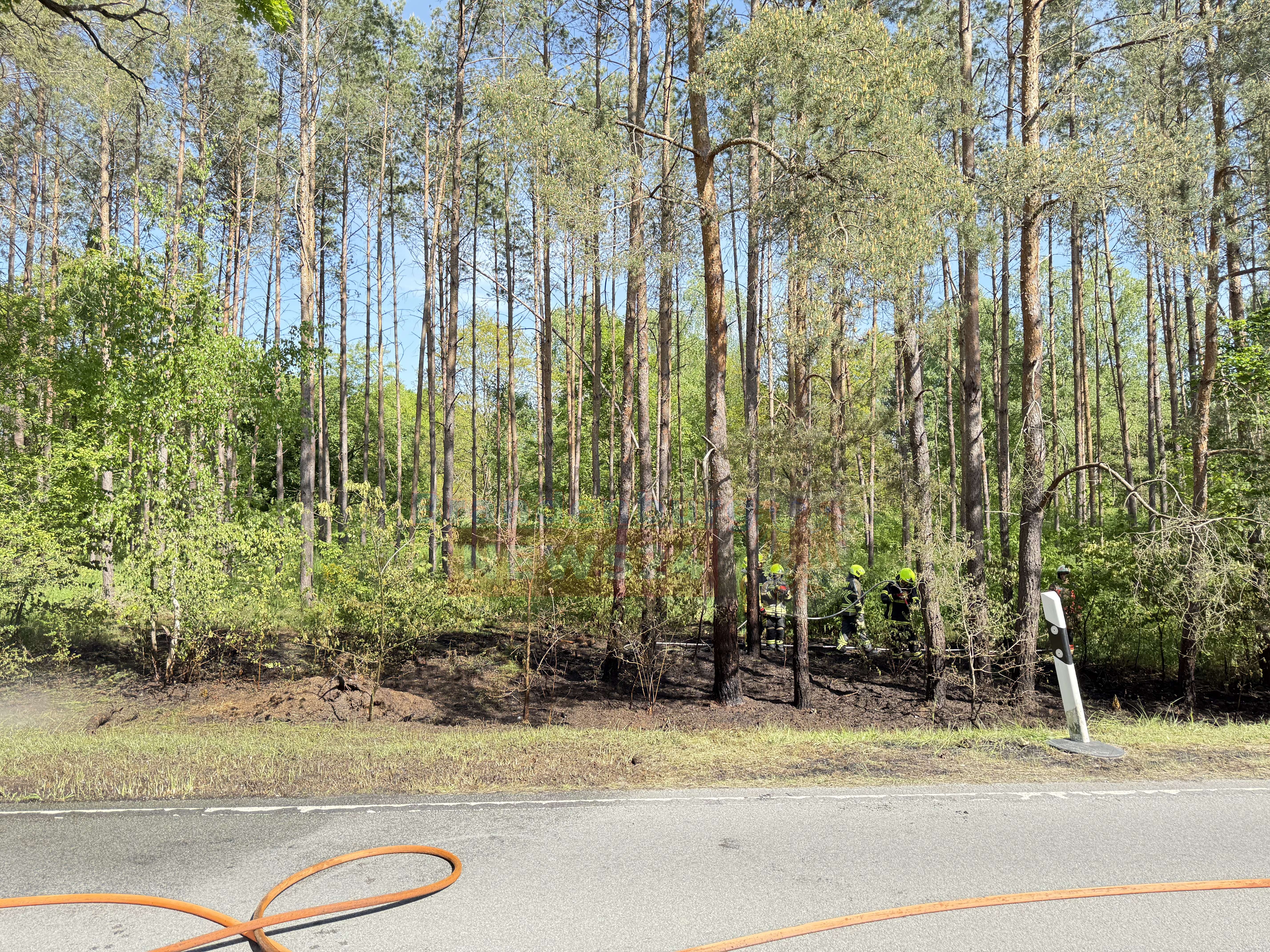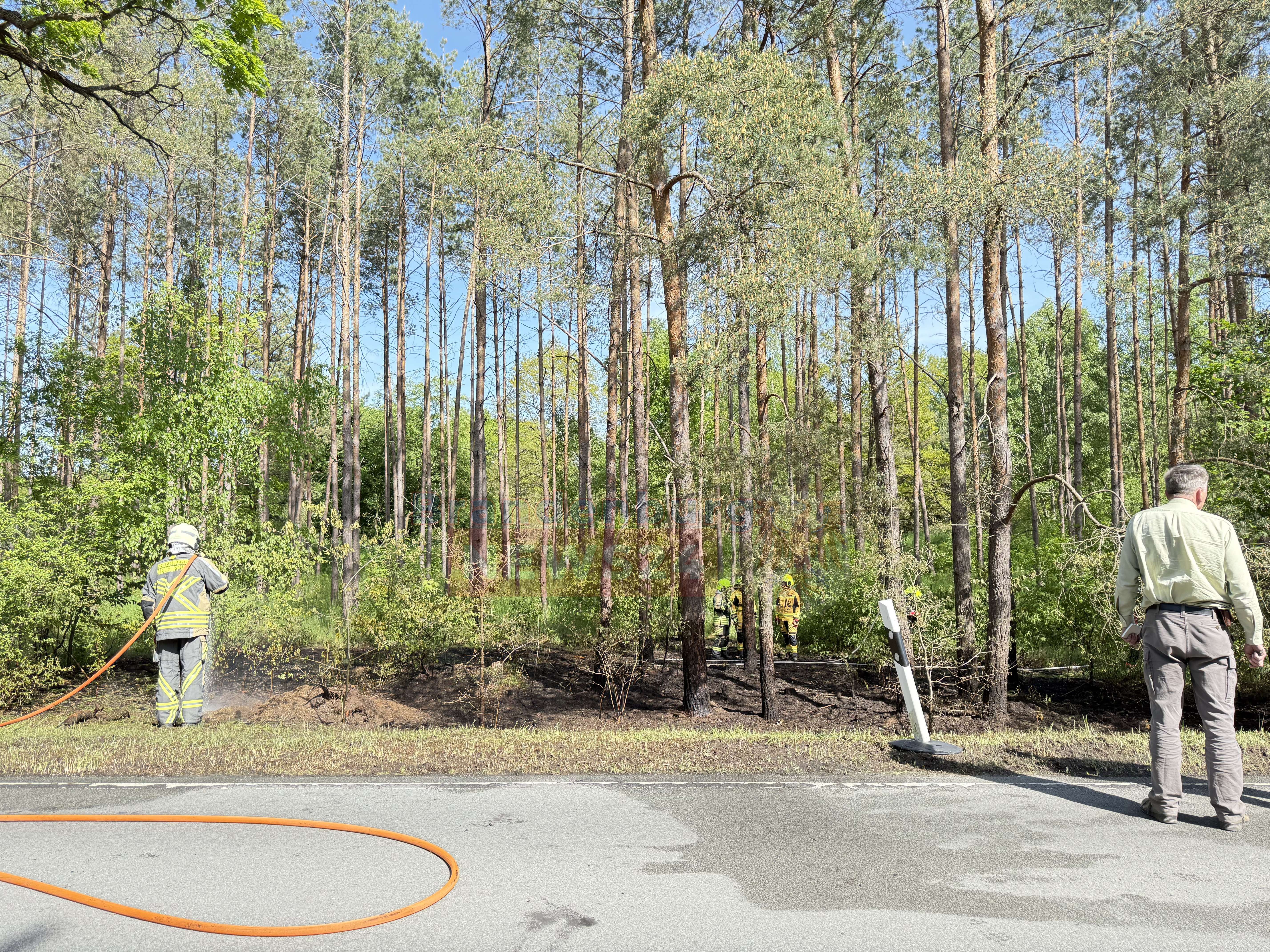 Auf einer Fläche von rund 250 Quadratmetern war aus bislang ungeklärter Ursache Waldboden in Brand geraten. Die Feuerwehrleute rückten mit vier Fahrzeugen und 20 Einsatzkräften aus, um das Feuer zu bekämpfen.