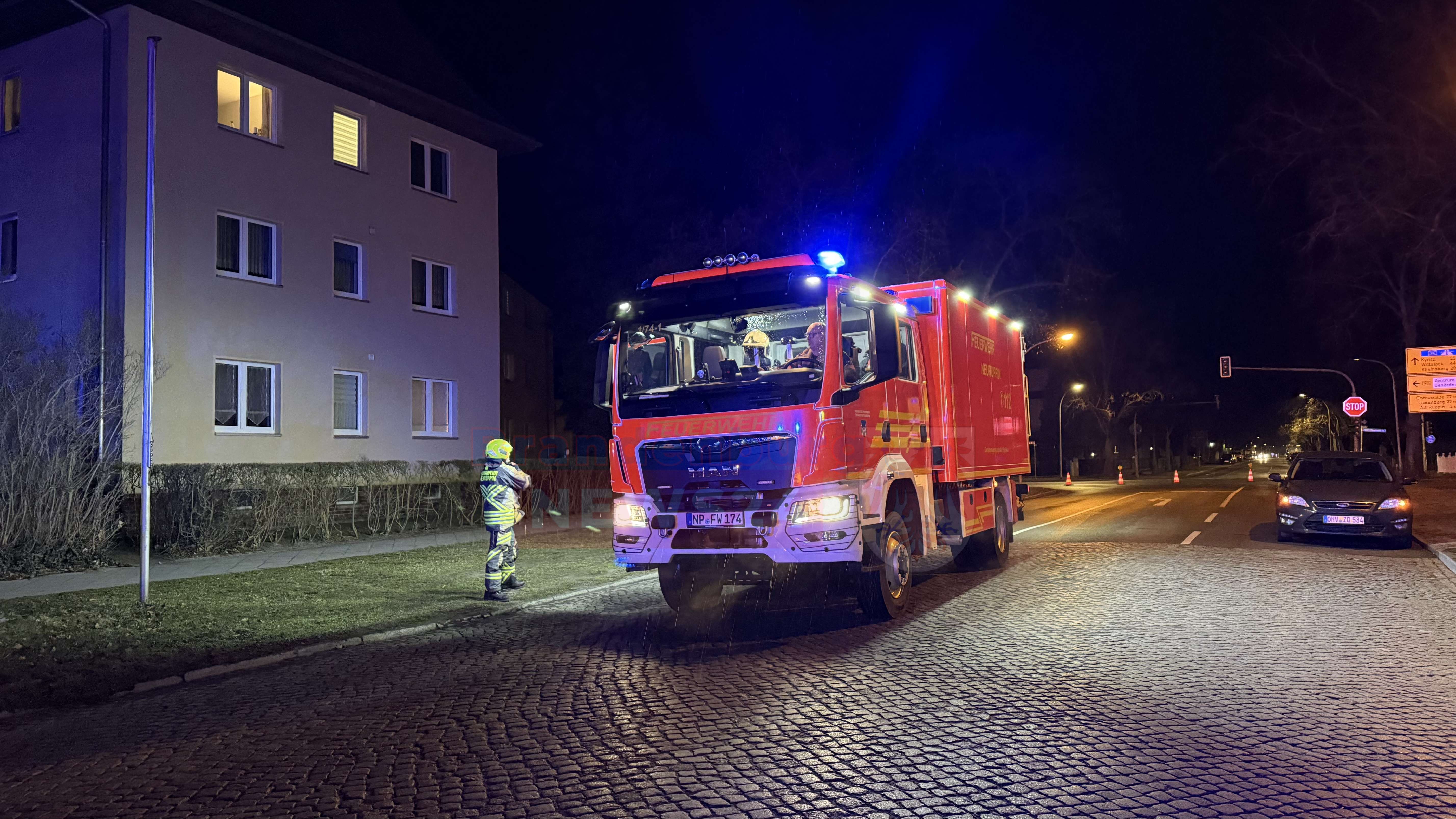 Neuruppin – Ein gemeldeter Gebäudebrand hat am Samstagabend für einen Feuerwehreinsatz der Neuruppiner Feuerwehr gesorgt. Gegen 19:15 Uhr wurden die Einsatzkräfte zu einem brennenden Autohaus in der Wittstocker Allee alarmiert. Vor Ort konnte glücklicherweise schnell Entwarnung gegeben werden: Es brannte nicht das Gebäude selbst, sondern ein Fahrzeug im Innenhof des Betriebes.