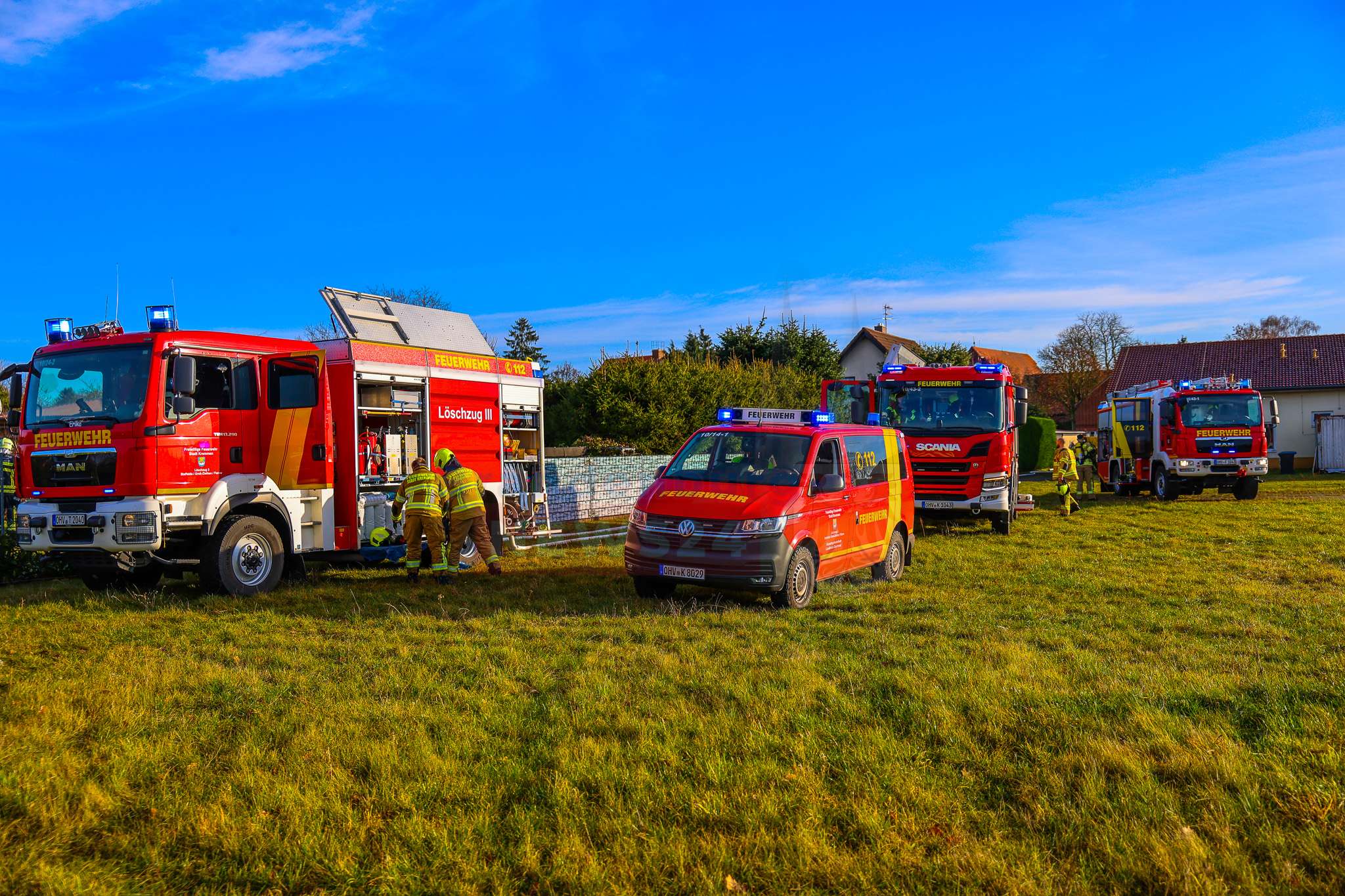 Bereits auf der Anfahrt zeigte sich den Kräften, dass der gemeldete Schuppen in voller Ausdehnung brannte. Der rund 30 Quadratmeter große Gartenschuppen stand beim Eintreffen der Feuerwehr komplett in Flammen. Durch das schnelle Eingreifen der eingesetzten Kräfte konnte ein Übergreifen auf weitere Gebäude oder die Umgebung verhindert werden.