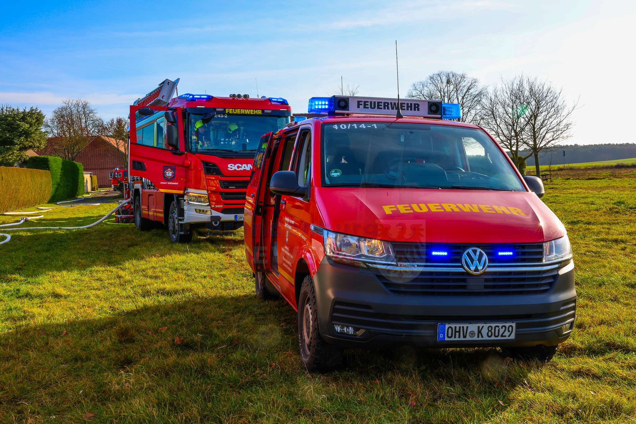 Im Einsatz waren die Löschzüge Kremmen, Staffelde/Groß Ziethen sowie Flatow mit insgesamt vier Trupps im direkten Brandeinsatz und zwei weiteren Trupps im Außenangriff. Zudem waren Rettungsdienst und Polizei vor Ort.