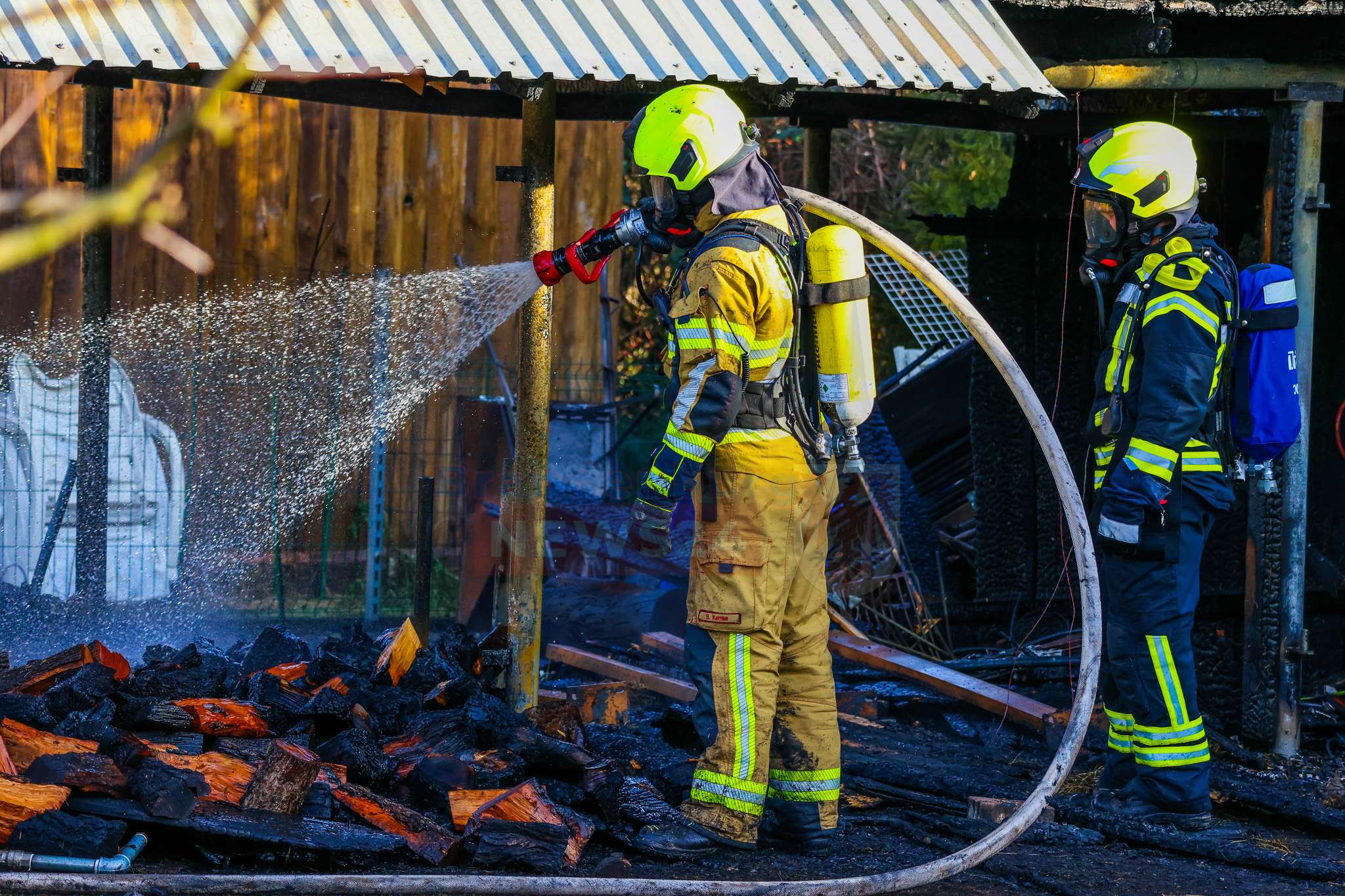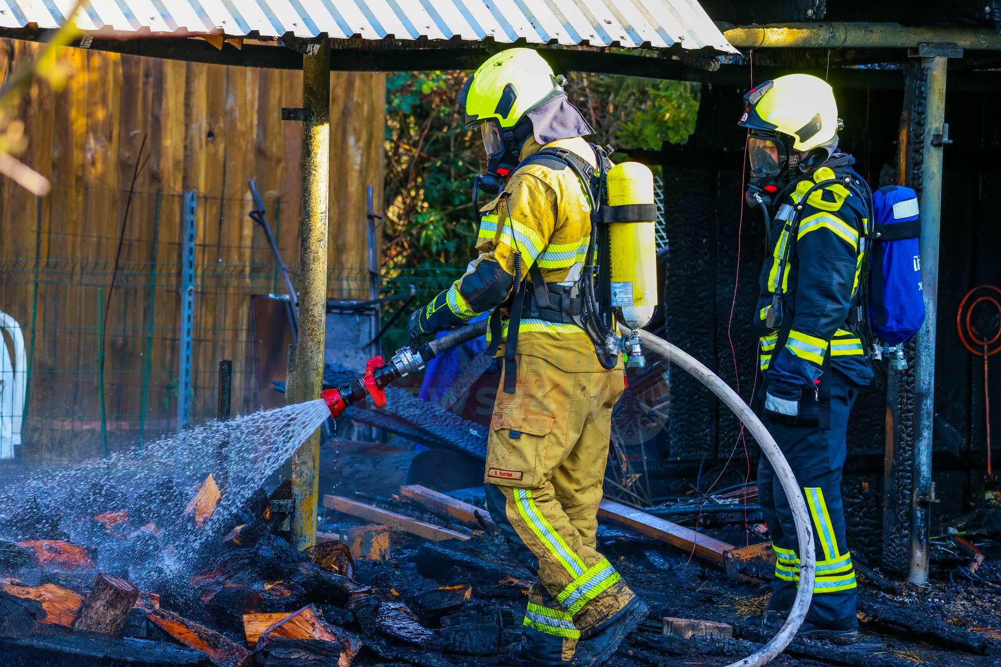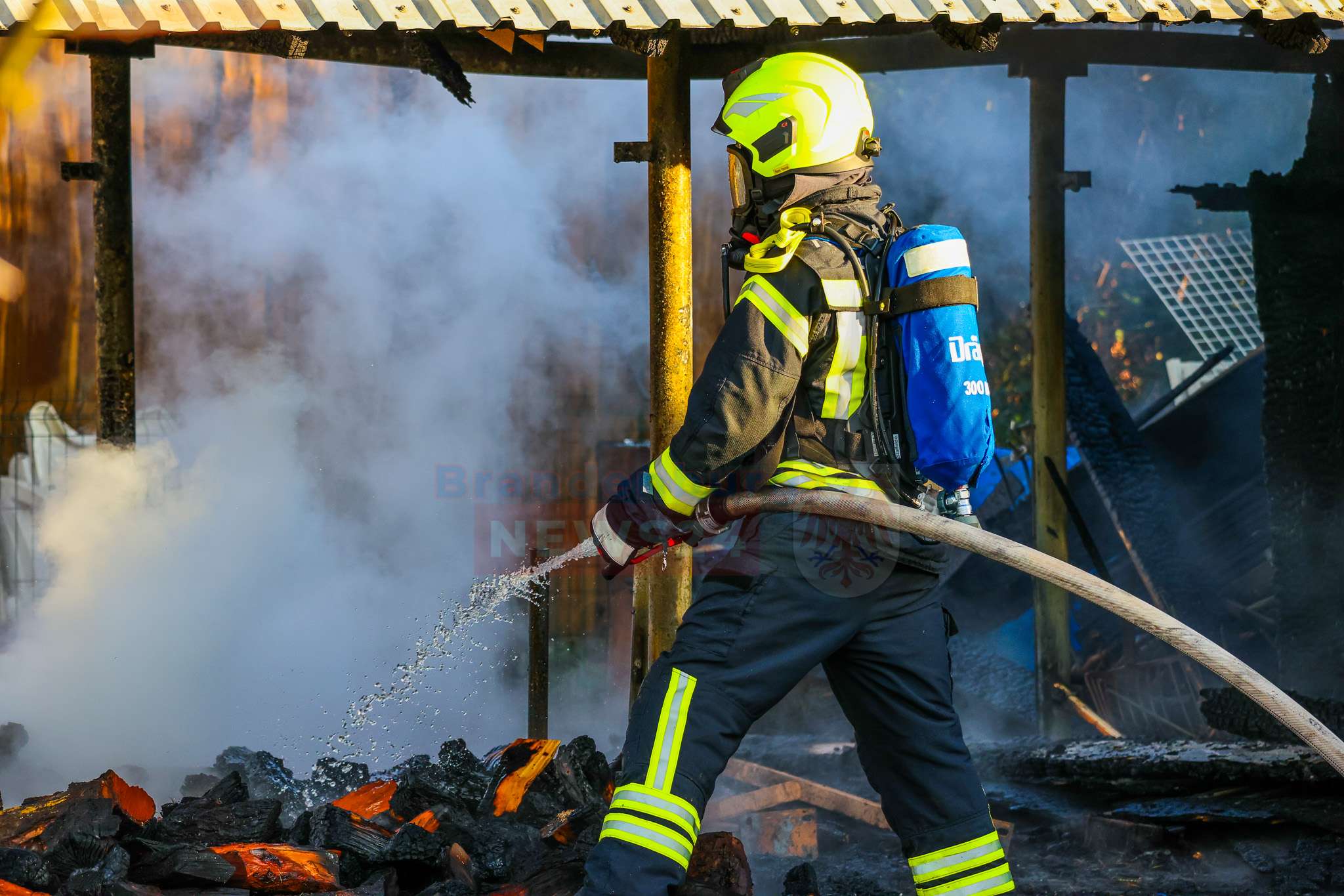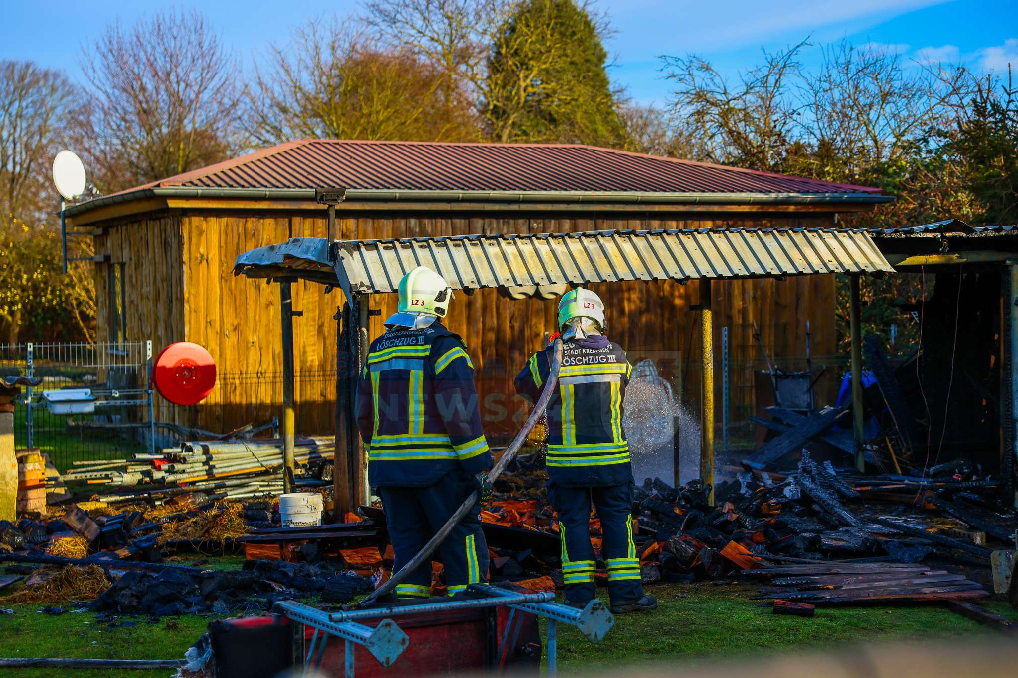 „Wir haben hier ‚Brand Gebäude klein‘ gemeldet bekommen. Die Lage hat sich dann auf Sicht schon bestätigt. Wir hatten hier einen kleinen Gartenschuppen, der im Vollbrand stand. Die Kräfte und Mittel waren ausreichend. Wir konnten den Brand löschen und haben die Einsatzstelle anschließend den Eigentümern übergeben.“