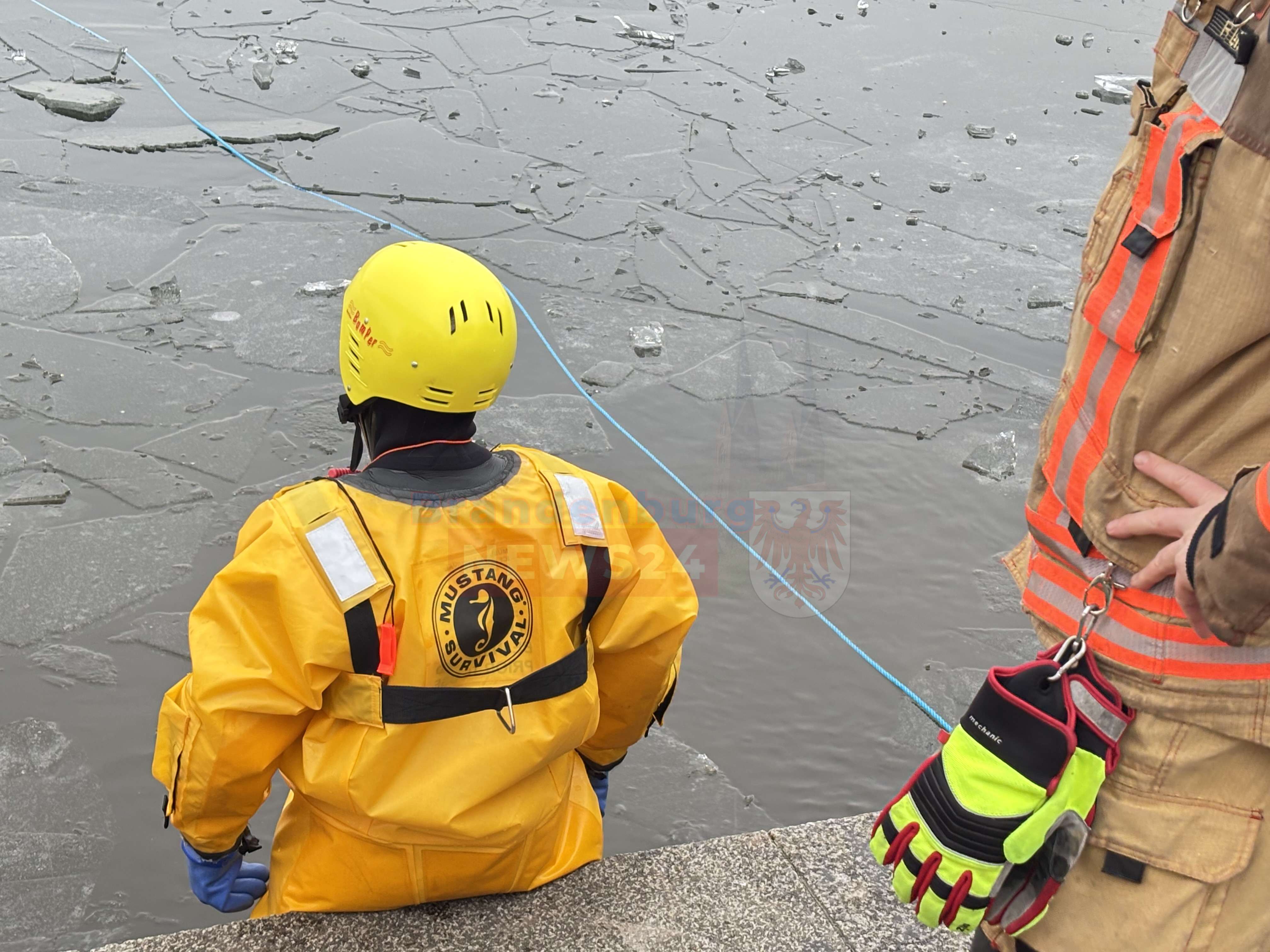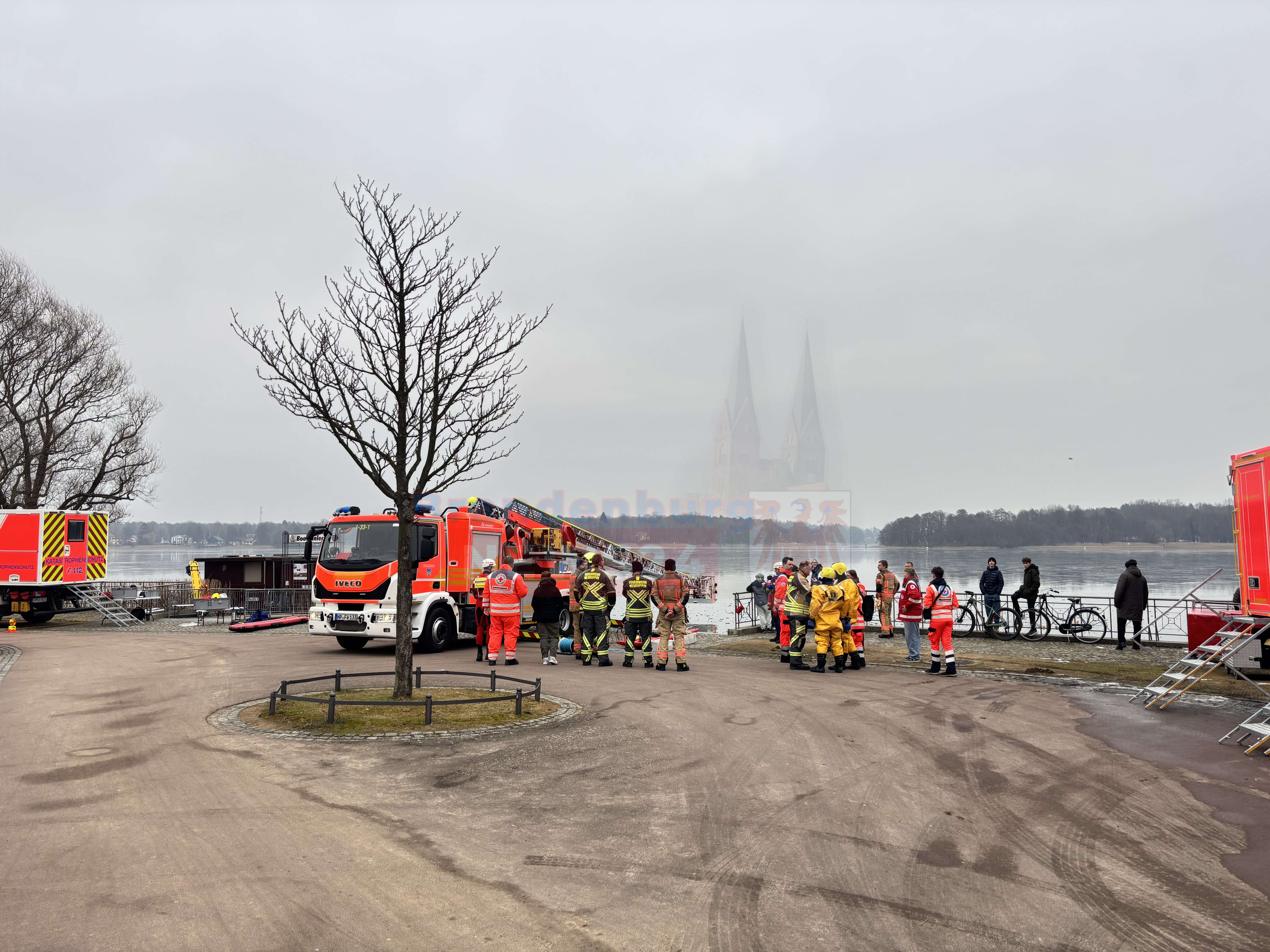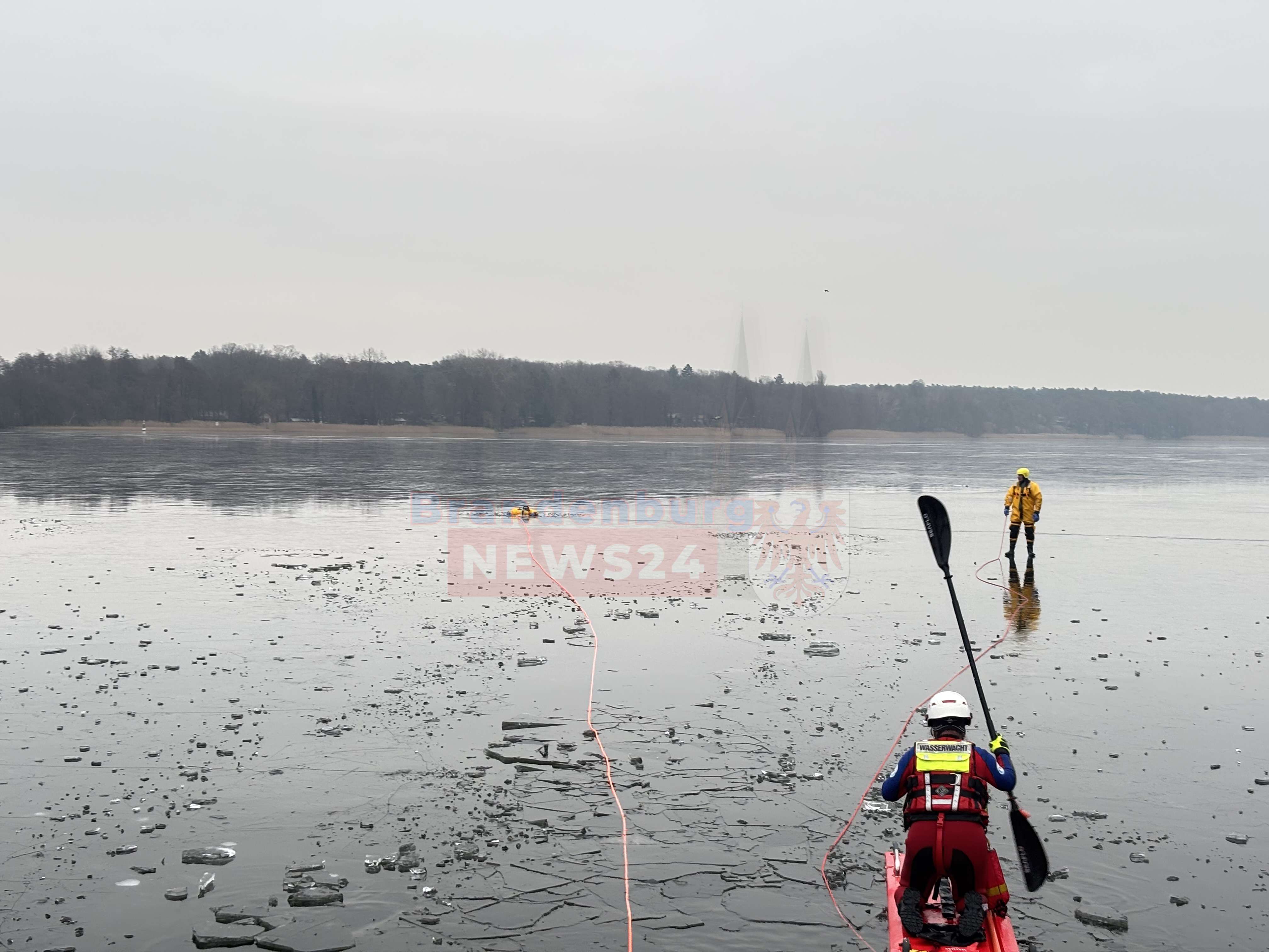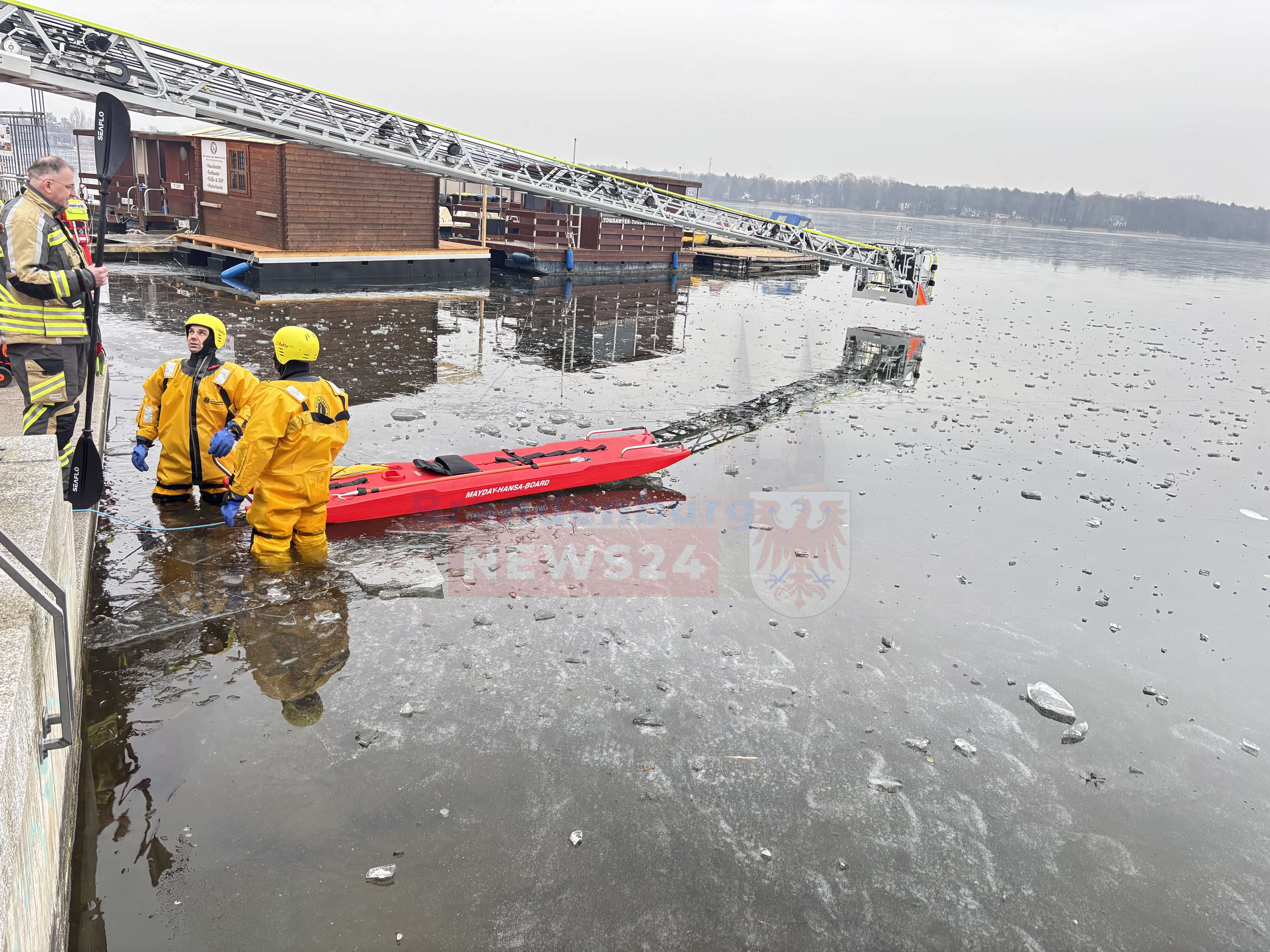 Gemeinsame Übung am Ruppiner See: Feuerwehr und Wasserwacht trainieren Eisrettung