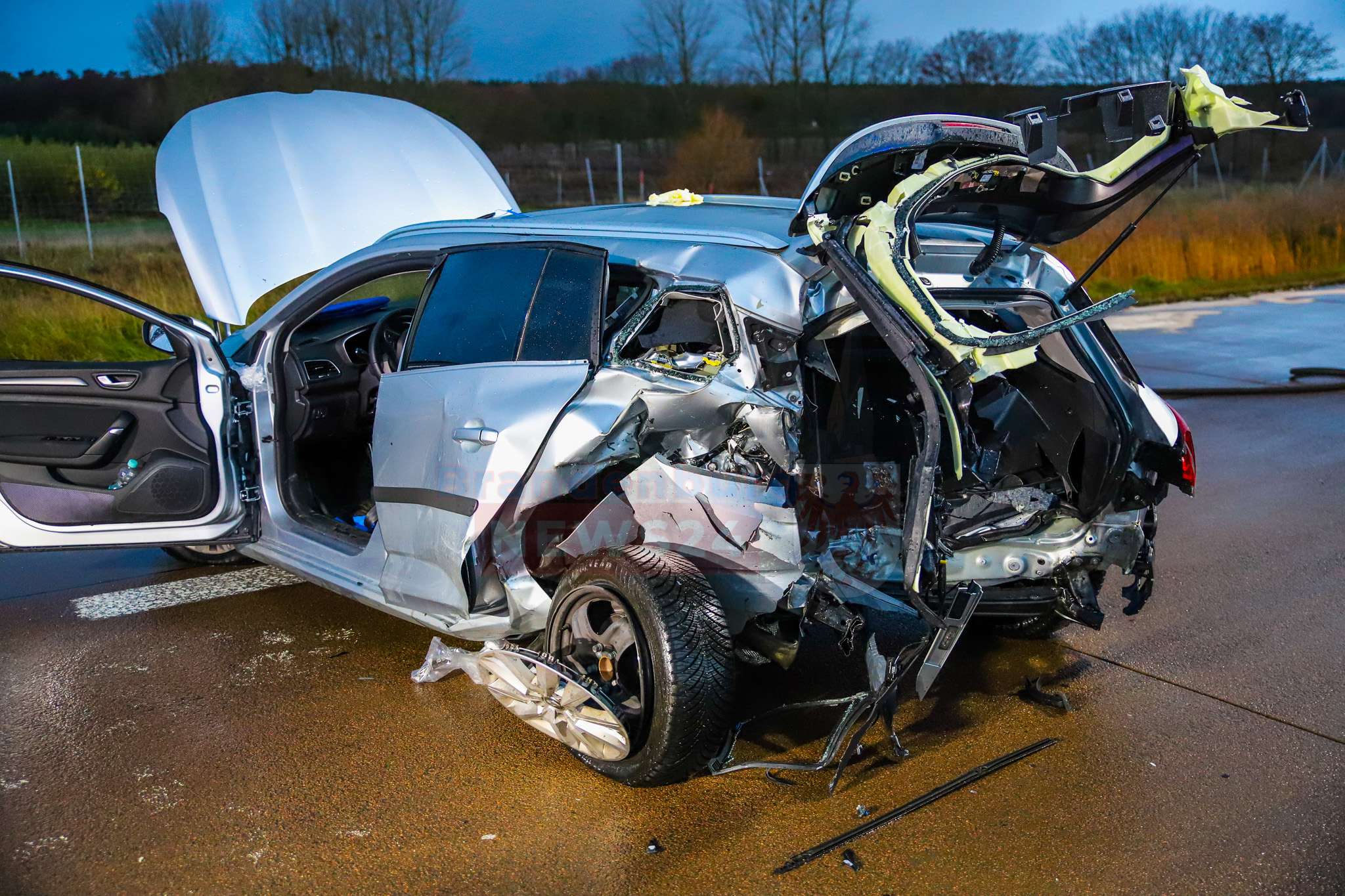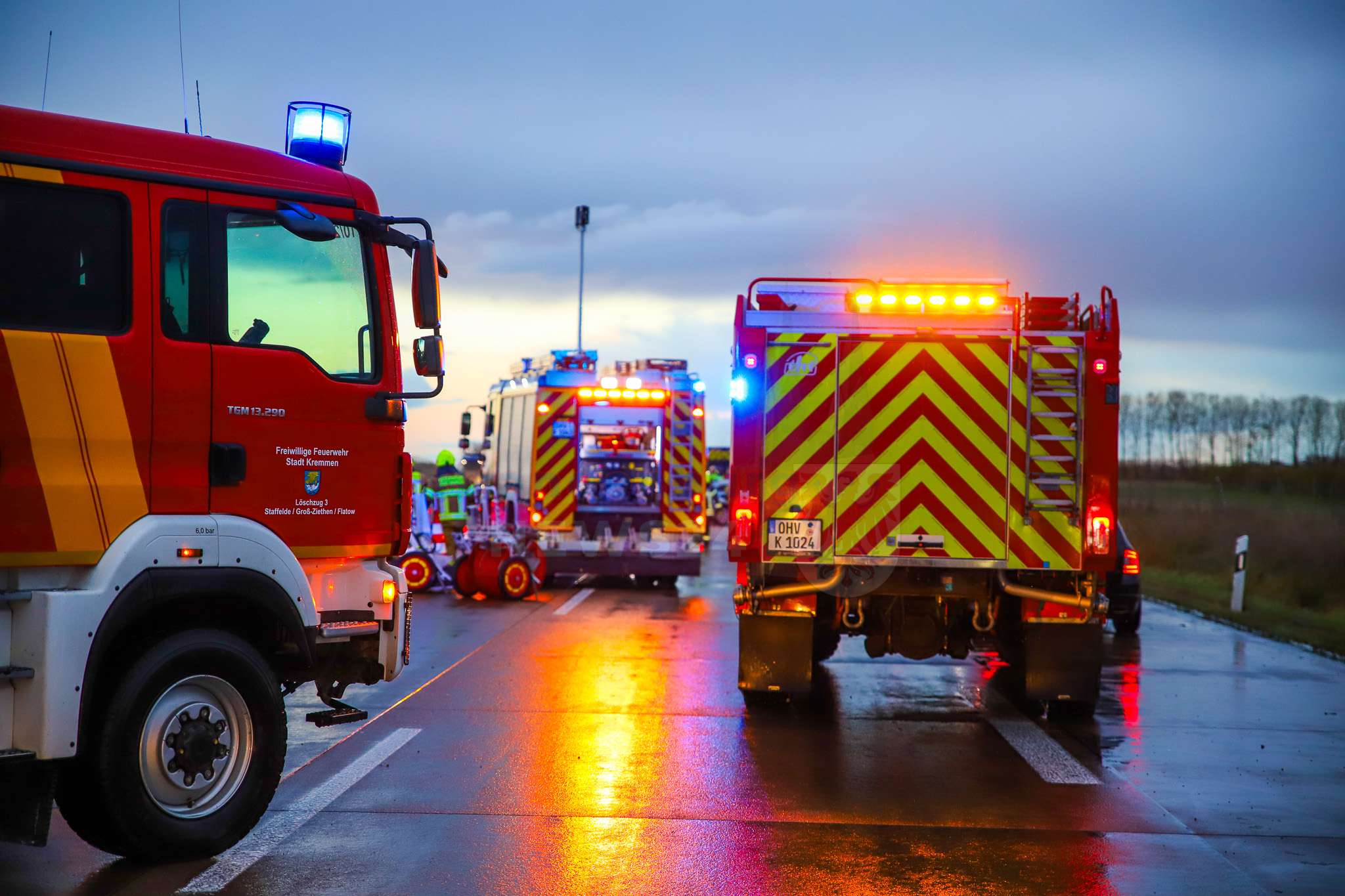Beim Eintreffen der Feuerwehr bot sich ein dramatisches Bild. „Ein Pkw war in den Acker geschleudert worden, ein zweites stark beschädigtes Fahrzeug stand auf dem mittleren Fahrstreifen“, berichtet Alexander Bordt, Einsatzleiter der Feuerwehr Kremmen. „Die schwer verletzte Person war nicht eingeklemmt, aber eingeschlossen. Wir konnten sie nach kurzer Zeit befreien.“ Trotz Hagel und glatter Fahrbahn lobte Bordt das Verhalten anderer Autofahrer: „Die Rettungsgasse war vorbildlich gebildet. Wir waren schnell am Einsatzort.“