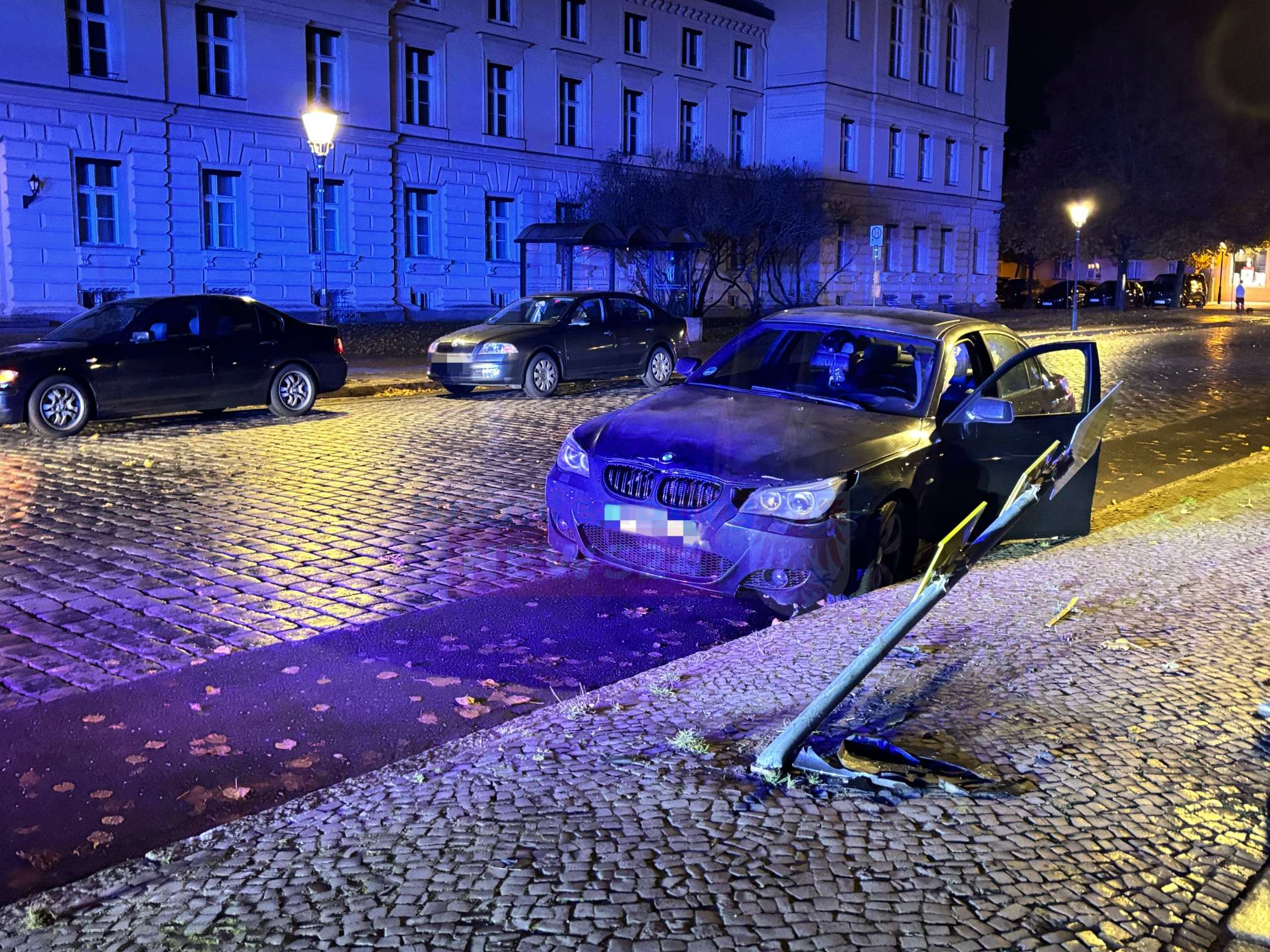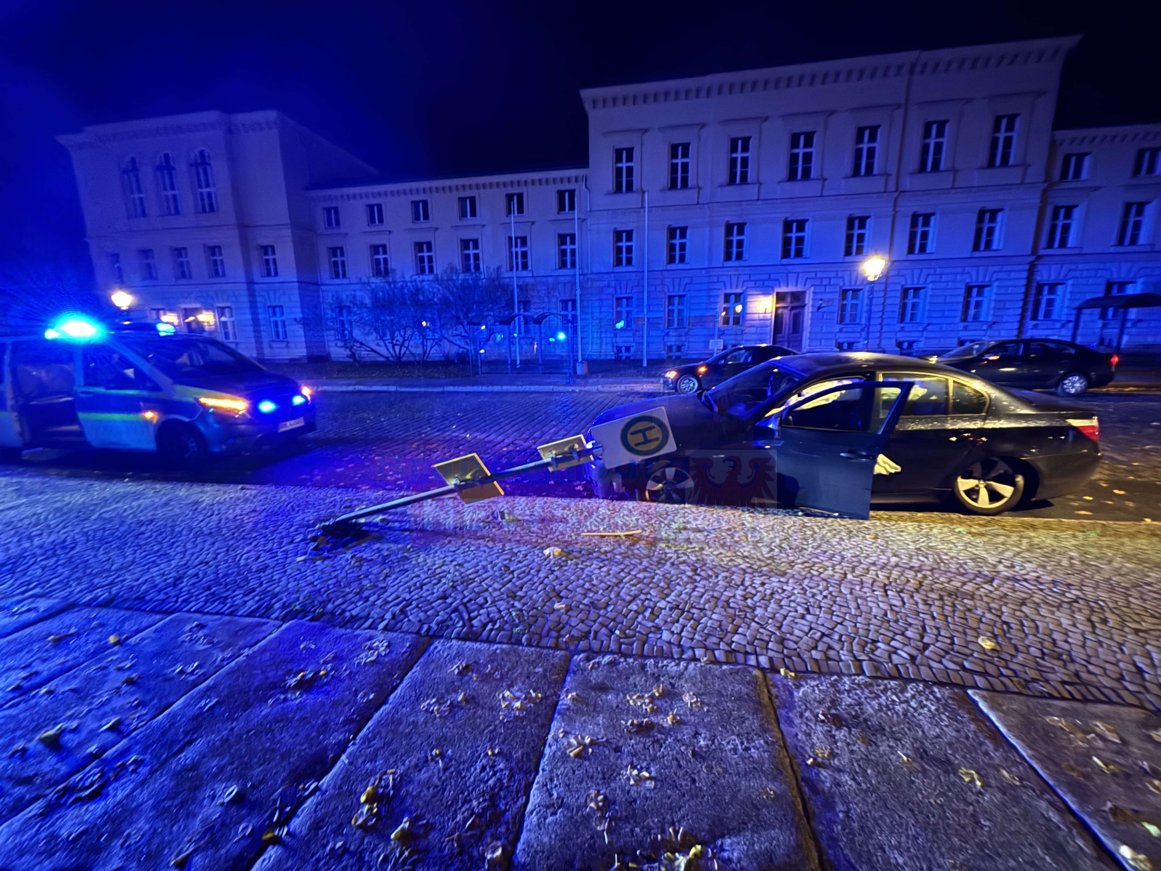 Zum Glück befanden sich zu diesem Zeitpunkt keine Personen an der Haltestelle oder auf dem Gehweg. Der BMW wurde beschädigt, das Haltestellenschild lag auf dem Gehweg.