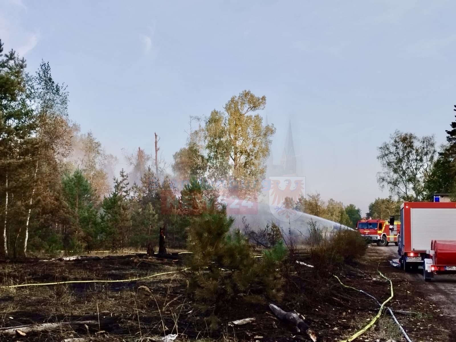 Vogelsang/OHV - Ein verheerender Waldbrand hat am heutigen Donnerstagnachmittag das ehemalige Militärgelände der russischen Garnison in Vogelsang heimgesucht. Bei Temperaturen von über 35 Grad Celsius breiteten sich die Flammen rasend schnell aus und verwandelten den beliebten Lost Place in ein Einsatzgebiet.