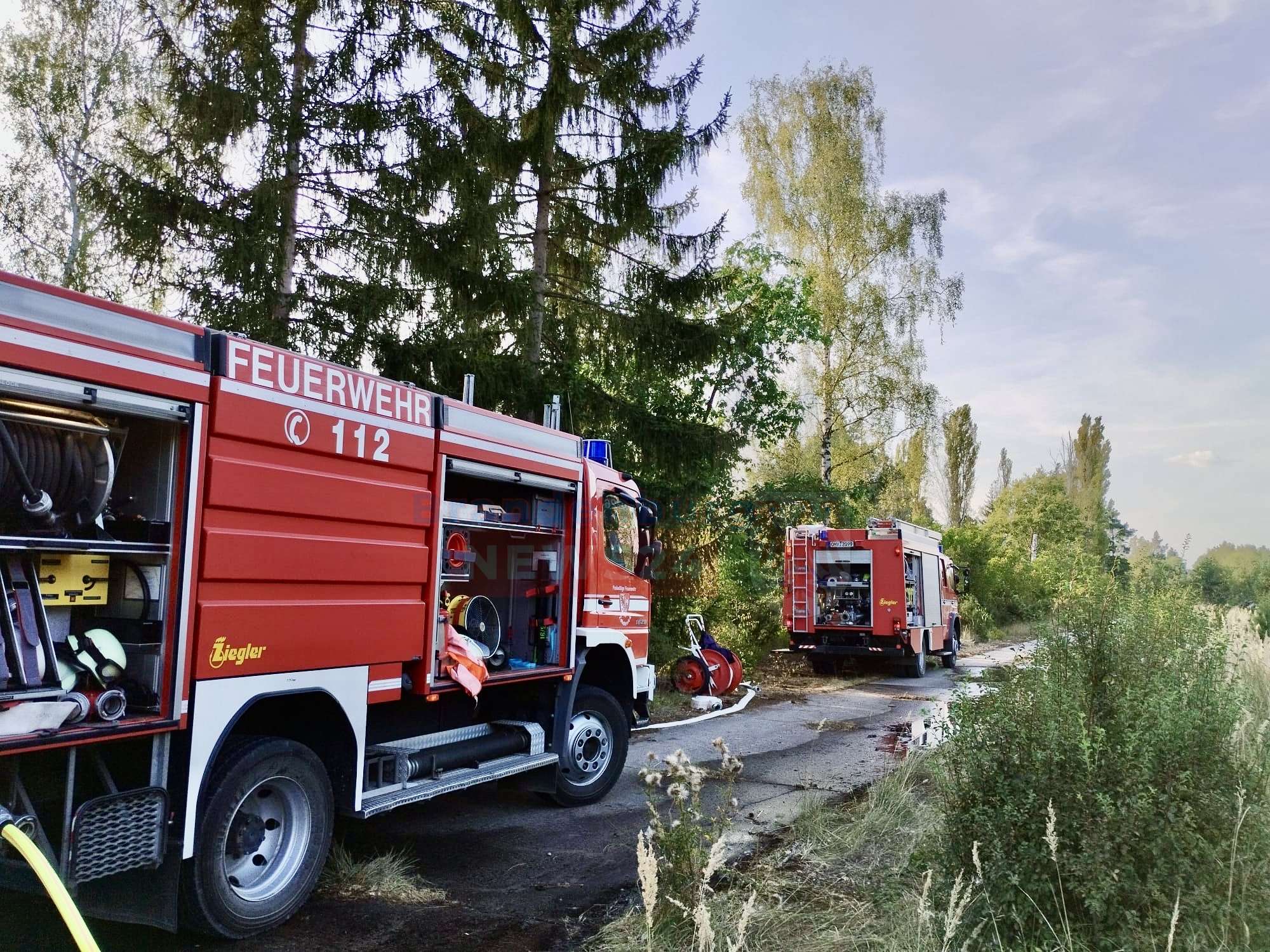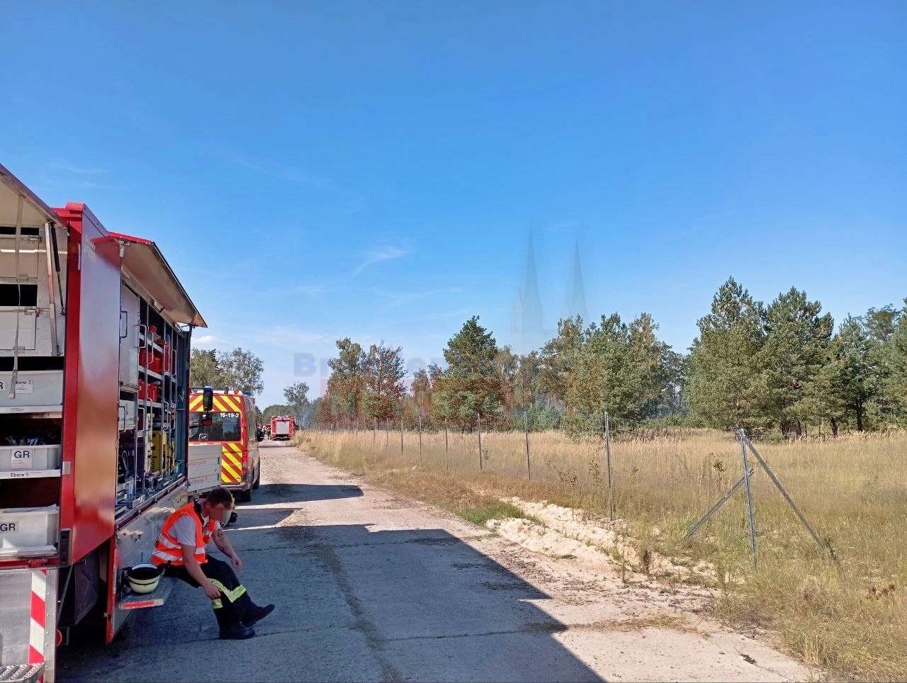 Ebenfalls kam ein Fahrzeug vom Technik- und Ausbildungszentrum (TAZ) aus Oranienburg zum Einsatz und brachte zusätzliche Schläuche, der Katastrophenschutz des DRK Oberhavel kam mit einem so genannten "KTW-B" zum Schutz der Einsatzkräfte vor Ort, da es mit über 35°C zusätzlich zum Brand eine enorme körperliche Belastung für die Kameraden darstellte, um dann im Falle medizinischer Probleme bei den Einsatzkräften schnell eingreifen zu können.