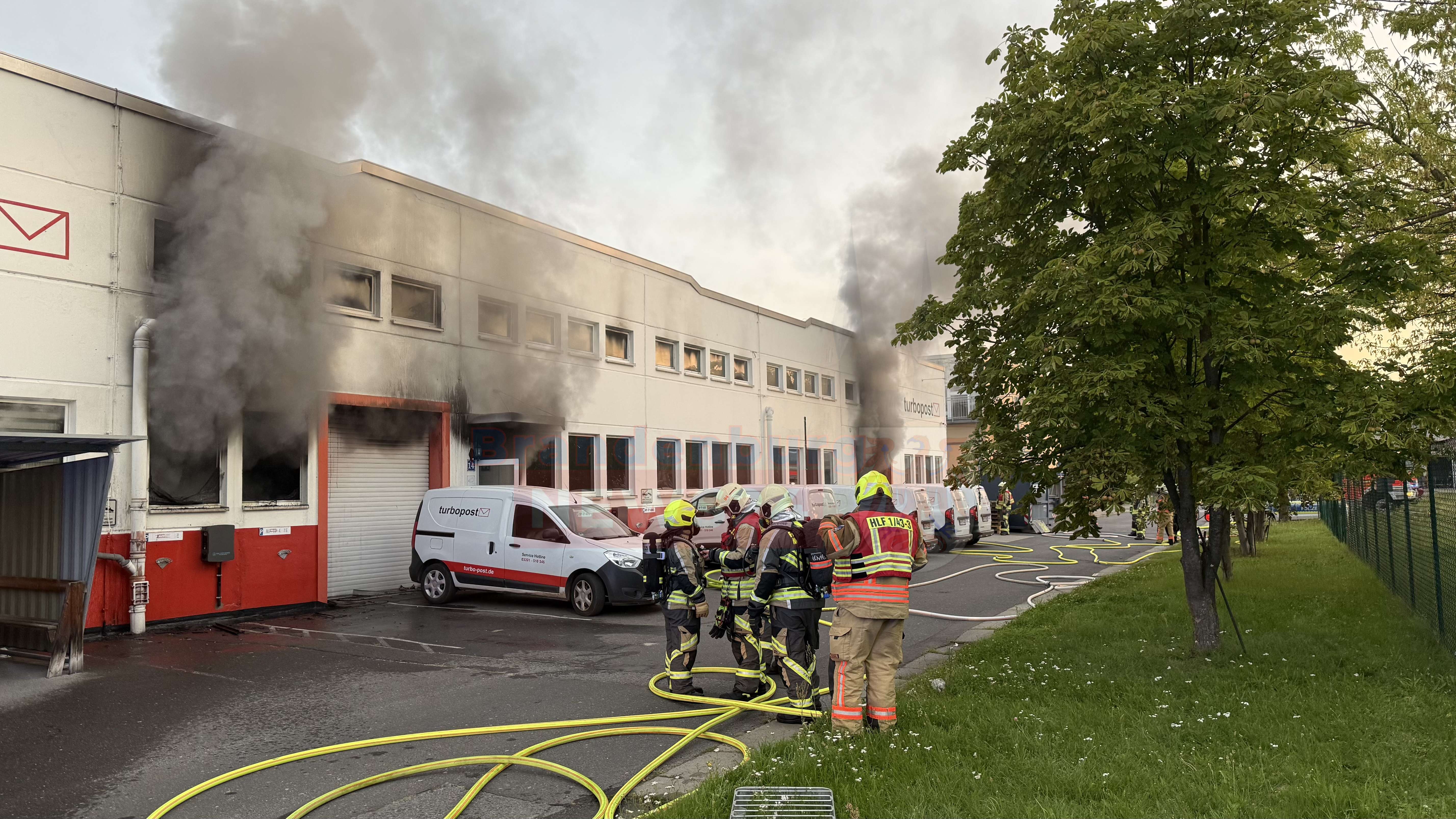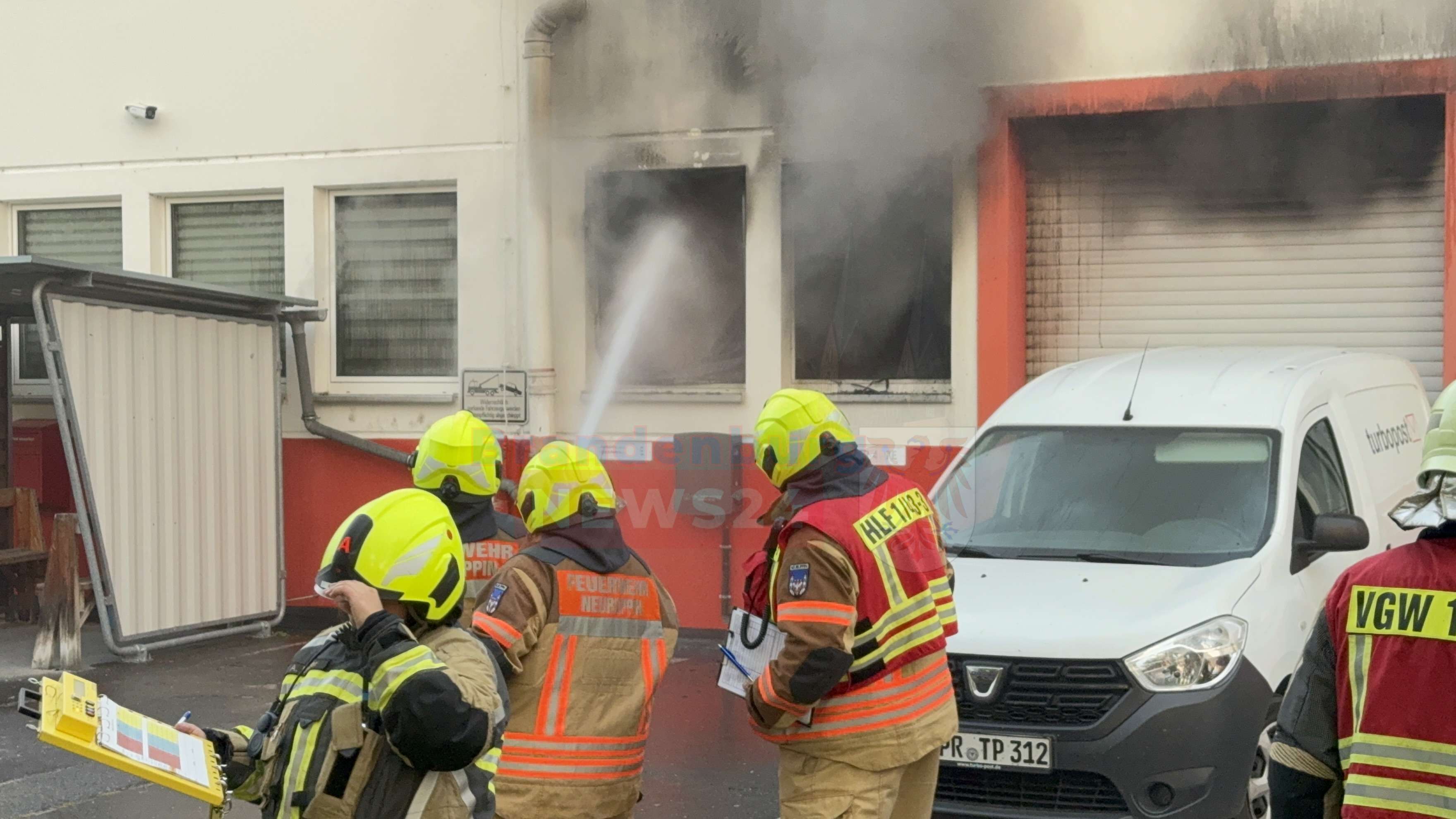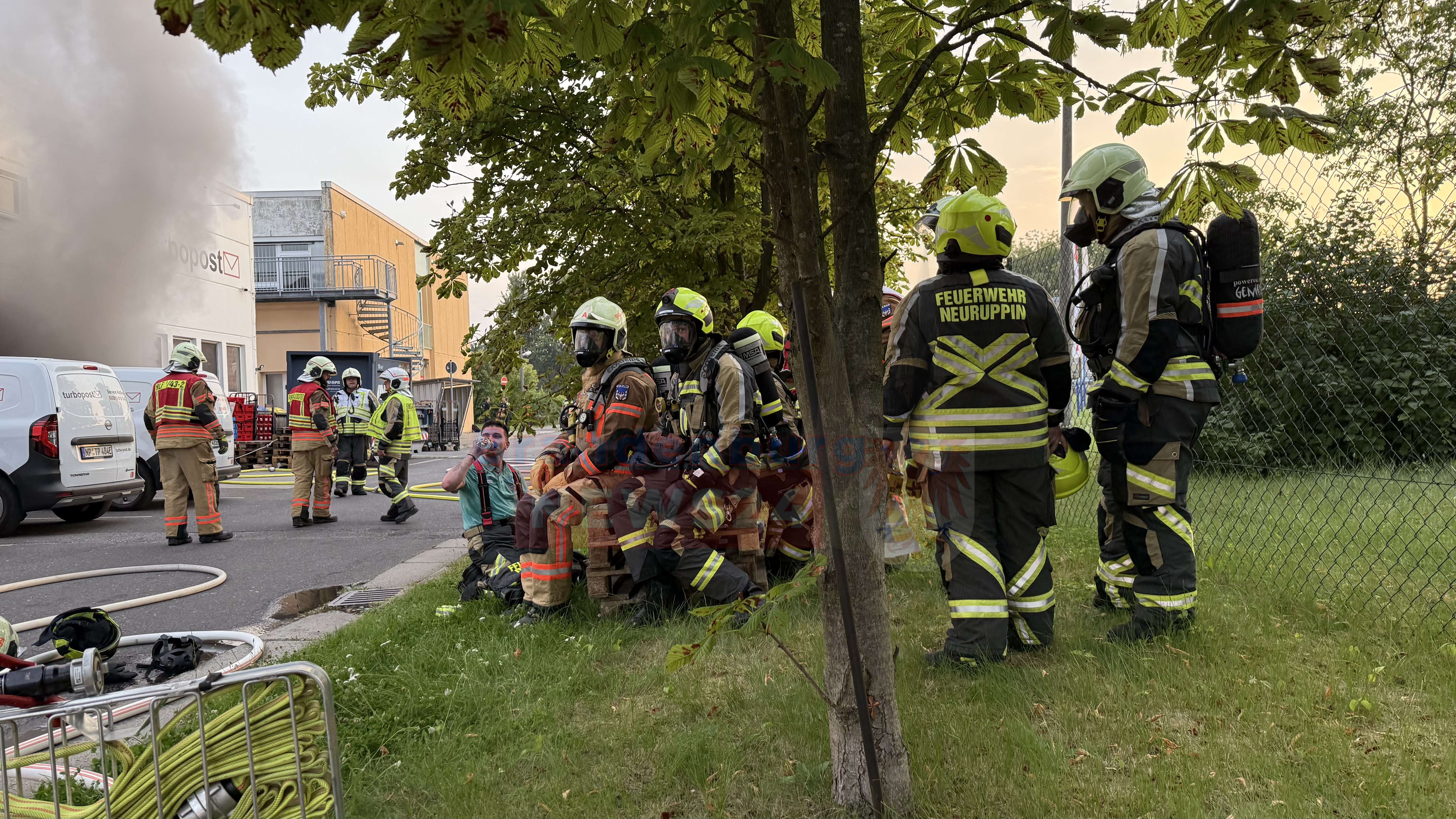 Gegen 05:15 Uhr ging der Alarm bei der Feuerwehr ein. Als die Einsatzkräfte der Feuerwehren aus Neuruppin und Fehrbellin am Brandort eintrafen, drang bereits dichter Rauch aus der Halle des privaten Postdienstleisters Turbopost. Betroffen war ein Teil der insgesamt 17.000 Quadratmeter großen Lagerhalle.