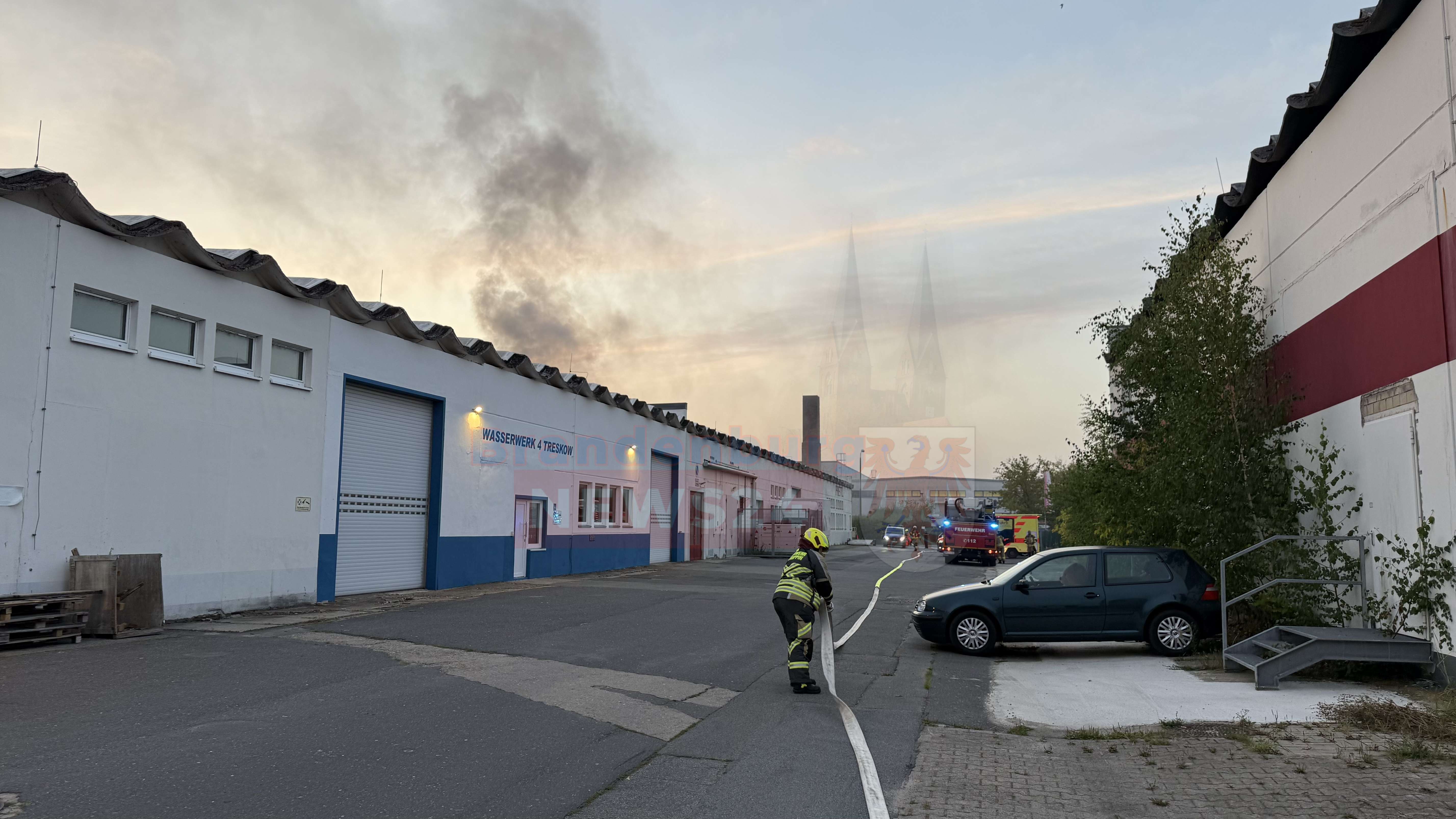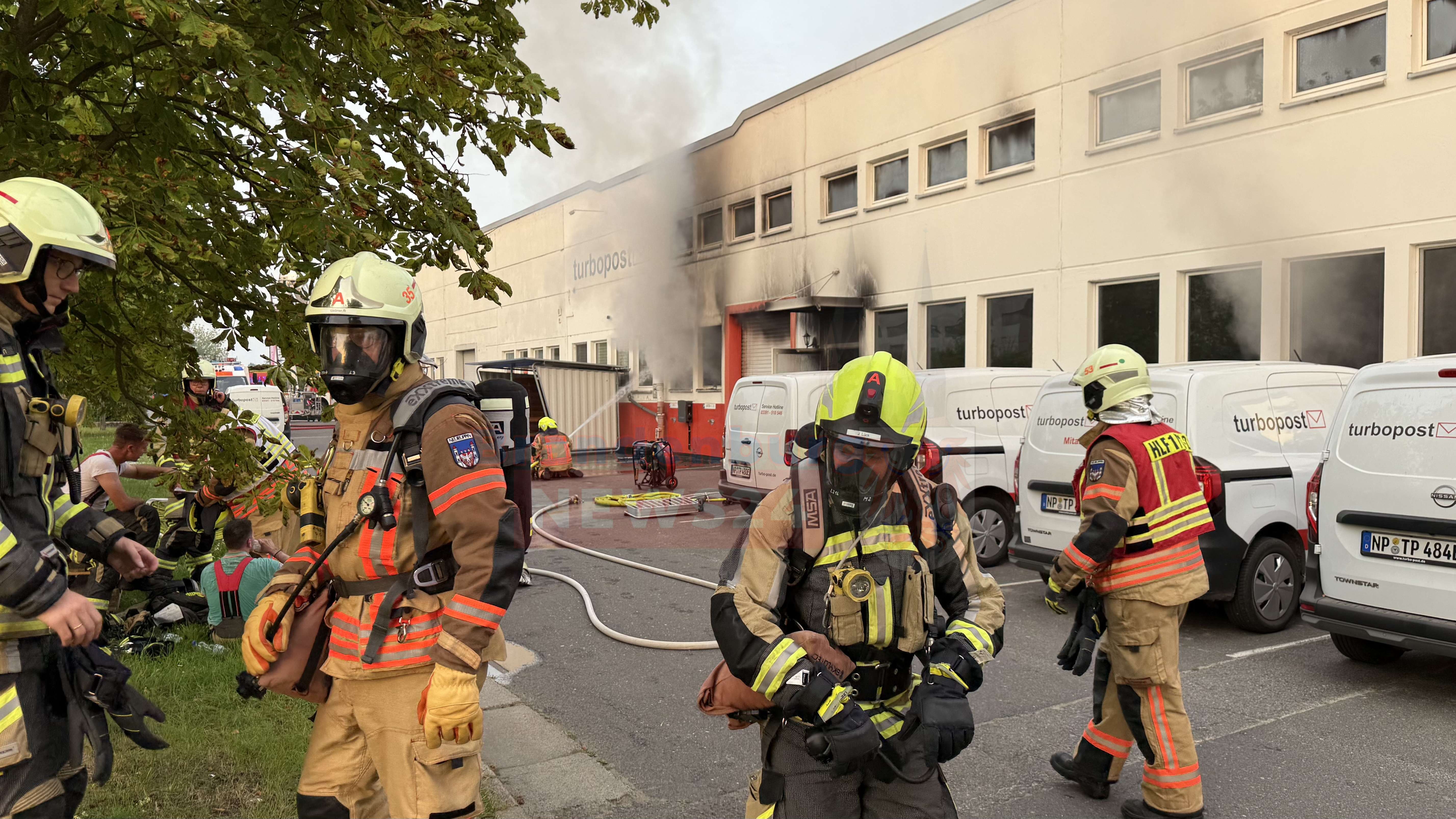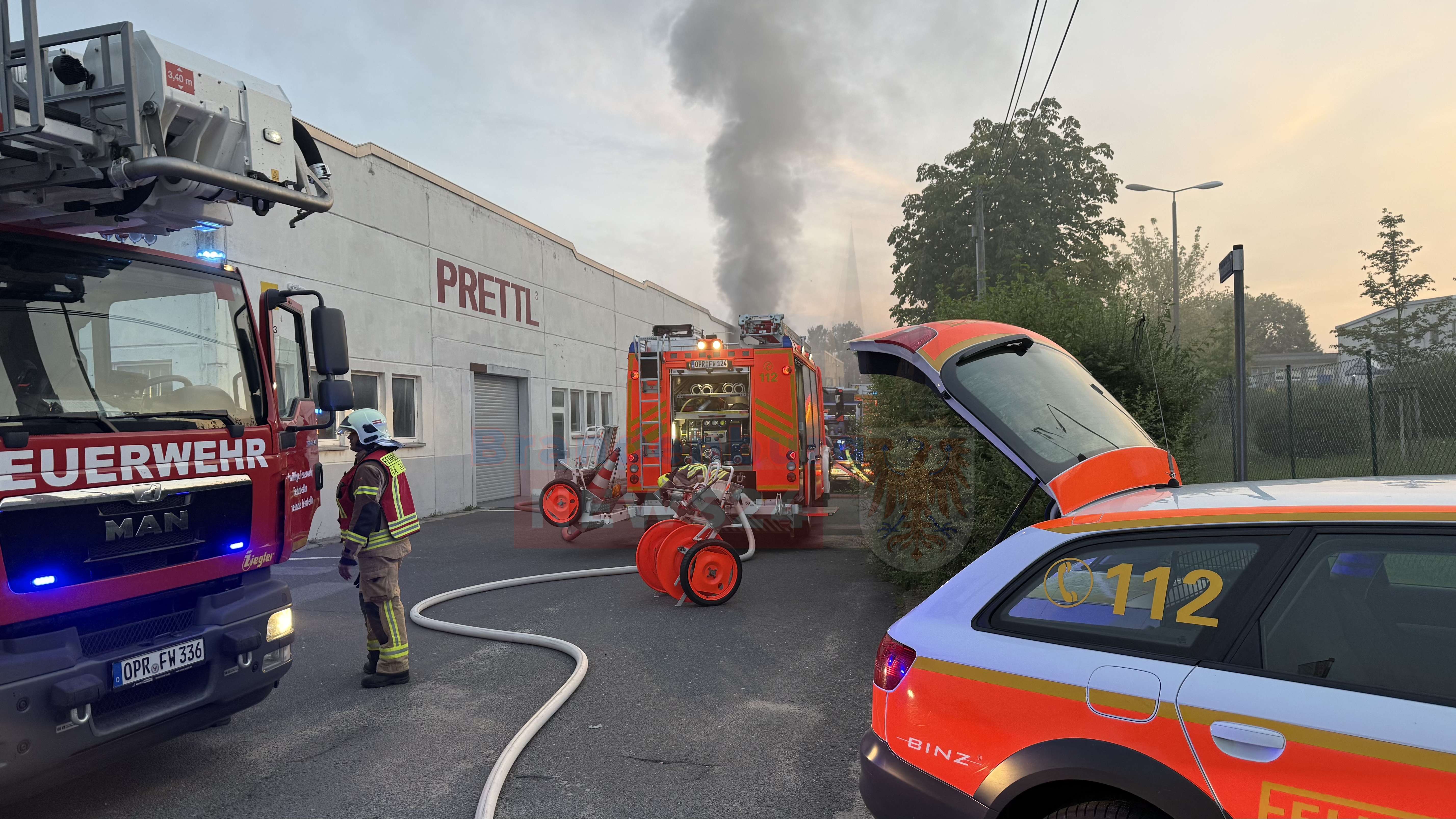 Gegen 05:15 Uhr ging der Alarm bei der Feuerwehr ein. Als die Einsatzkräfte der Feuerwehren aus Neuruppin und Fehrbellin am Brandort eintrafen, drang bereits dichter Rauch aus der Halle des privaten Postdienstleisters Turbopost. Betroffen war ein Teil der insgesamt 17.000 Quadratmeter großen Lagerhalle.