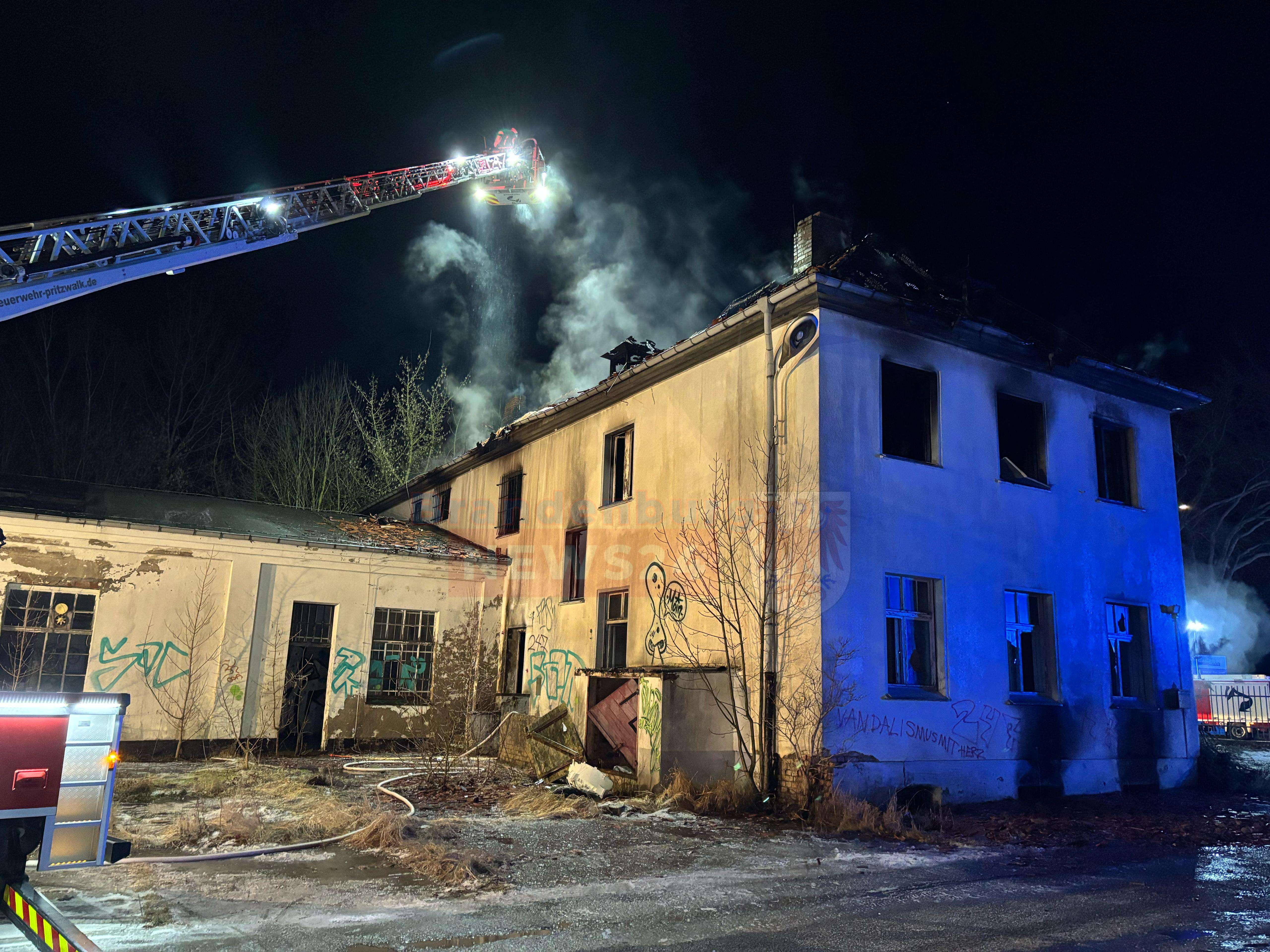Pritzwalk (Prignitz). Am späten Dienstagnachmittag brach in der Freyensteiner Chaussee in Pritzwalk ein schwerer Gebäudebrand aus. Beim Eintreffen der Feuerwehr stand das Dach bereits in Flammen. Aufgrund der akuten Einsturzgefahr konnten die Einsatzkräfte das Gebäude nicht betreten und mussten die Löscharbeiten über eine Drehleiter durchführen.