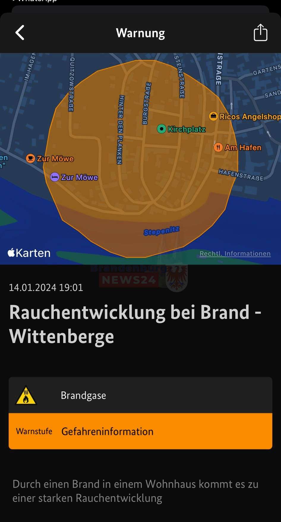 In der Burgstraße Wittenberge ist am Sonntagabend ein Großfeuer in einem Wohnhaus ausgebrochen. Die Feuerwehr ist seit 18 Uhr im Großeinsatz, der Brand ist noch nicht Gelöscht.