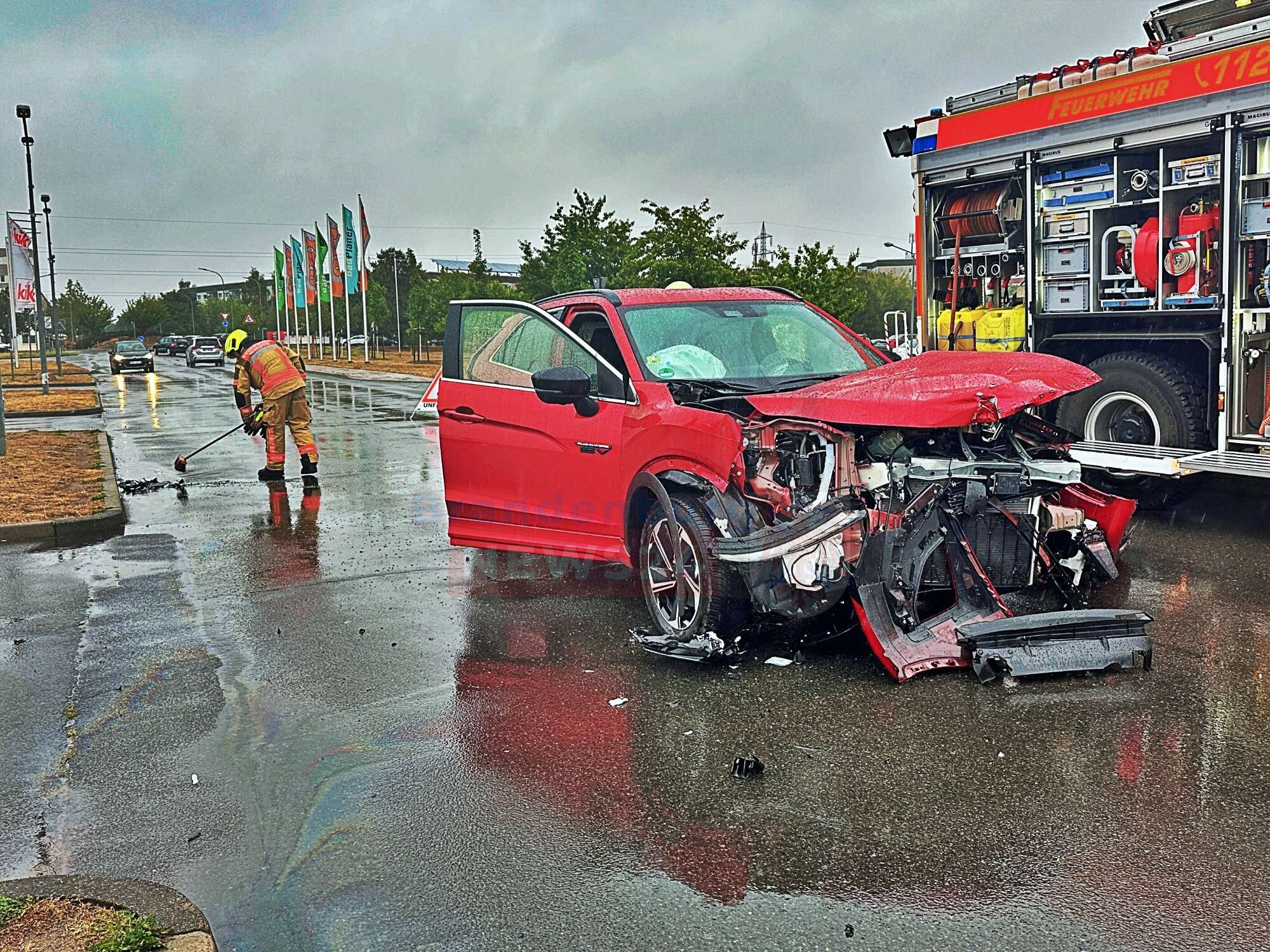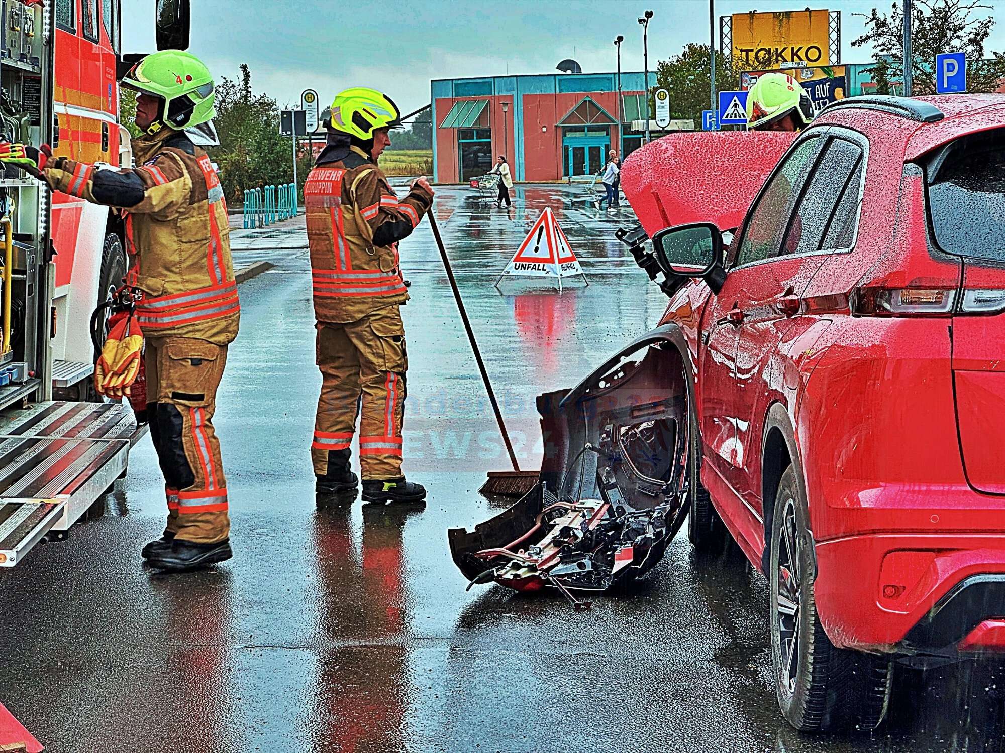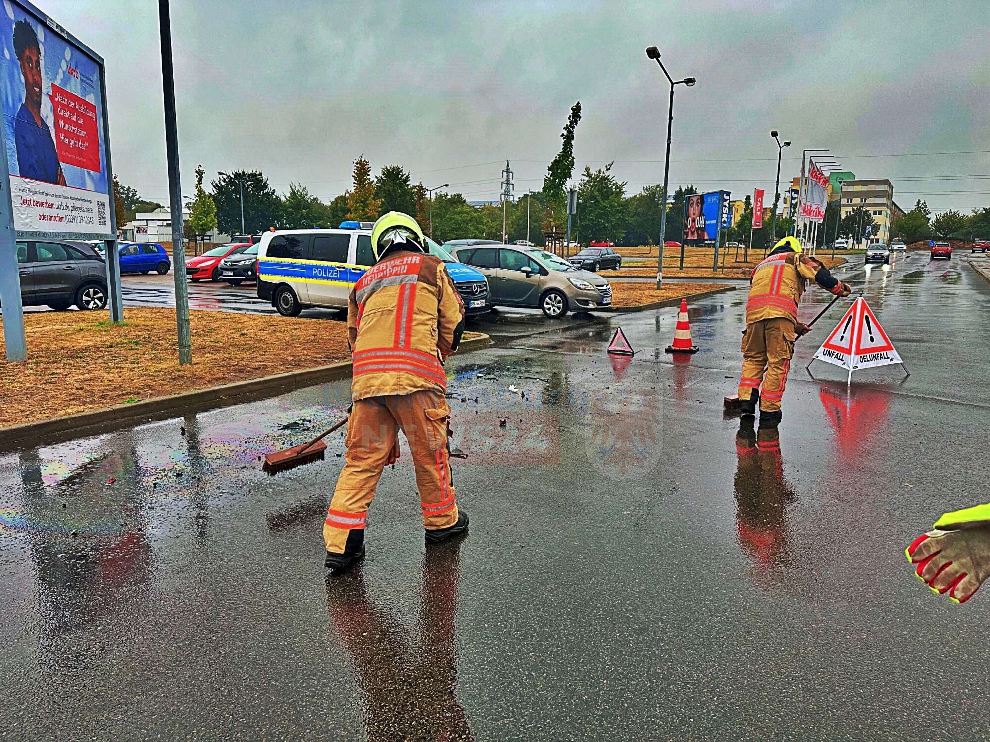 Die Feuerwehr Neuruppin wurde um 9:35 Uhr alarmiert und traf schnell am Unfallort ein. Die Insassen beider Fahrzeuge waren bereits außerhalb der Fahrzeuge. Mit mehreren Ersthelfern. Die Feuerwehr übernahm die Erstversorgung der Verletzten, bis der Rettungsdienst eintraf.